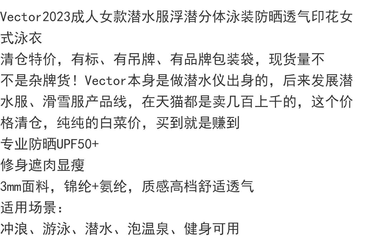 Vector2023成人女款潛水服浮潛兩件式泳裝防曬透氣印花大尺碼女式泳衣
