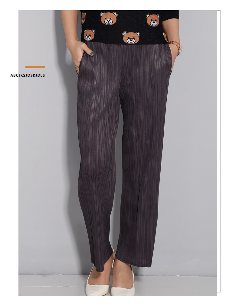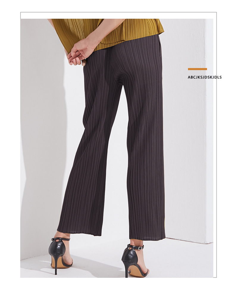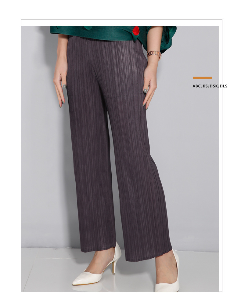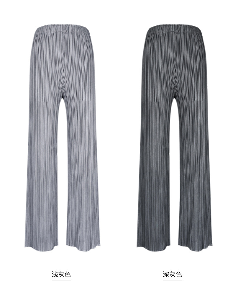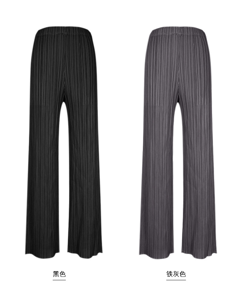 春夏休闲裤女简约宽松舒适弹力休闲裤女装褶皱长裤直筒裤三宅新款