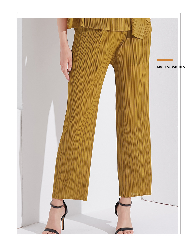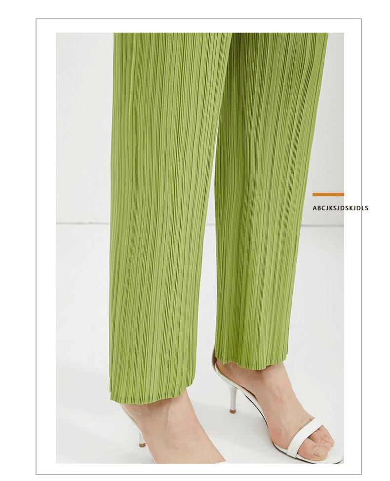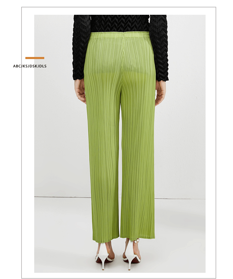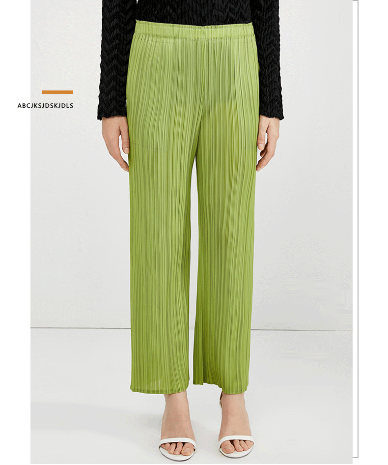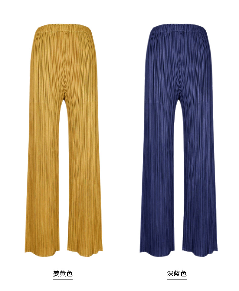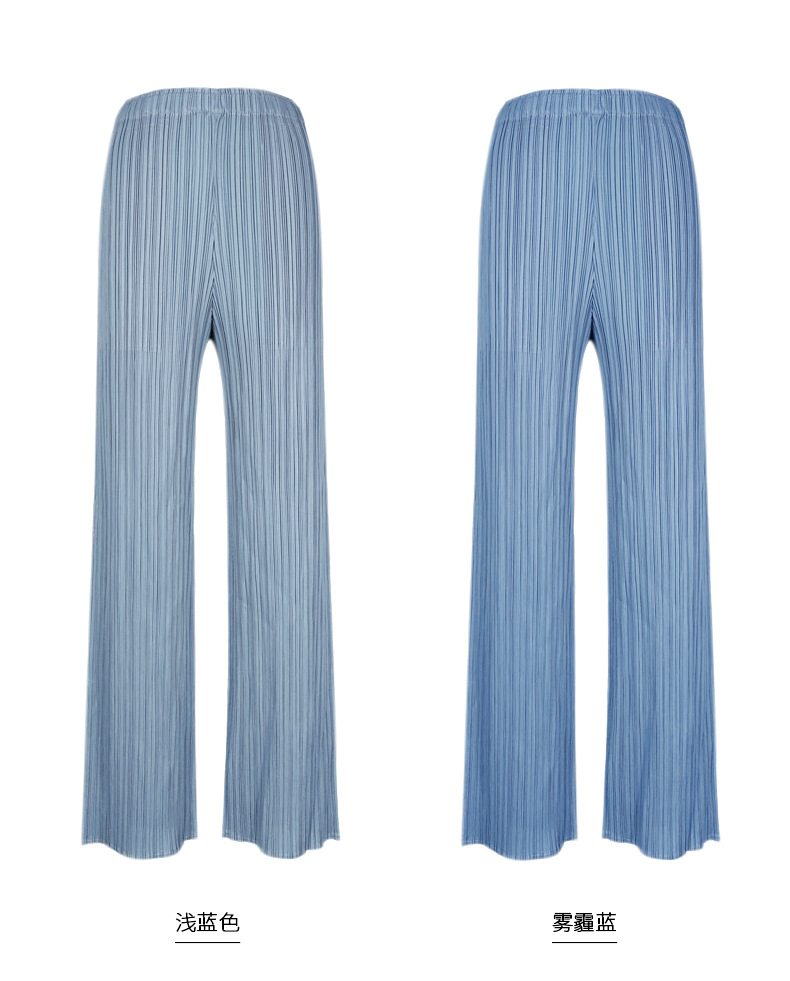春夏休闲裤女简约宽松舒适弹力休闲裤女装褶皱长裤直筒裤三宅新款