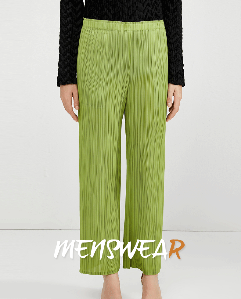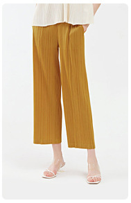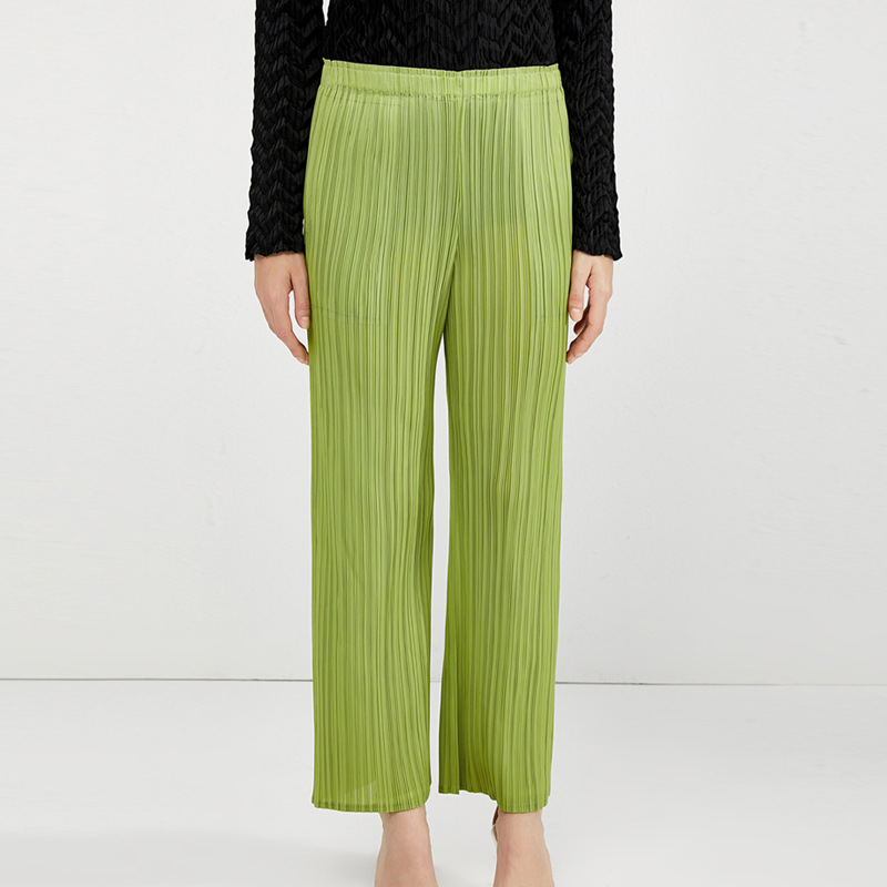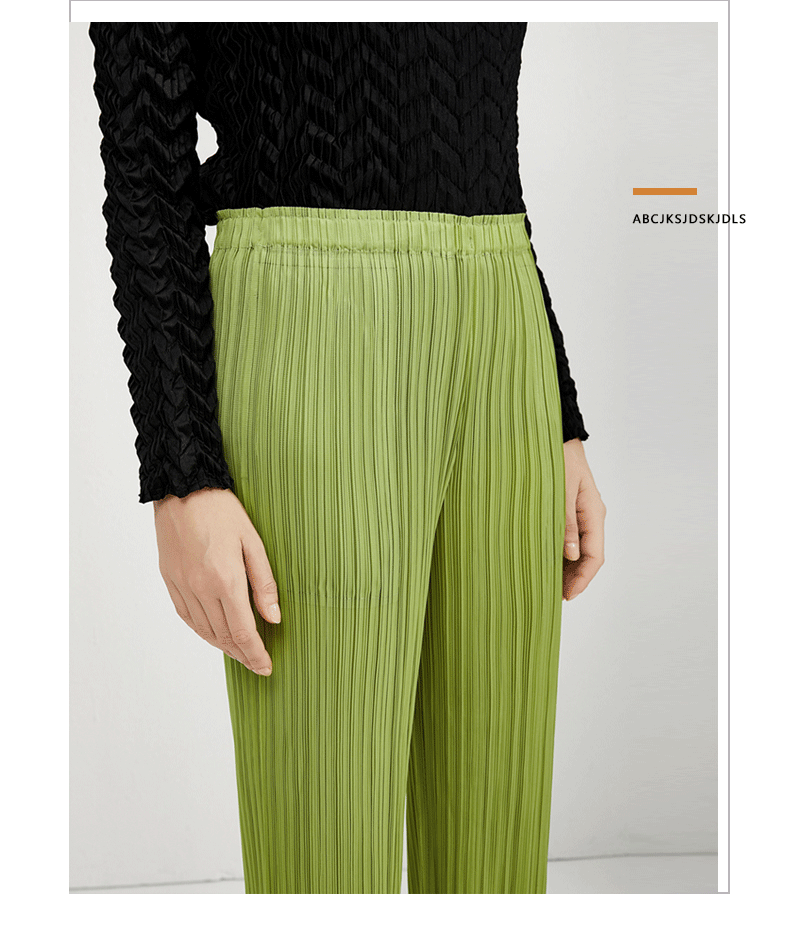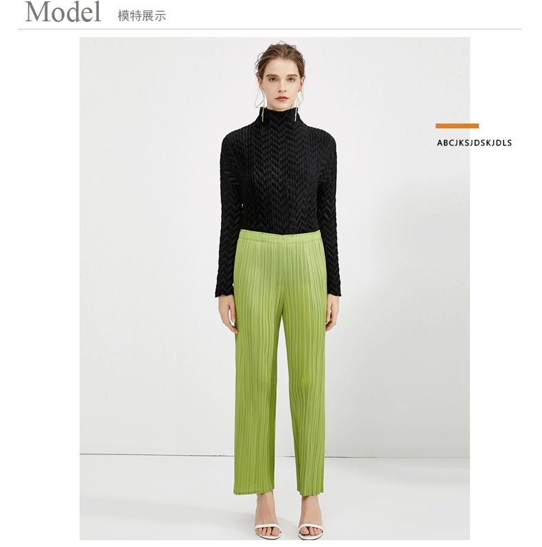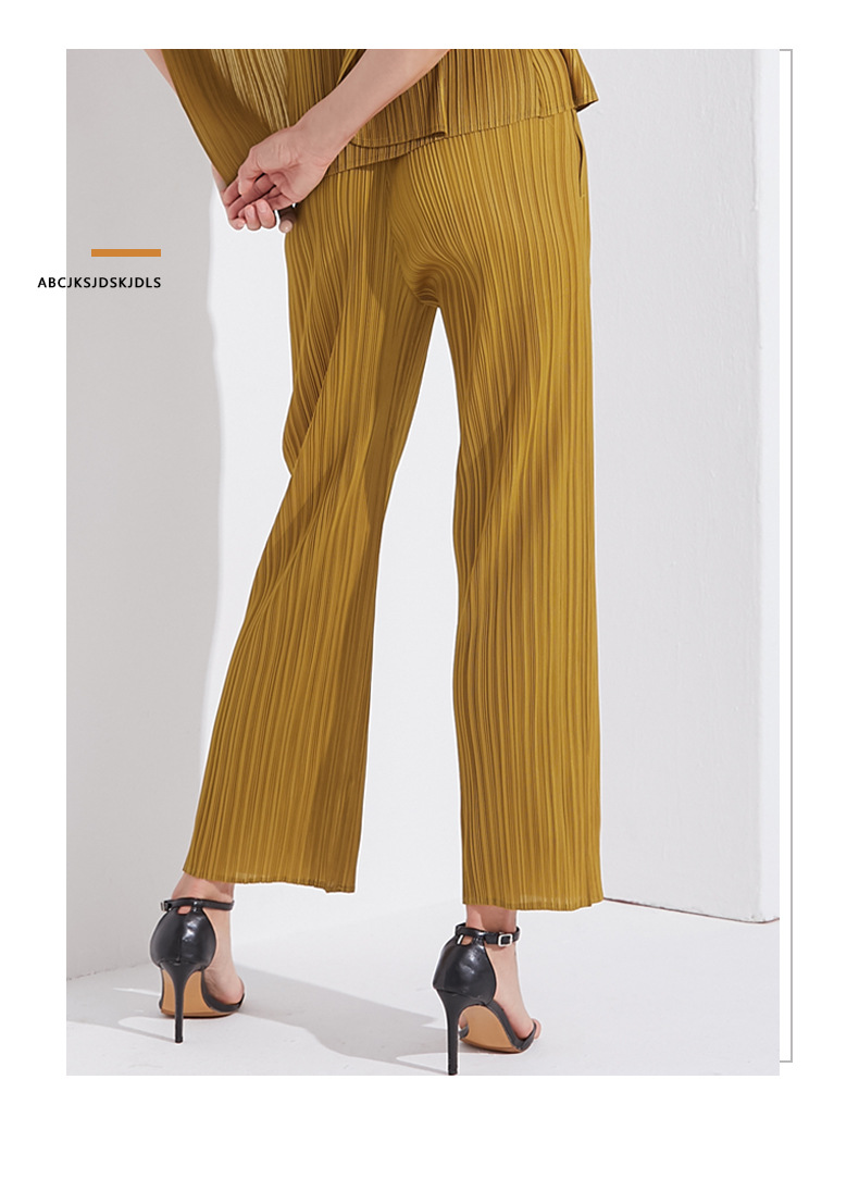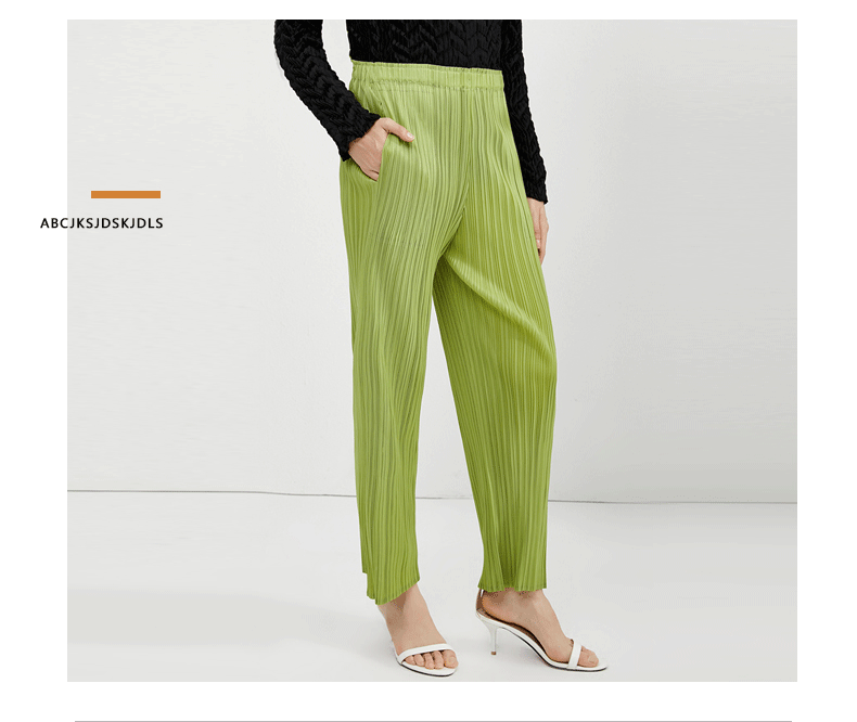春夏休闲裤女简约宽松舒适弹力休闲裤女装褶皱长裤直筒裤三宅新款