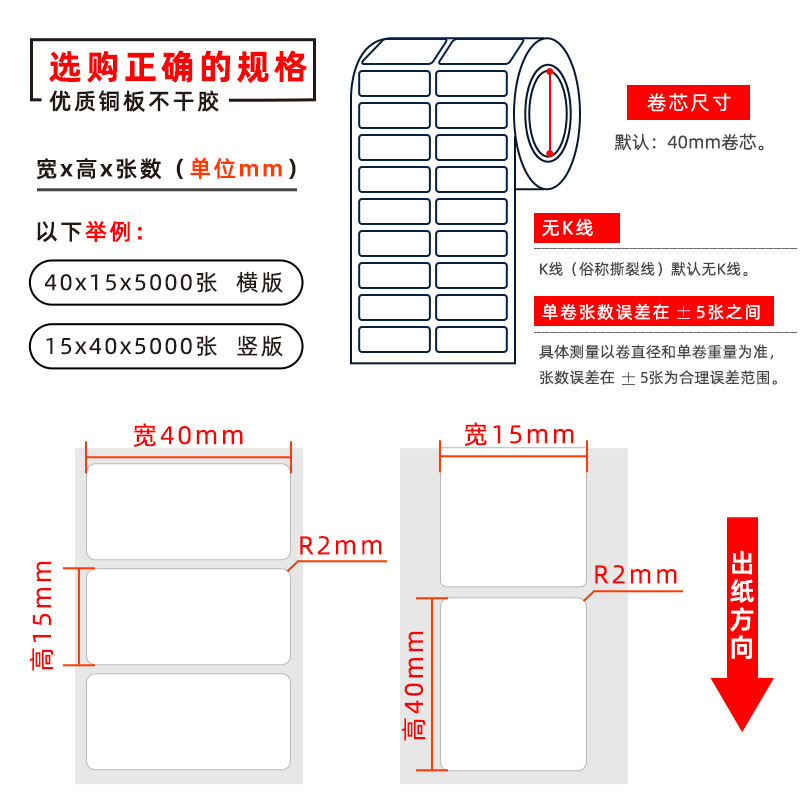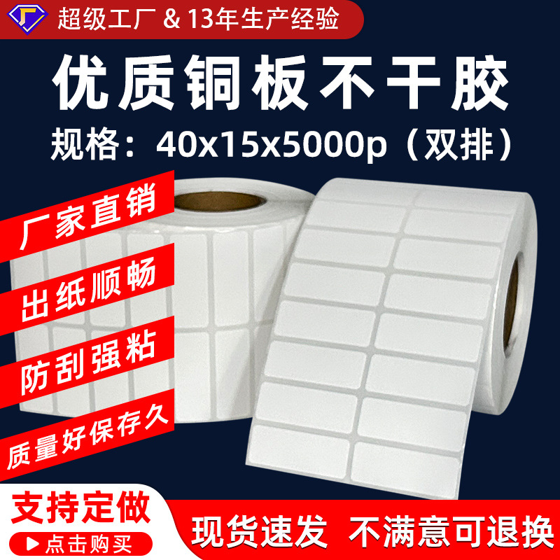 支持定做铜版标签纸不干胶标签纸40*15*5000张双排条码打印纸贴纸