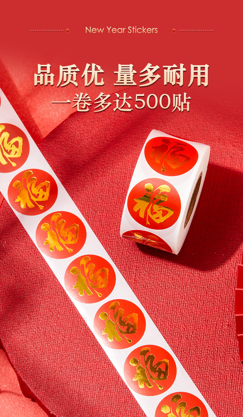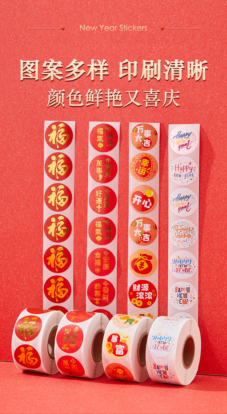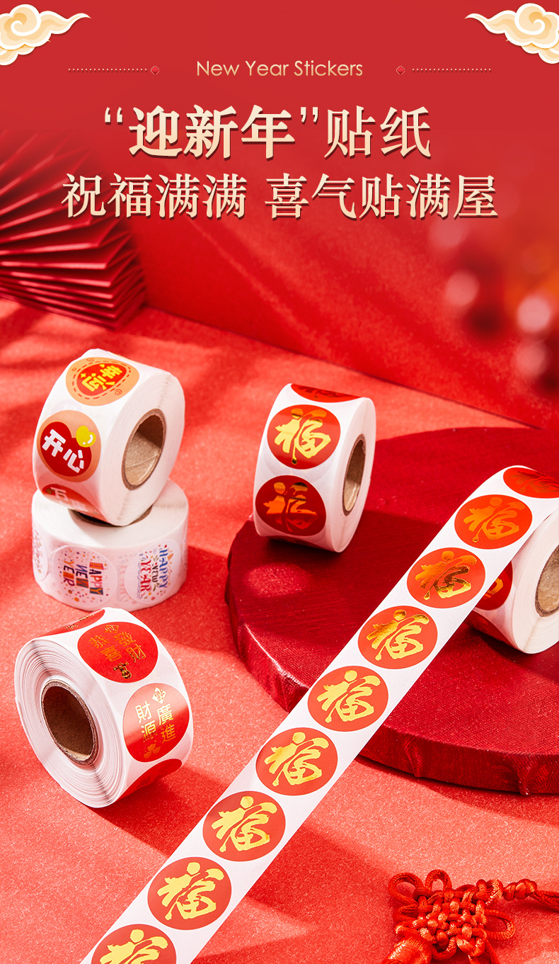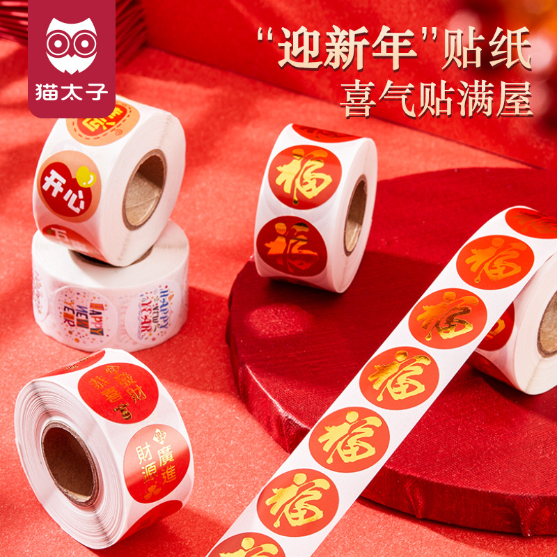 猫太子封口贴纸 厂家批发2023新年系列福字贴信封红包不干胶贴纸