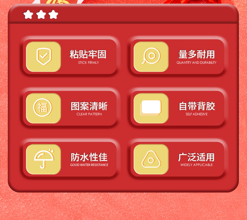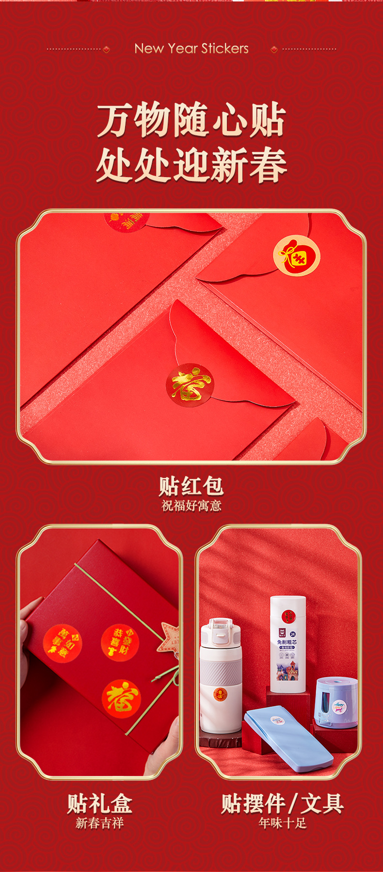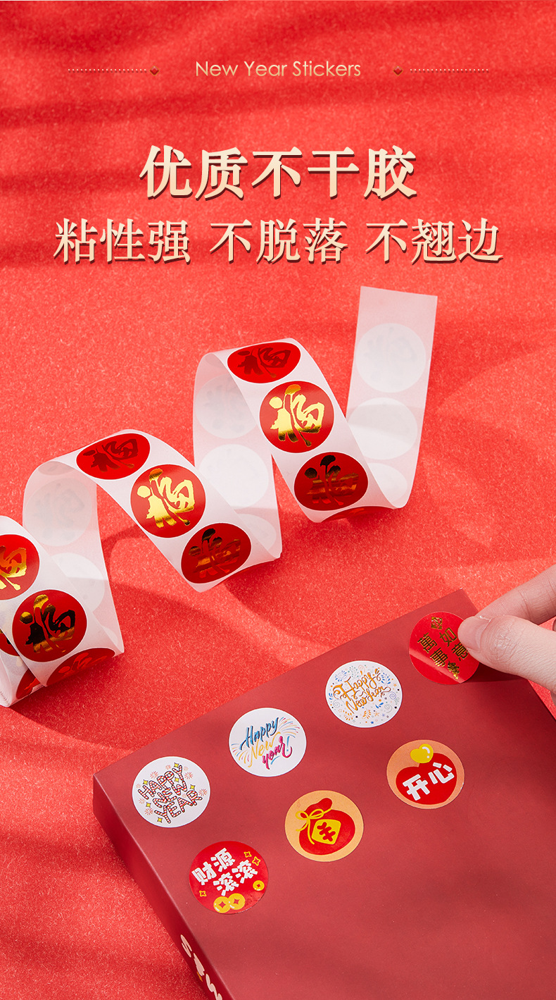 猫太子封口贴纸 厂家批发2023新年系列福字贴信封红包不干胶贴纸
