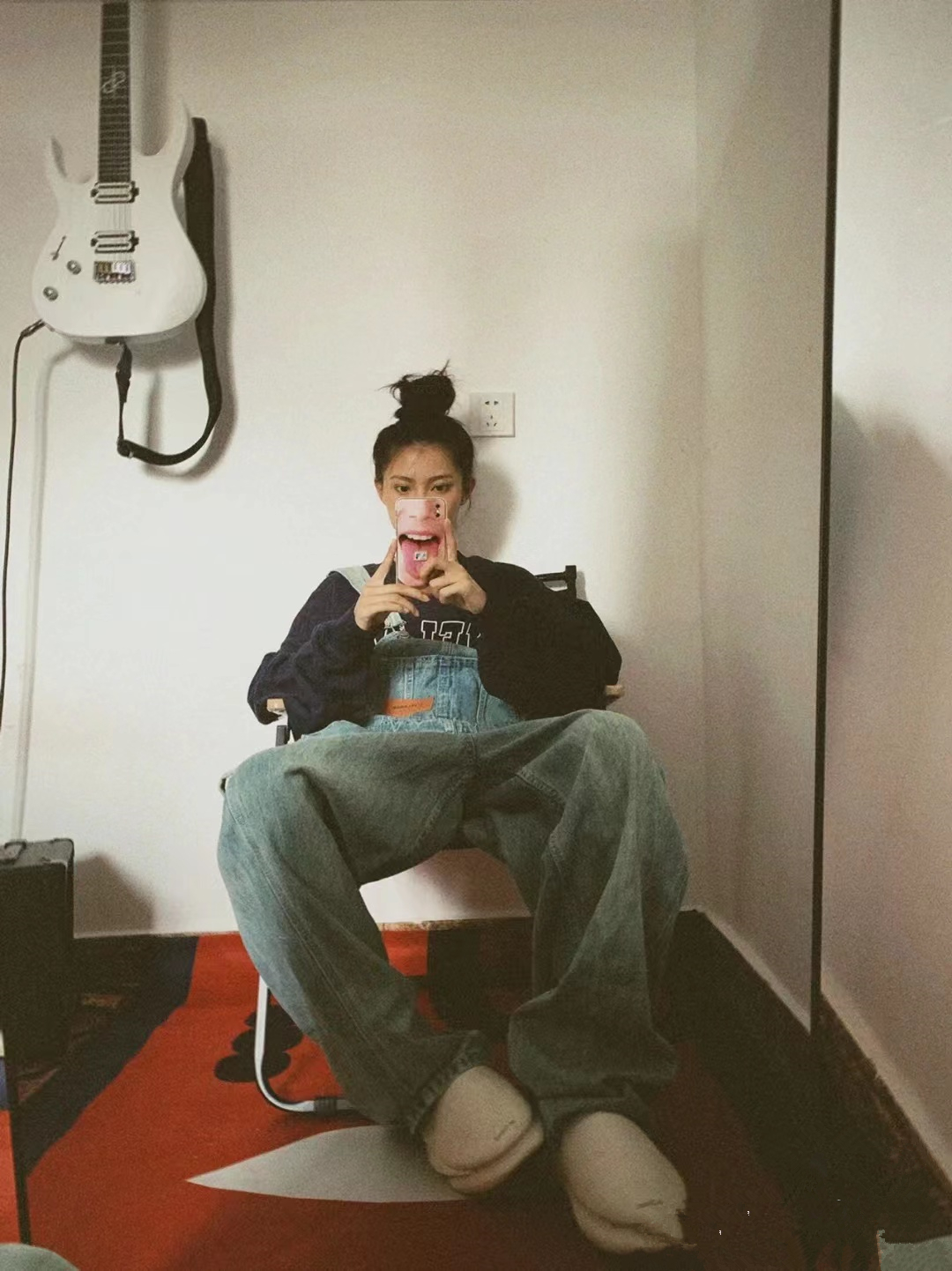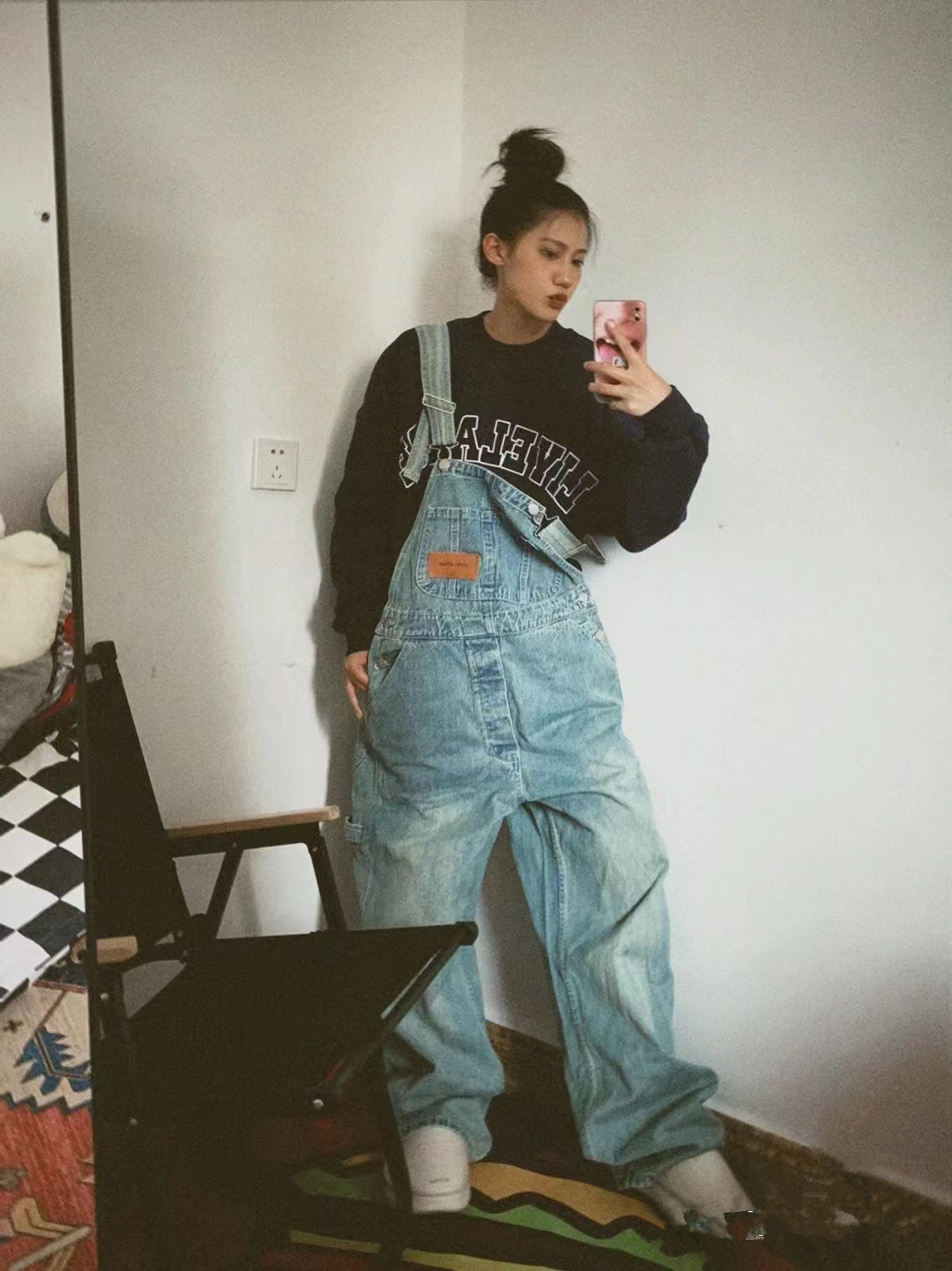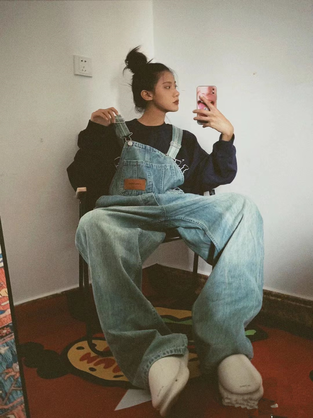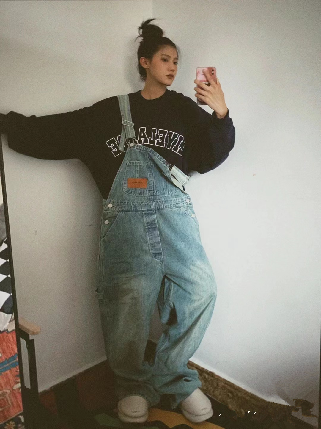 牛仔抱嬰袋褲女2023秋冬新款復古寬鬆美式街頭水洗作舊直筒拖地褲潮