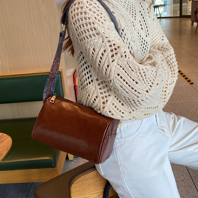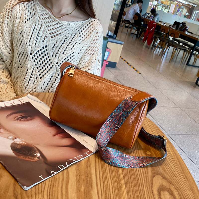 植鞣头层牛皮女包2024新款斜挎包腋下单肩小包高级感真皮枕头包