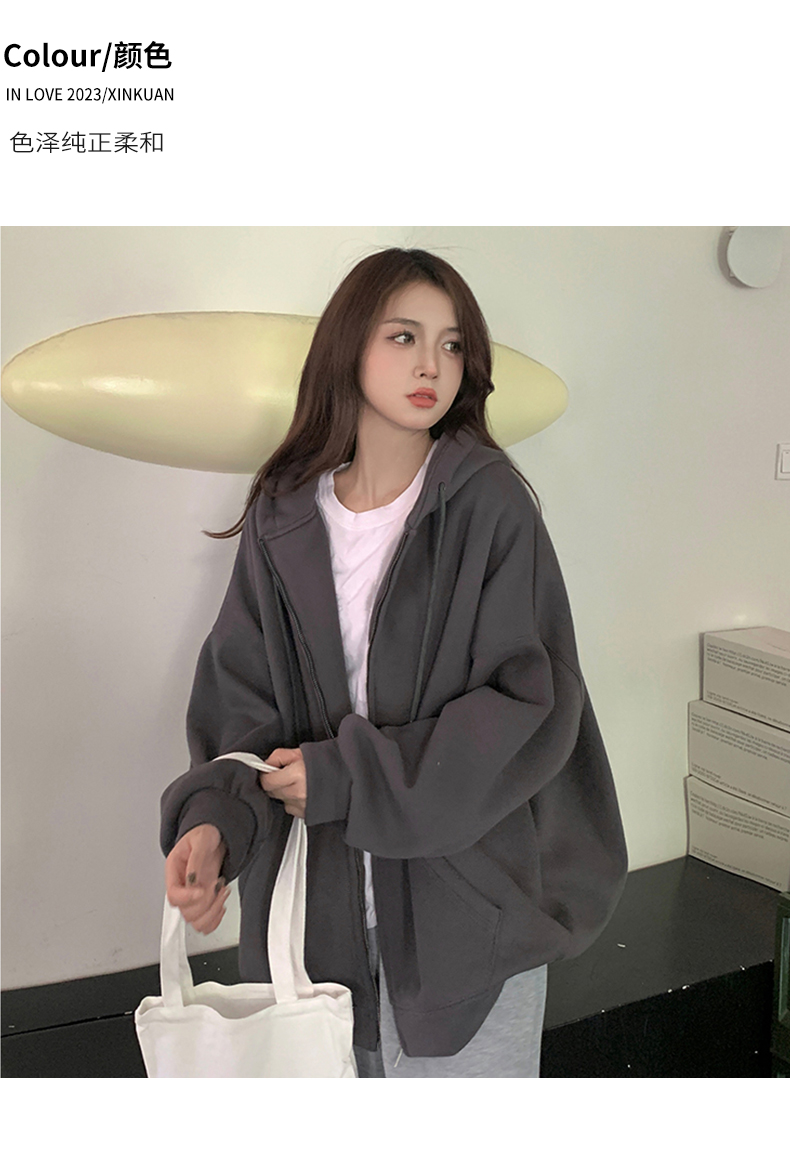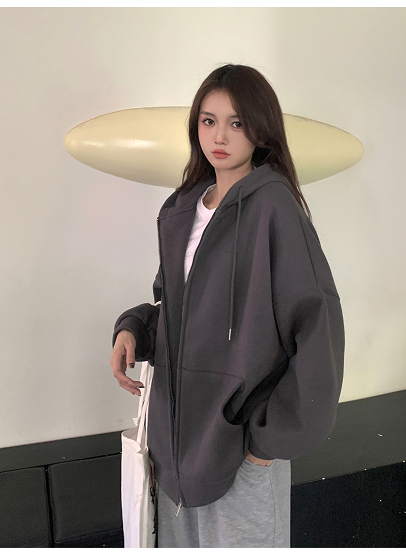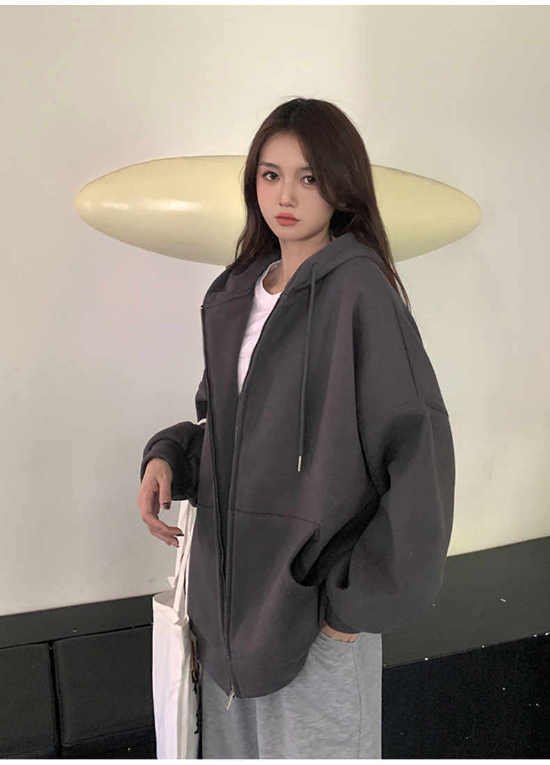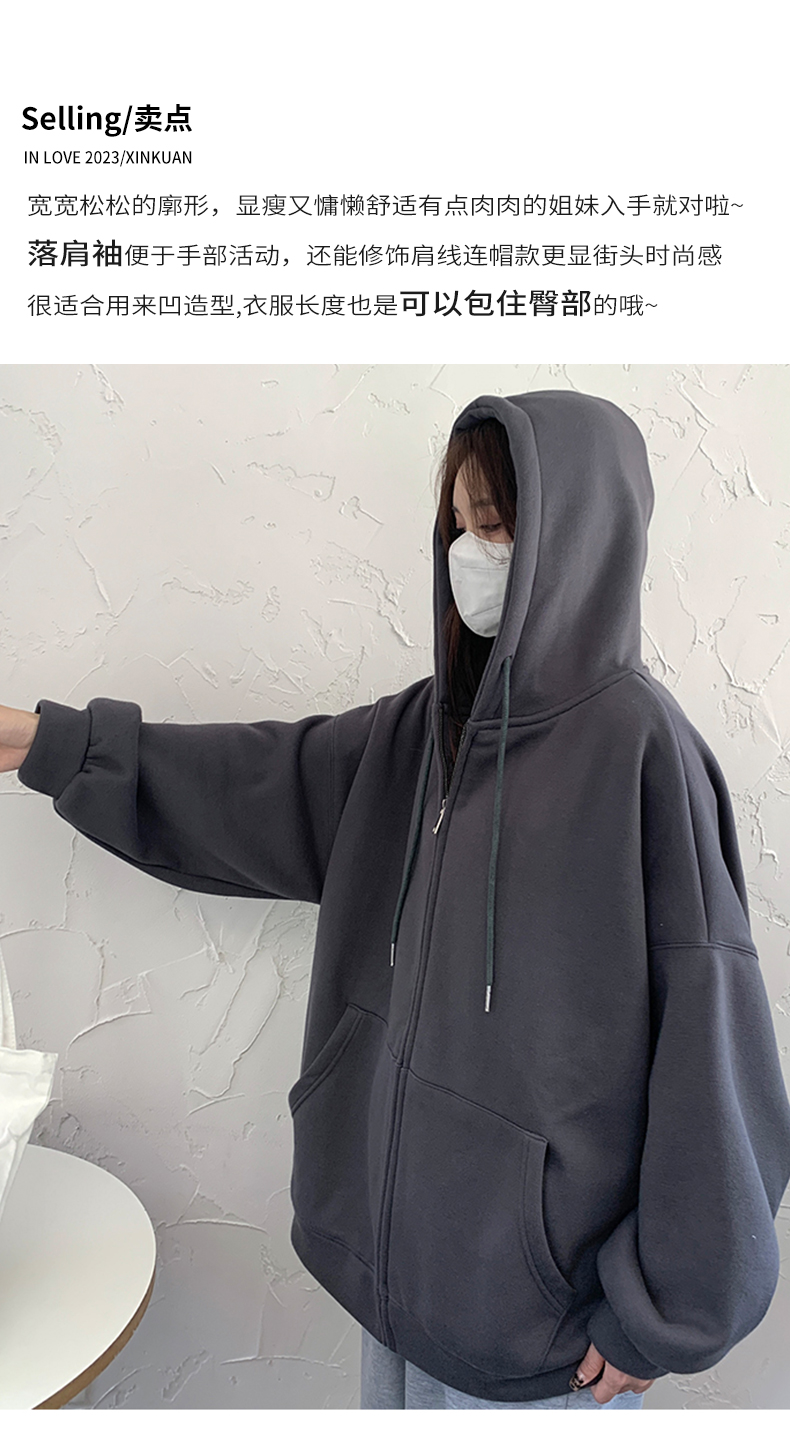秋季灰色厚棉T外套女春秋chic早春2023新款韓系慵懶風厚連帽開衫冬