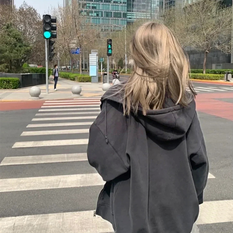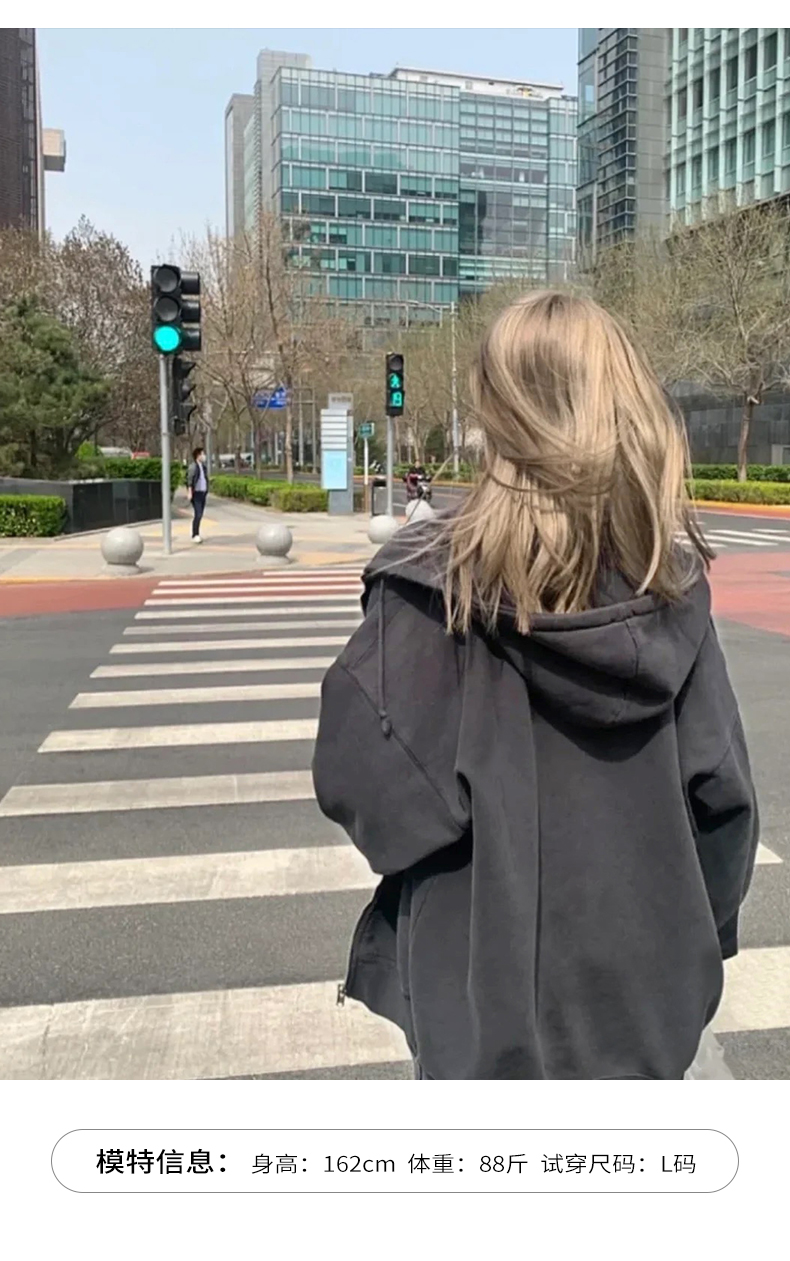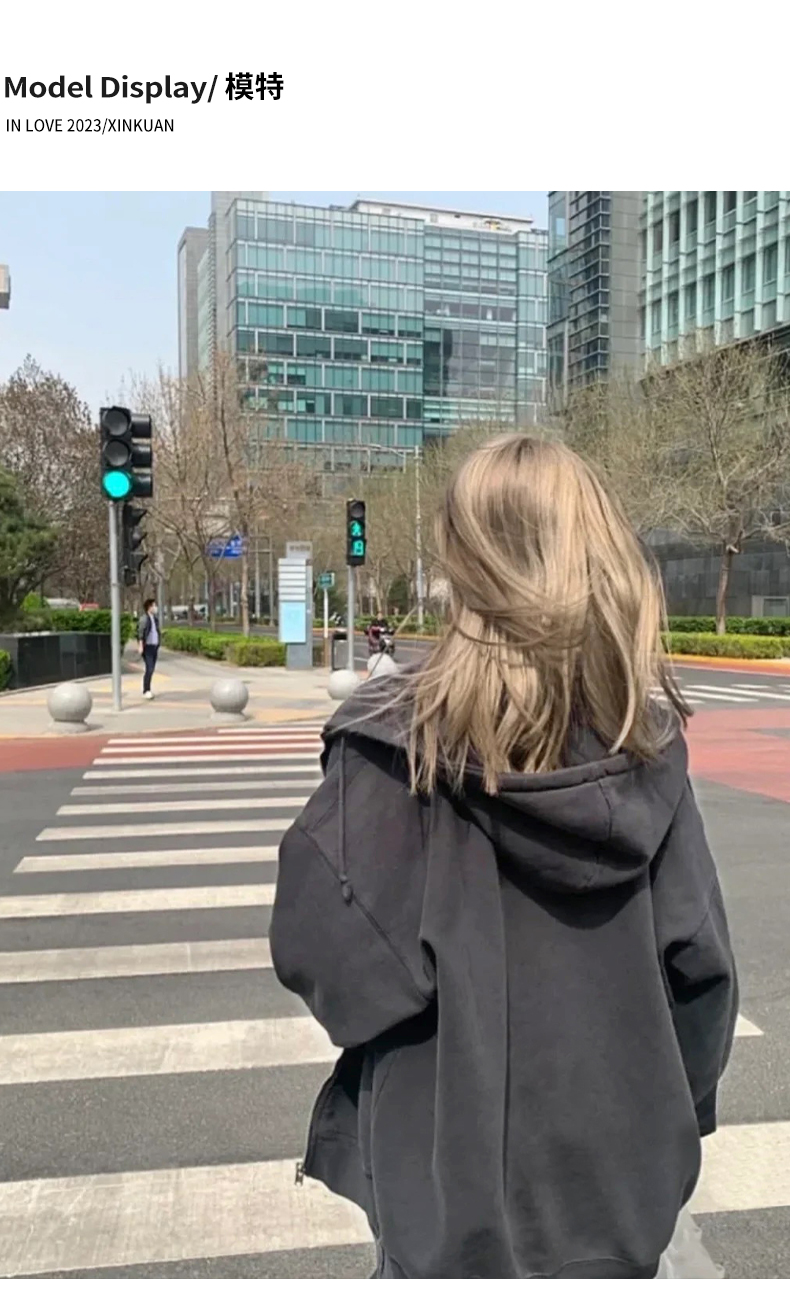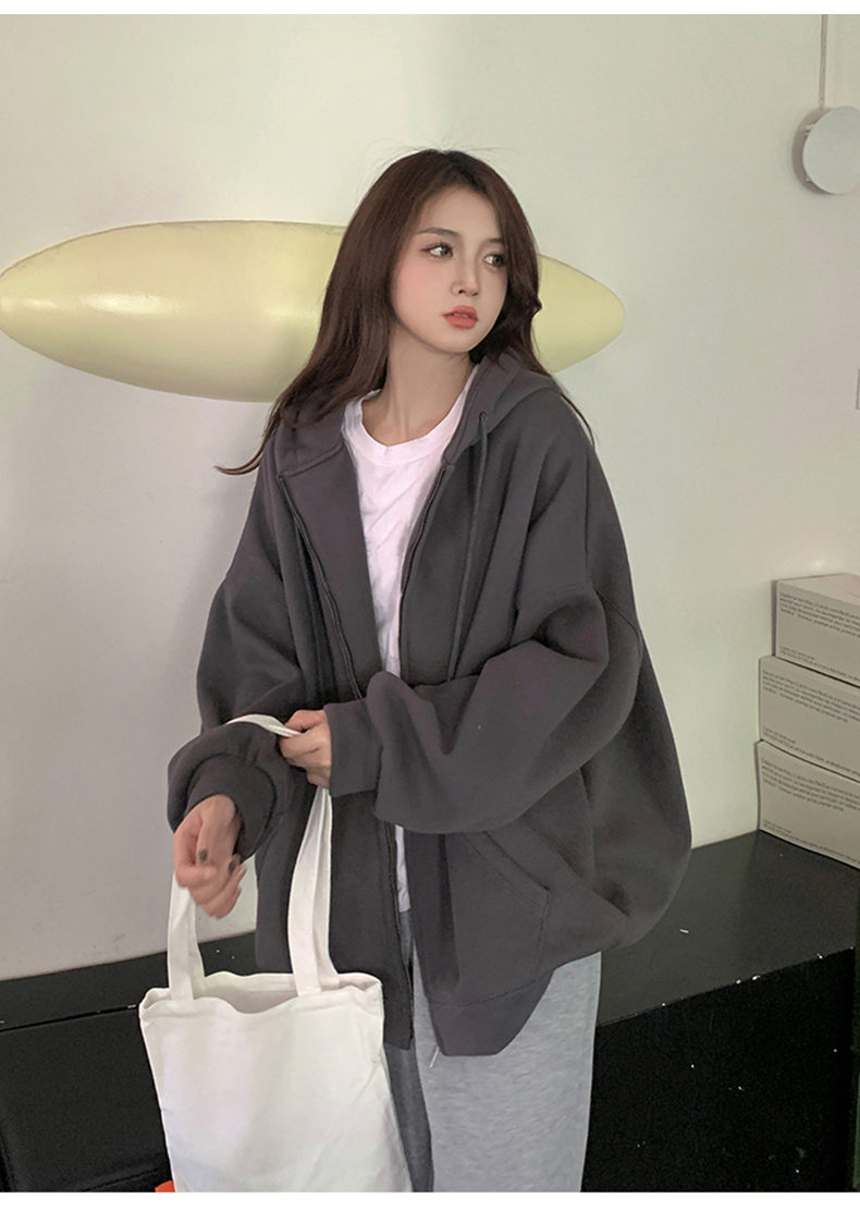 秋季灰色厚棉T外套女春秋chic早春2023新款韓系慵懶風厚連帽開衫冬