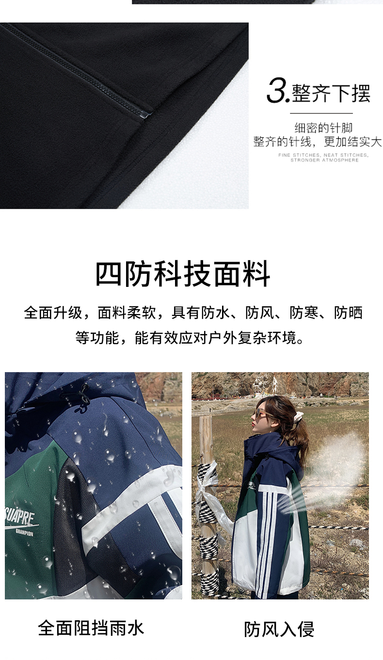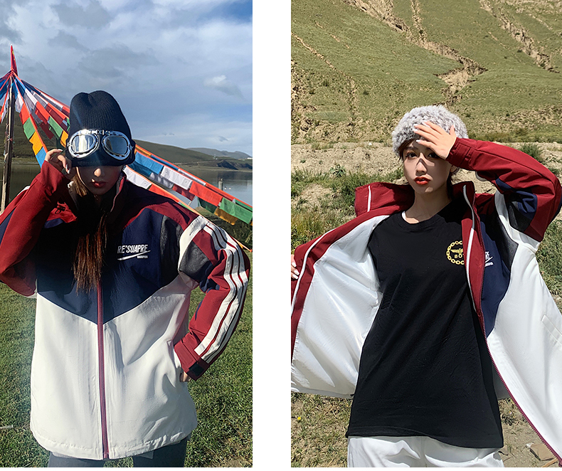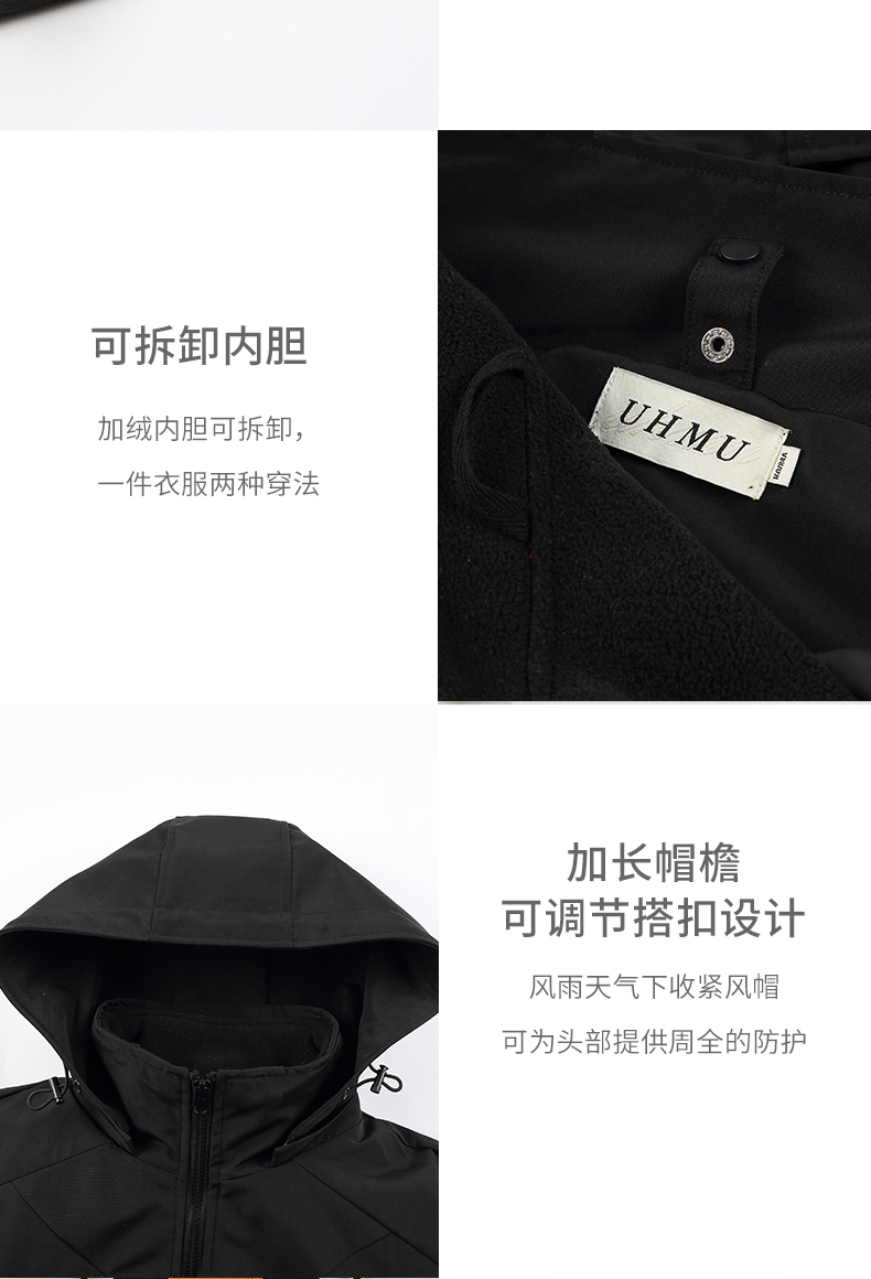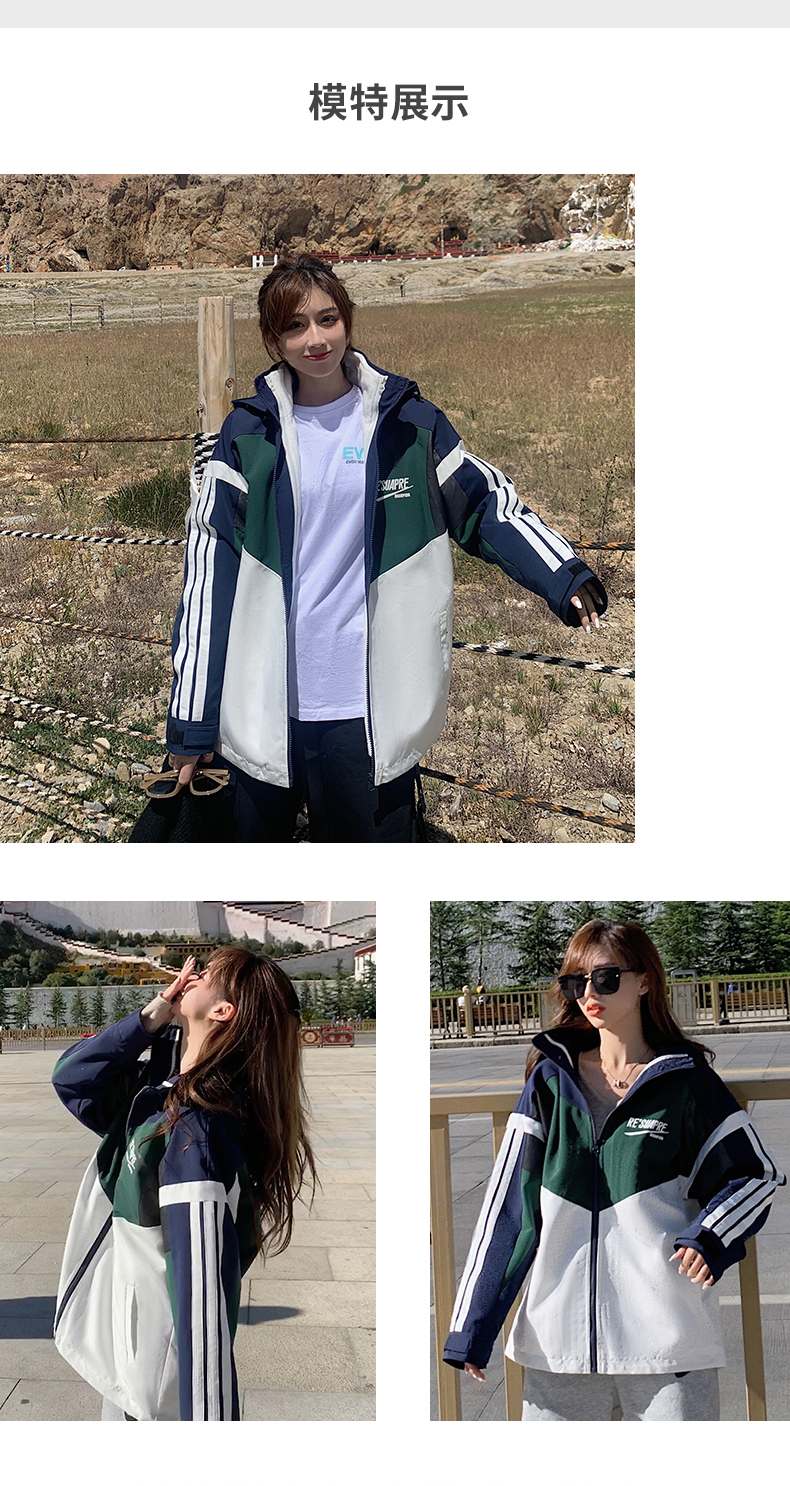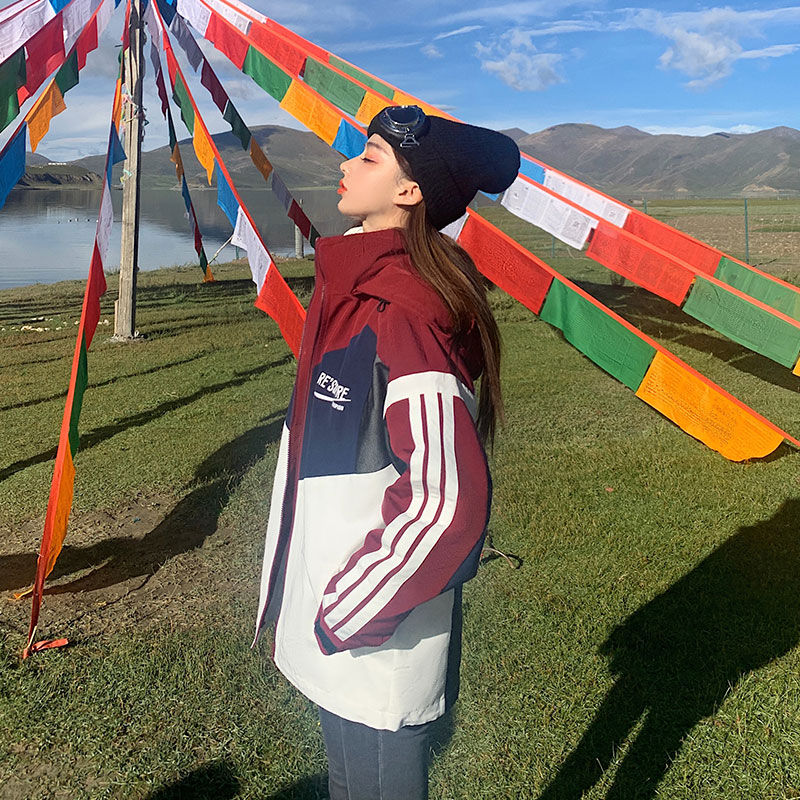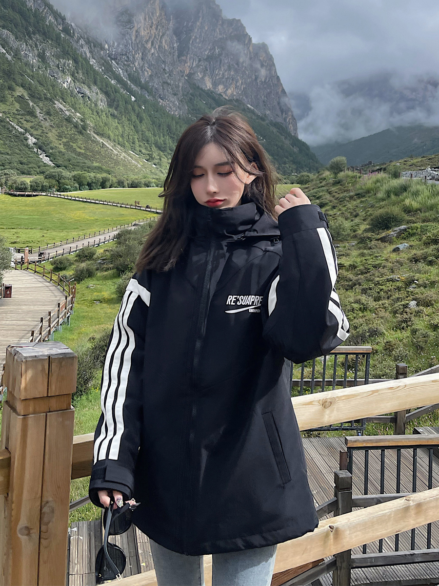 UhMu衝鋒衣女潮牌三條槓運動男女情侶裝嘻哈街頭bf風加絨工裝外套