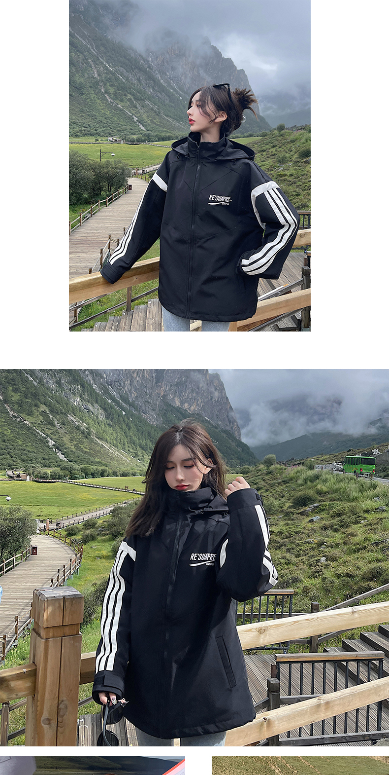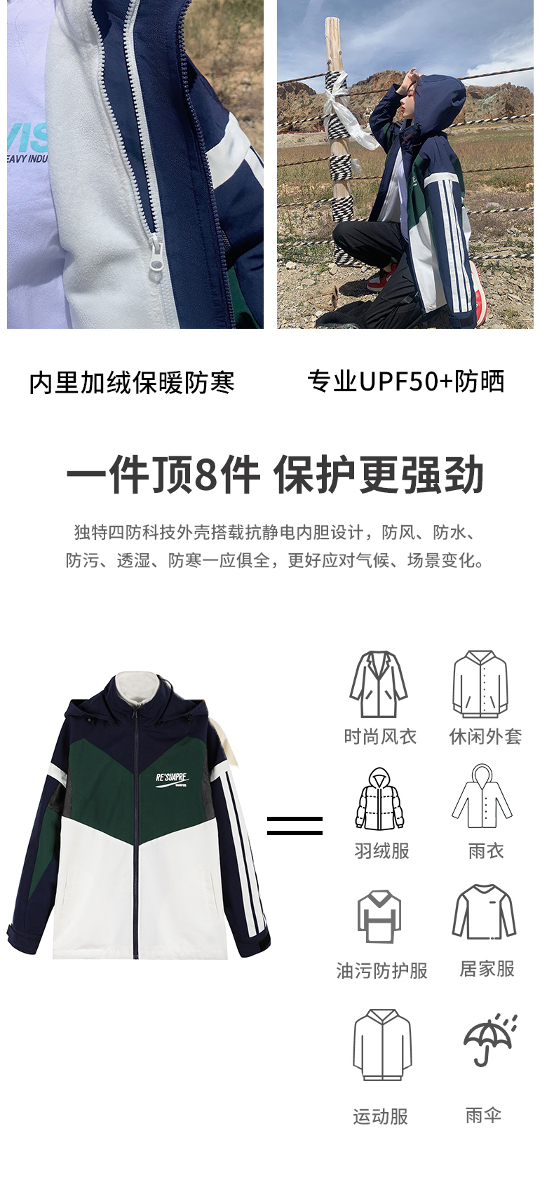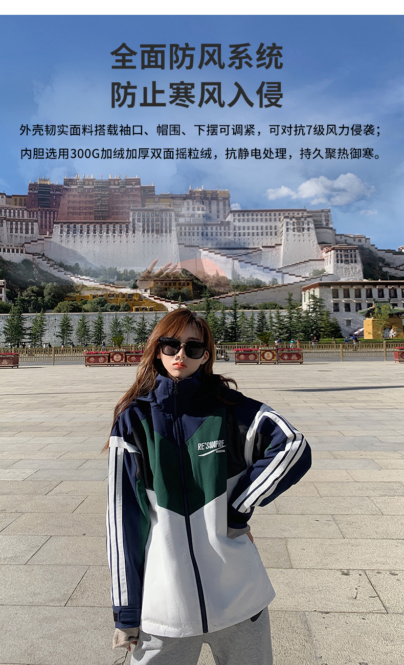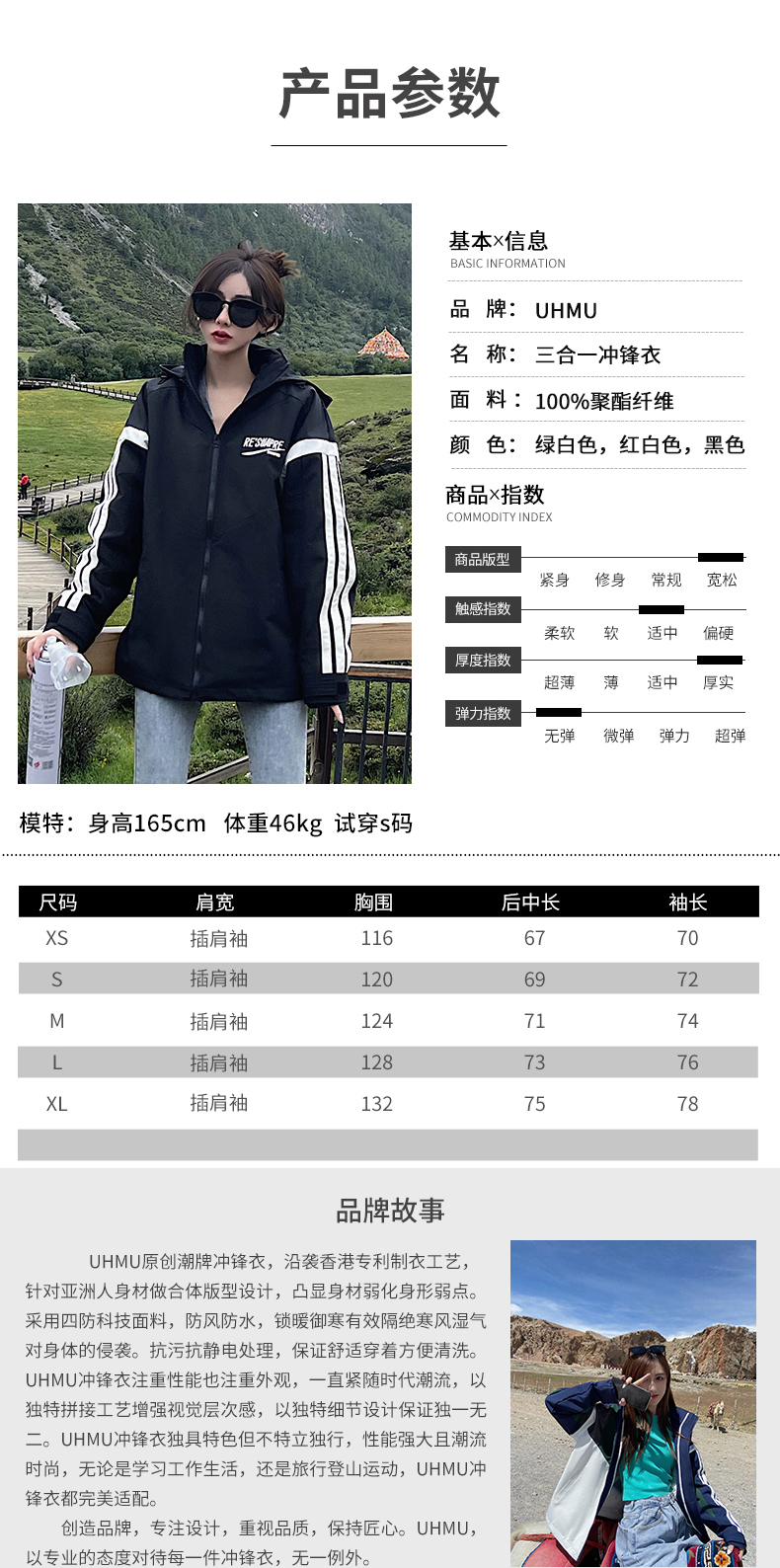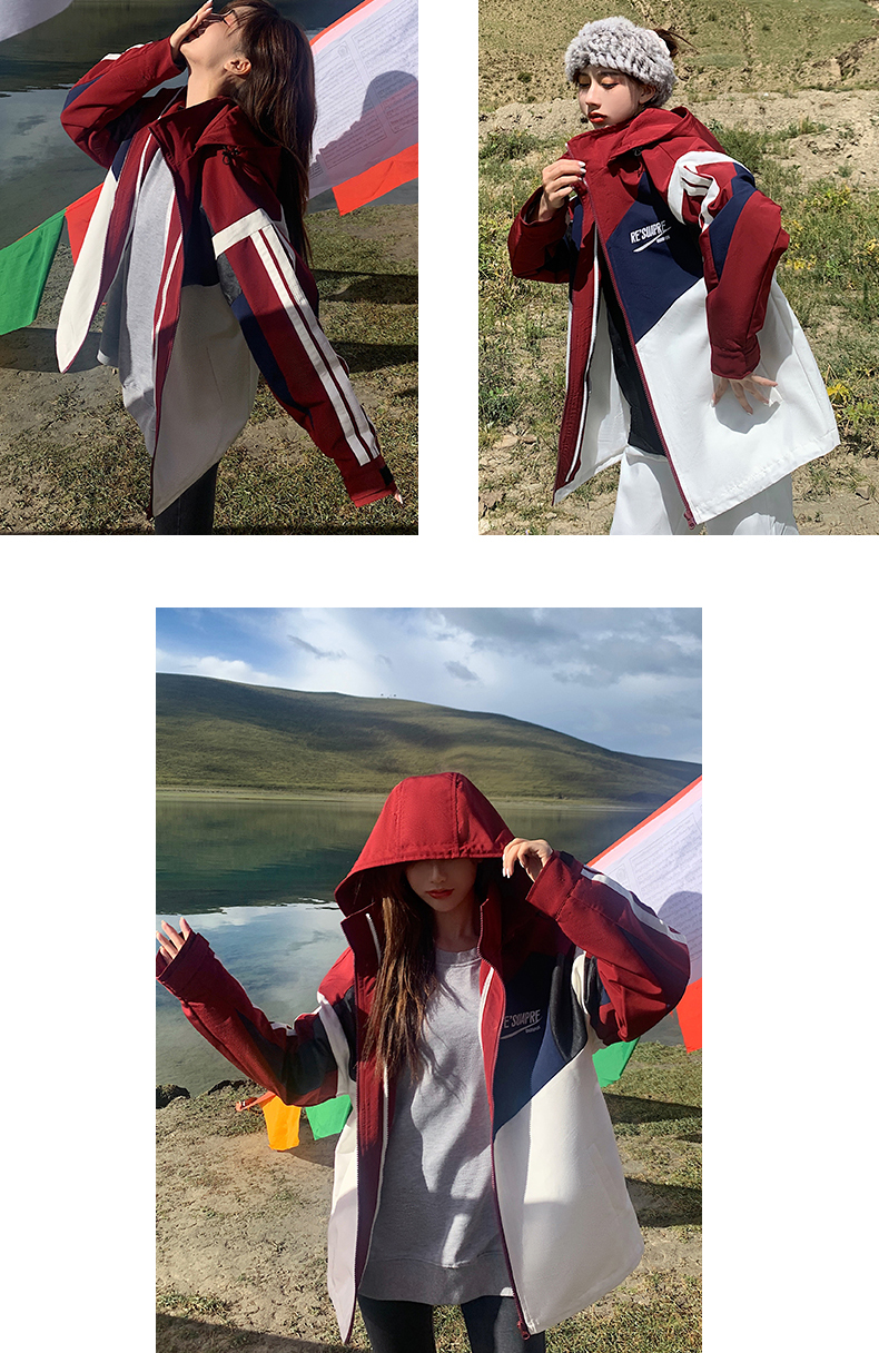 UhMu衝鋒衣女潮牌三條槓運動男女情侶裝嘻哈街頭bf風加絨工裝外套
