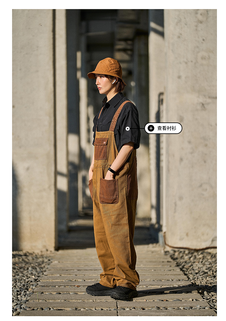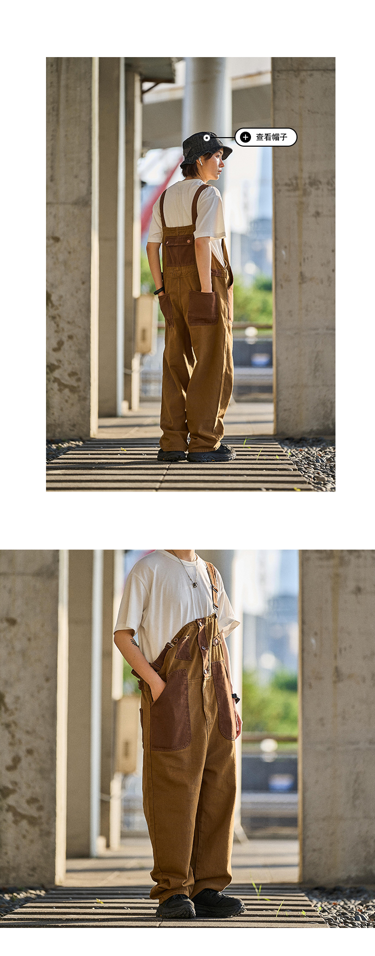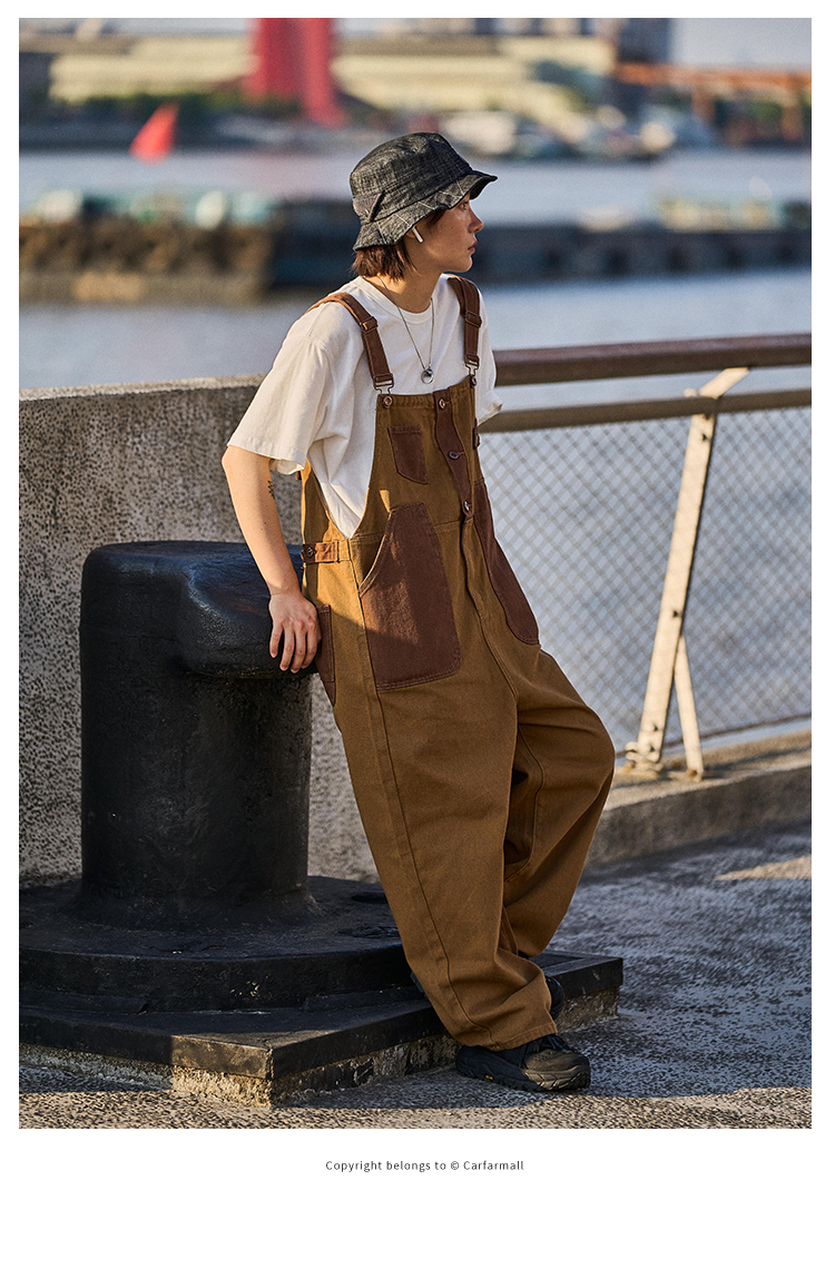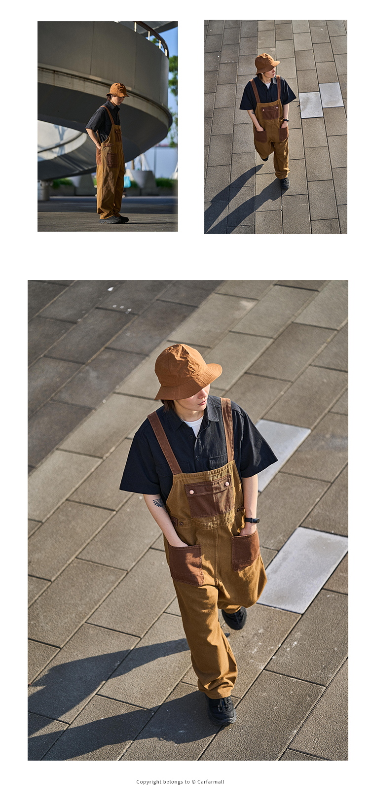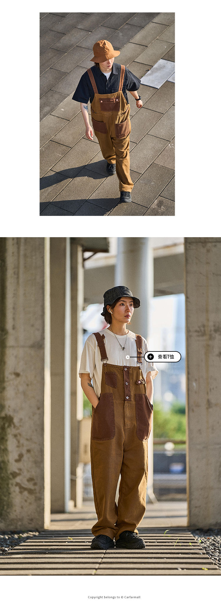 七哥火星局 美式復古卡其色工裝抱嬰袋褲情侶日系寬鬆中性直筒褲女