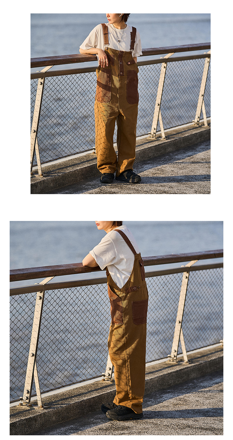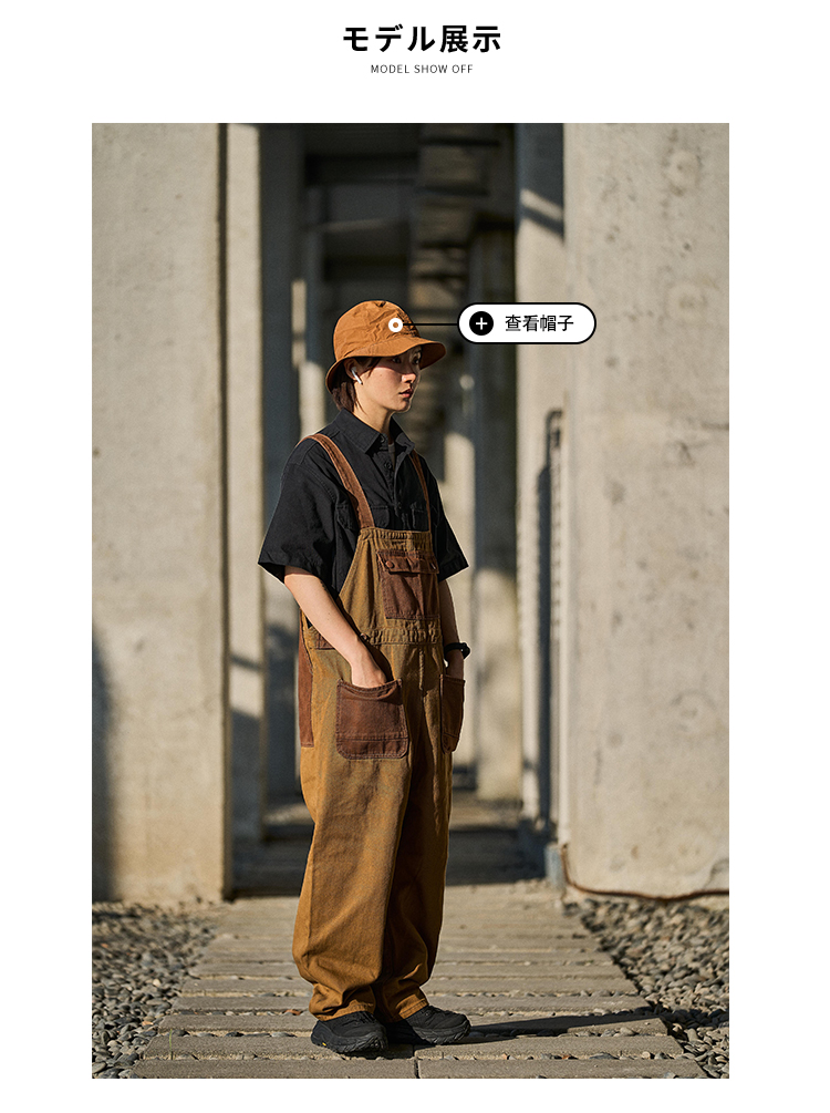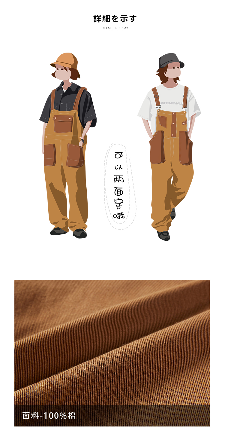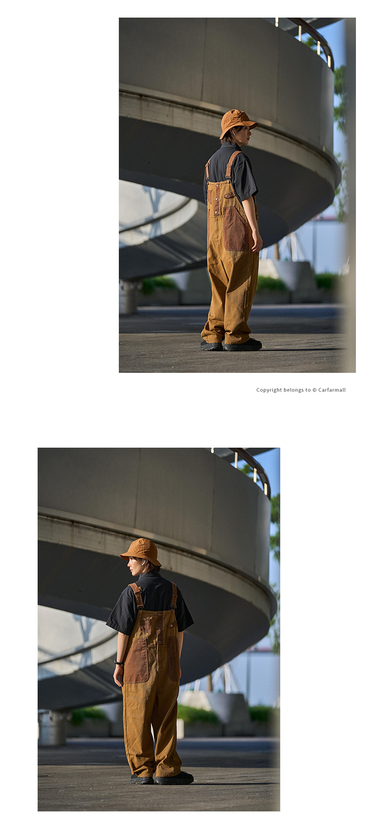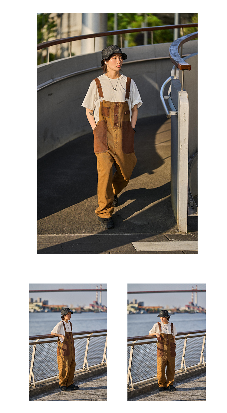 七哥火星局 美式復古卡其色工裝抱嬰袋褲情侶日系寬鬆中性直筒褲女