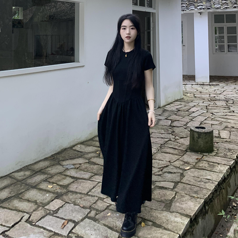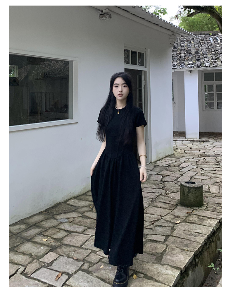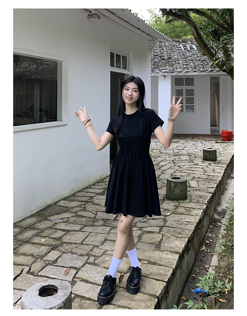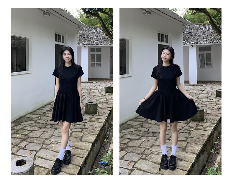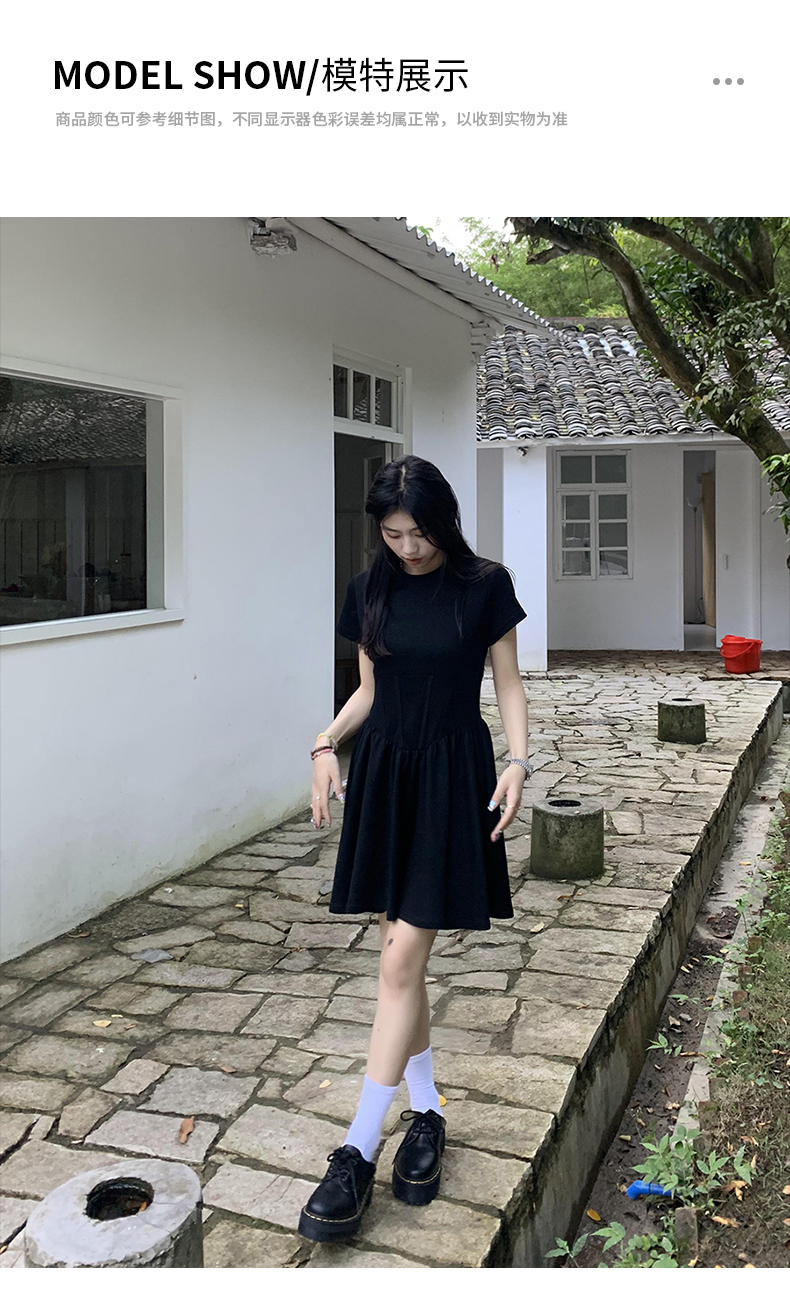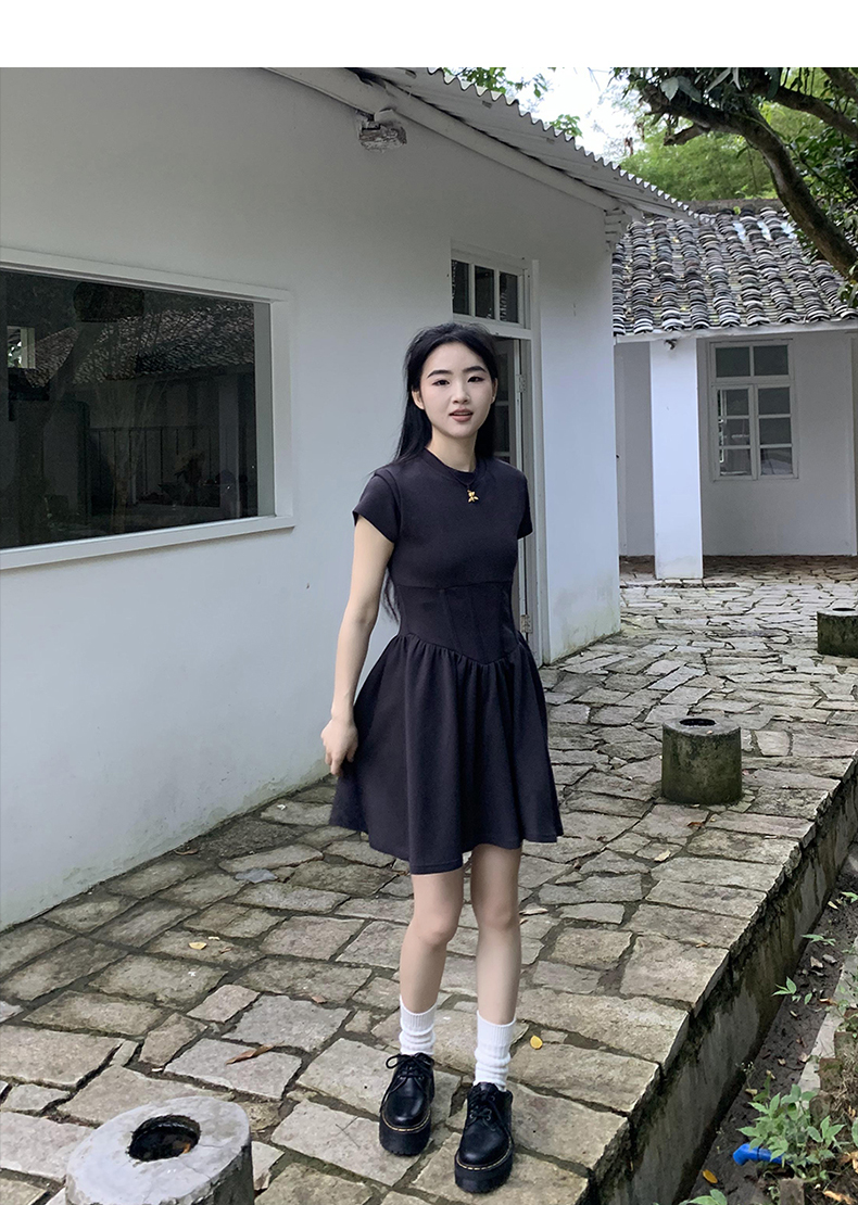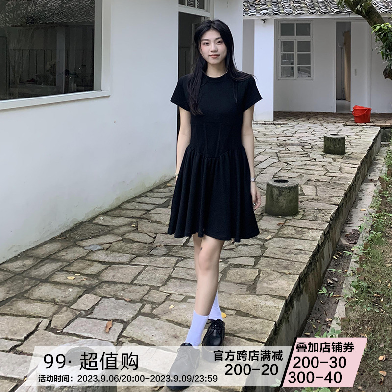 橘子樹在哪兒赫本風黑色魚骨洋裝女夏季高級感收腰顯瘦氣質短裙