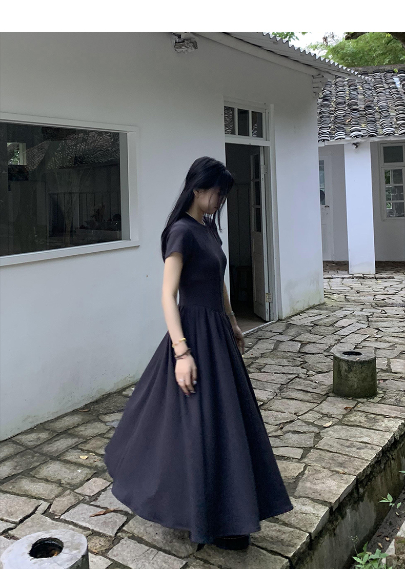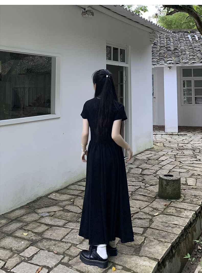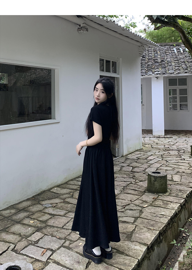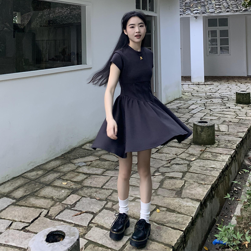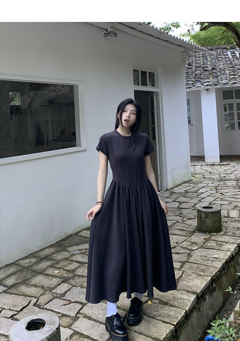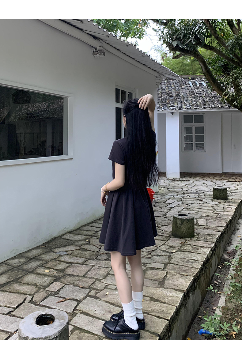 橘子樹在哪兒赫本風黑色魚骨洋裝女夏季高級感收腰顯瘦氣質短裙