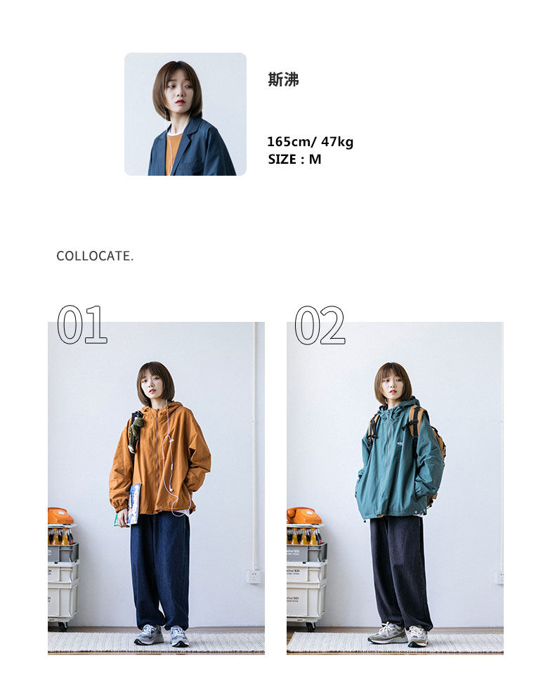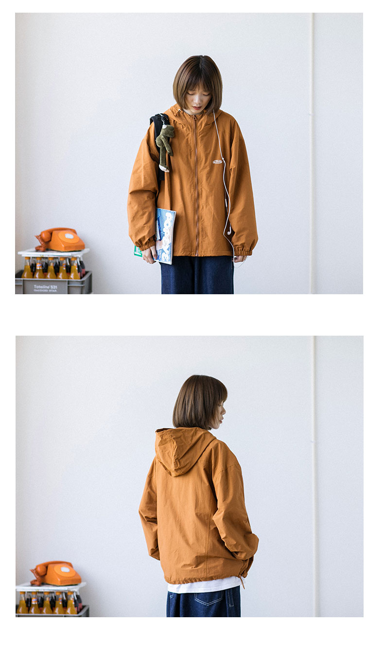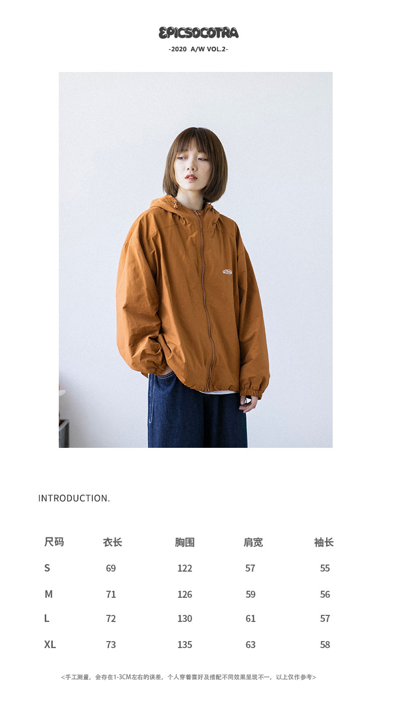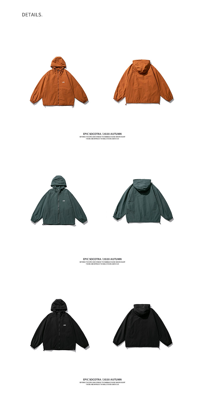 Epicsocotra自制日系復古中性bf風衝鋒連帽開衫外套 男女休閒夾克