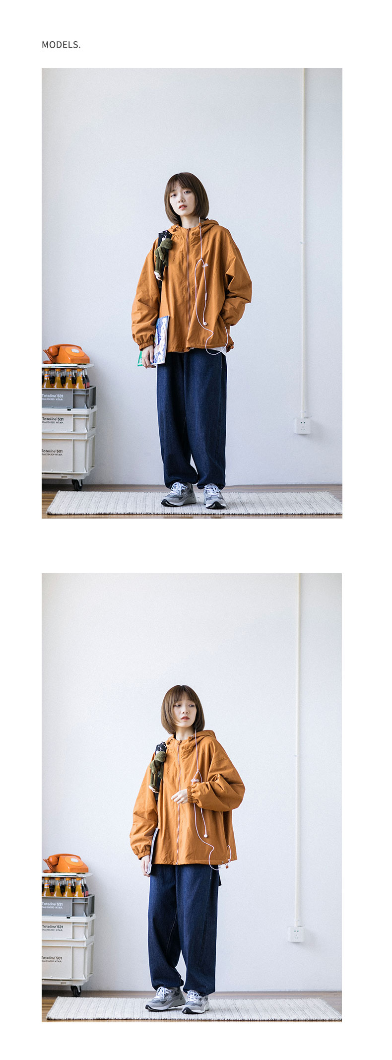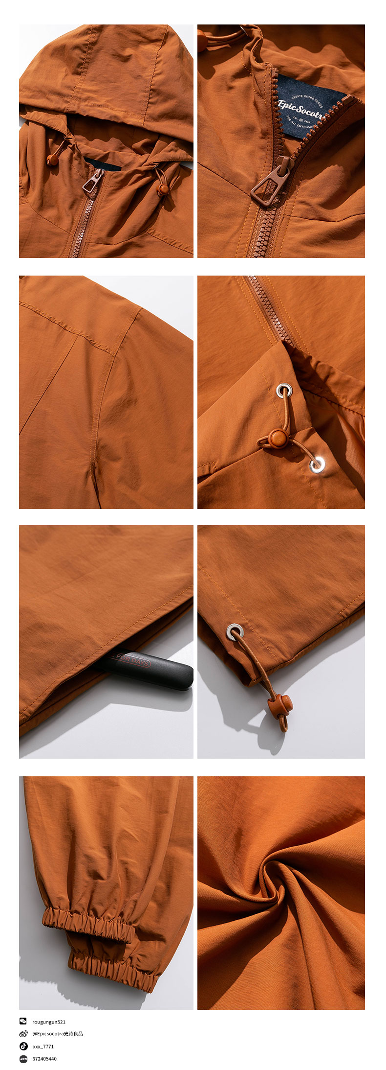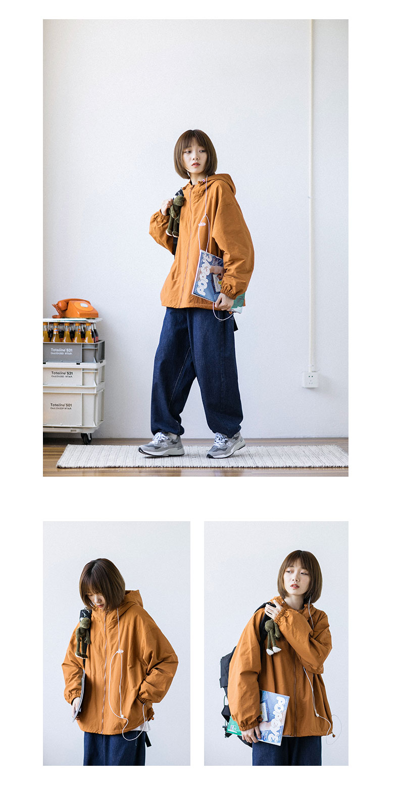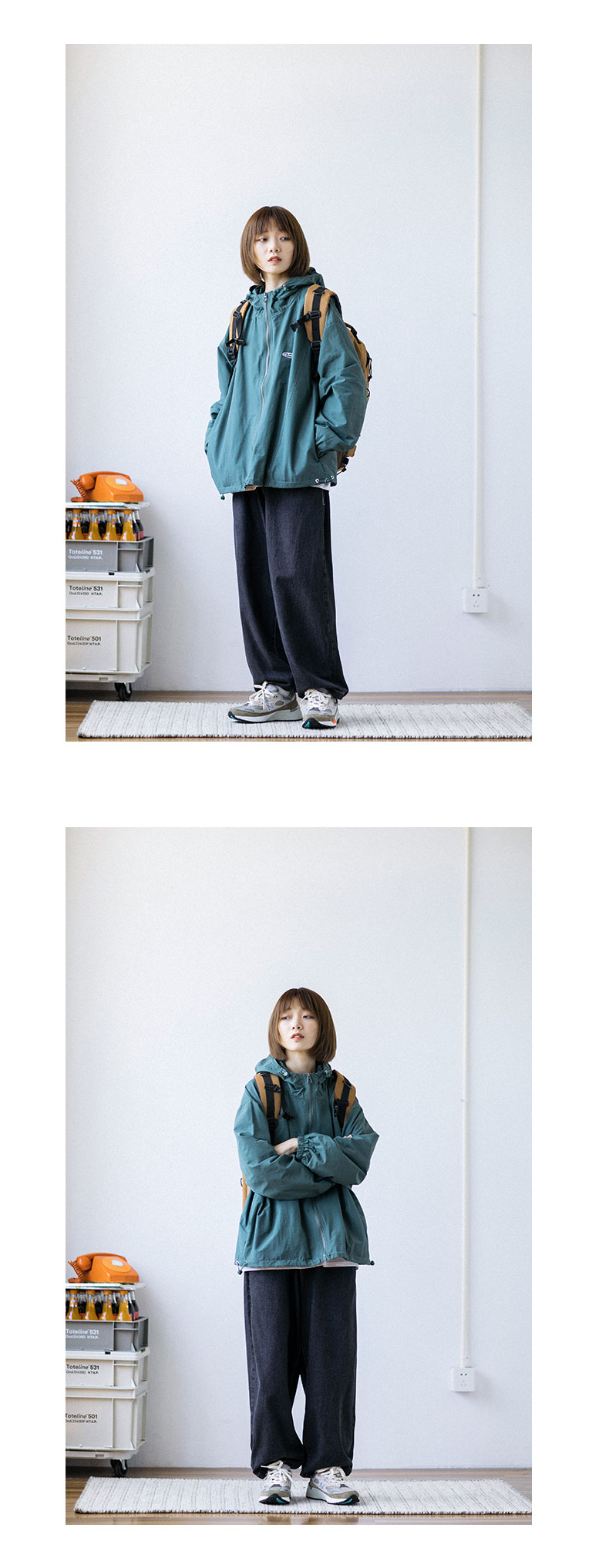 Epicsocotra自制日系復古中性bf風衝鋒連帽開衫外套 男女休閒夾克