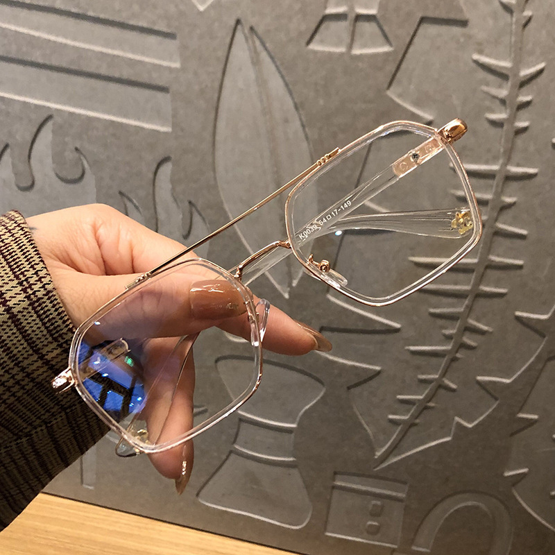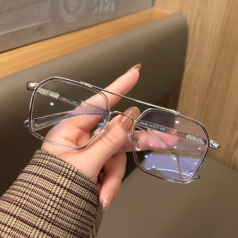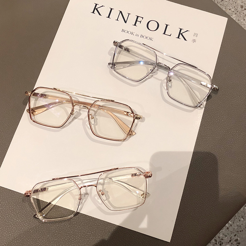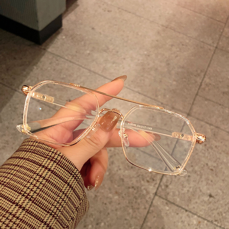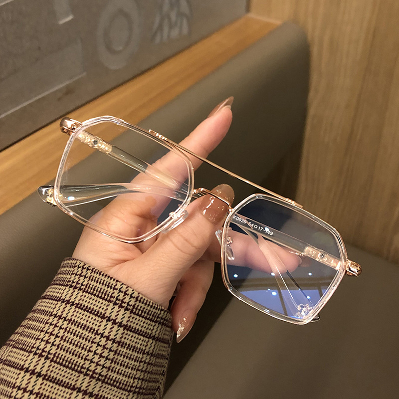 防蓝光眼镜透明框复古双梁飞行员平光眼睛架可配度数女近视眼镜框