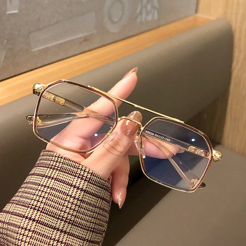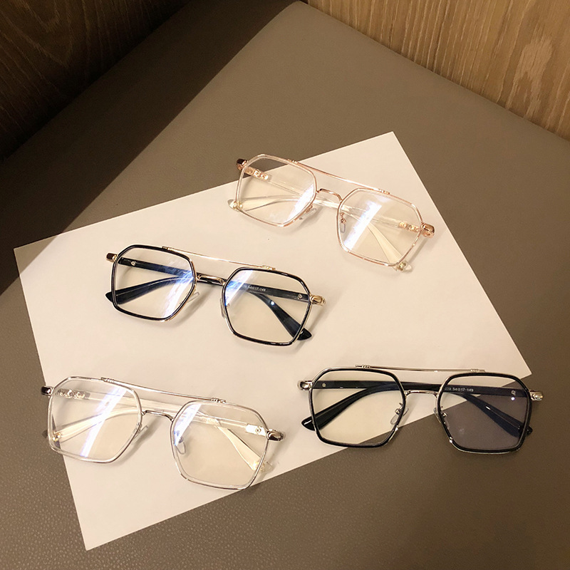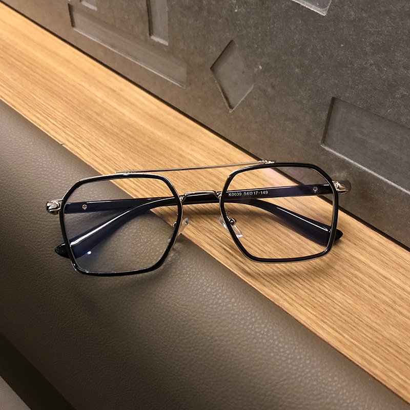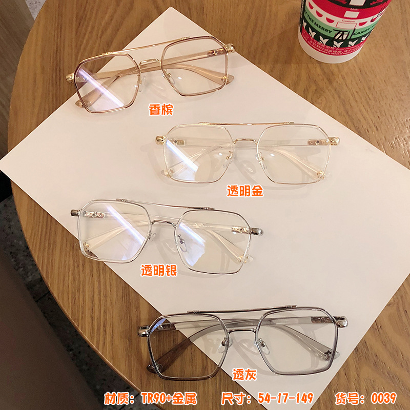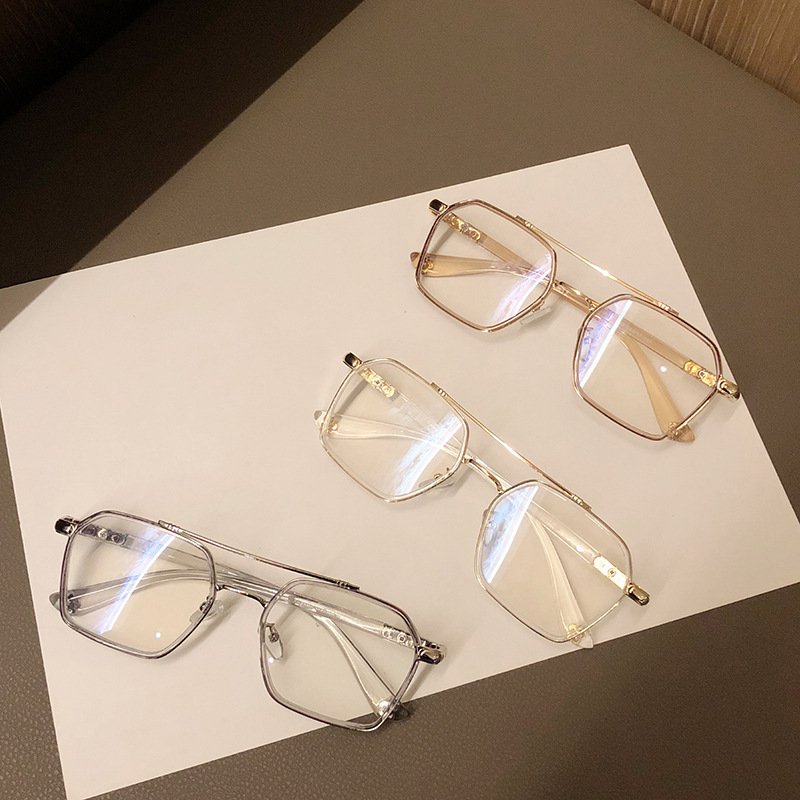 防蓝光眼镜透明框复古双梁飞行员平光眼睛架可配度数女近视眼镜框