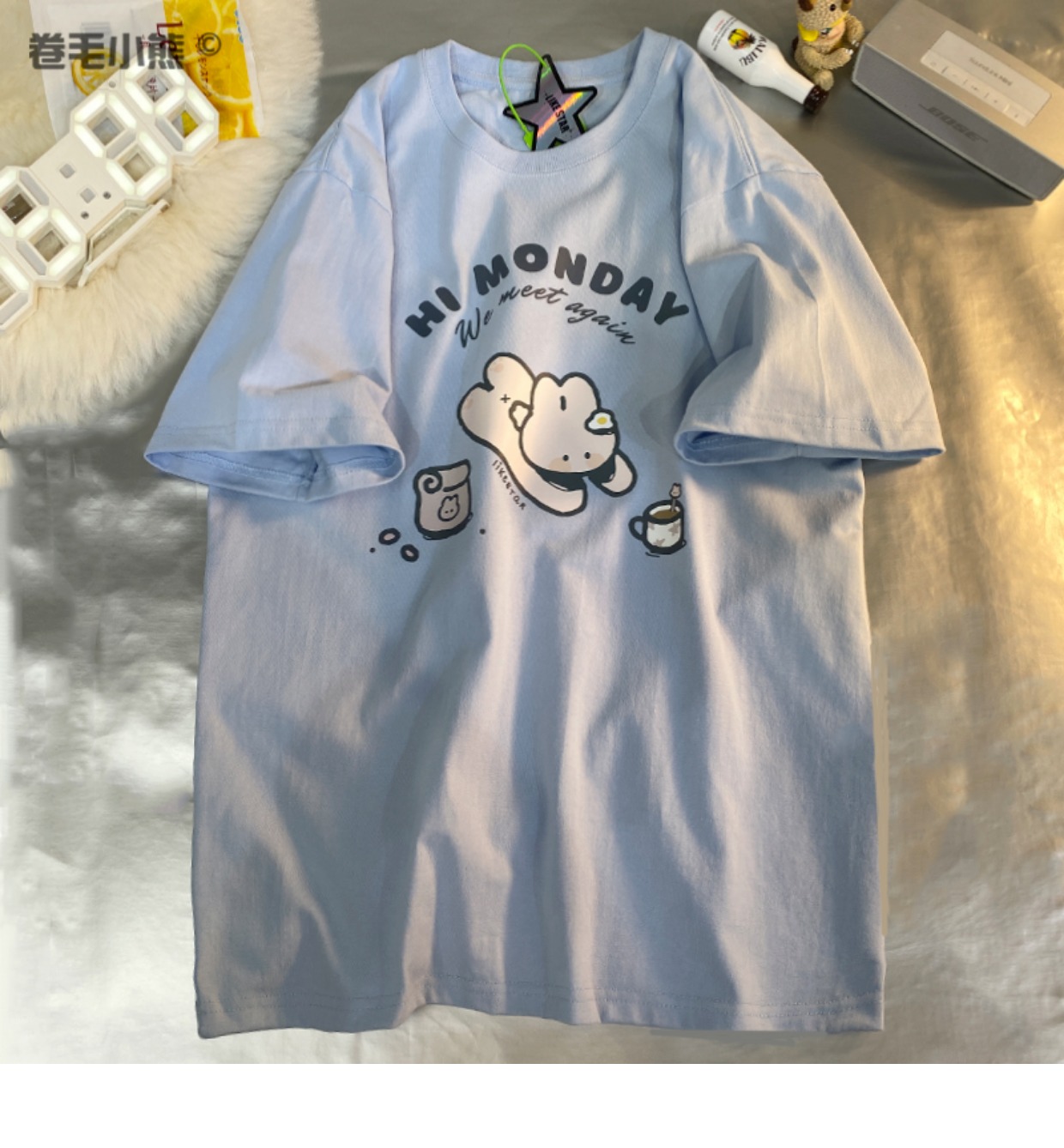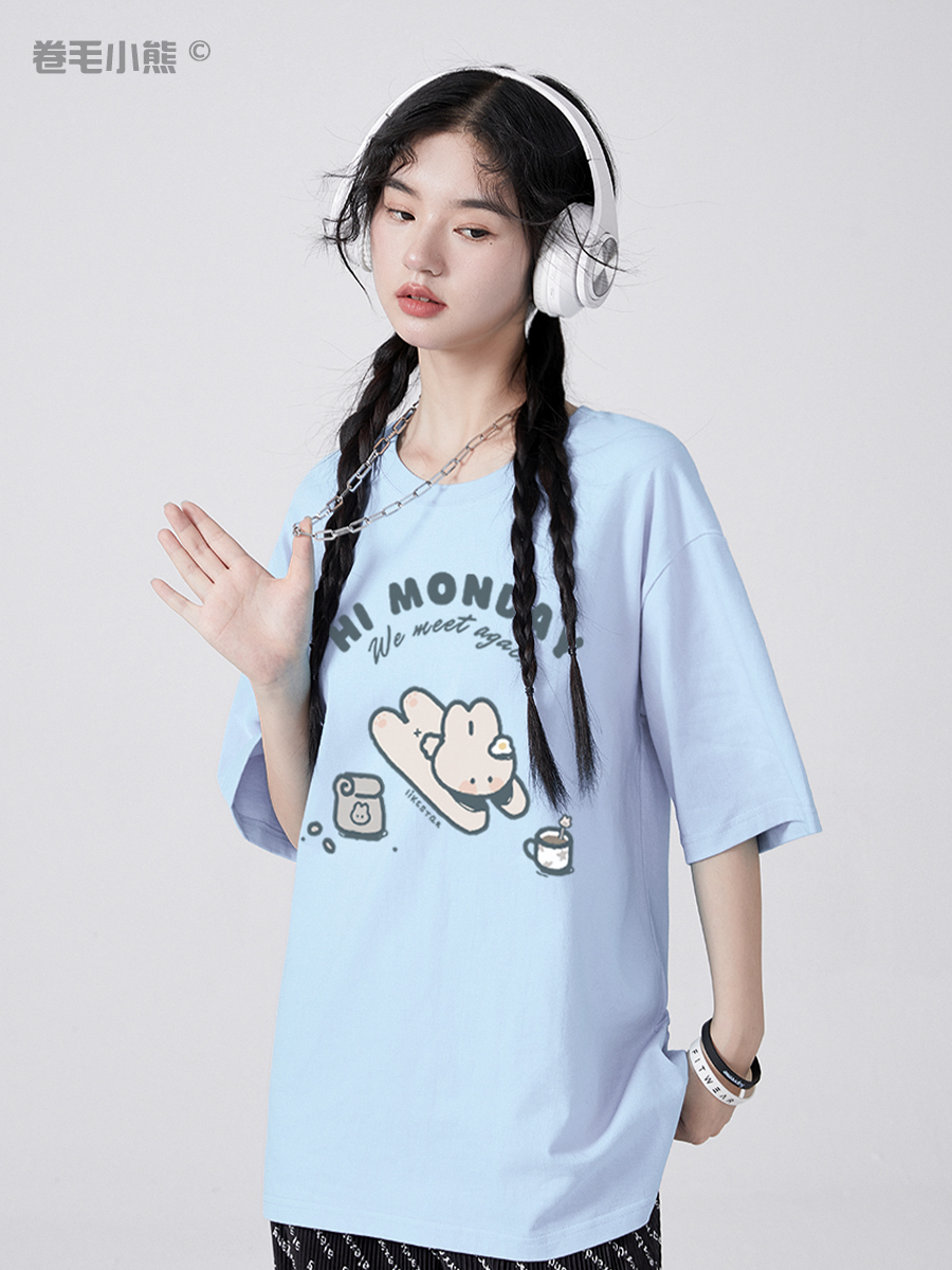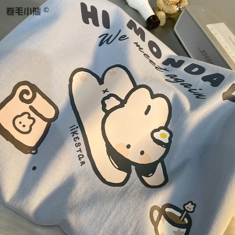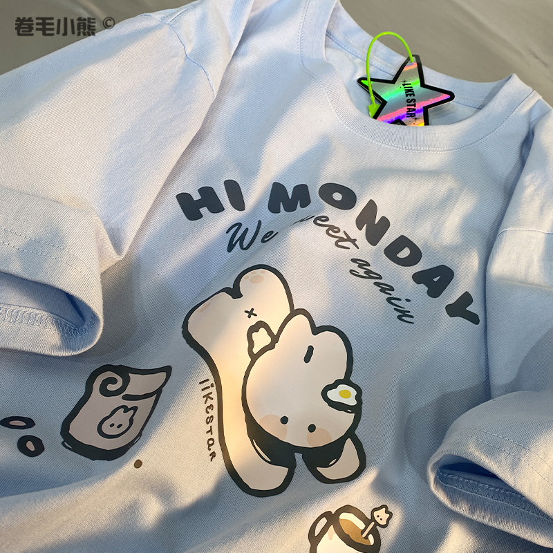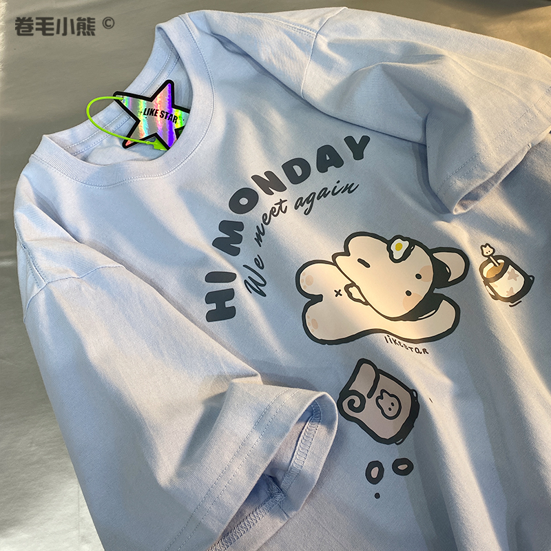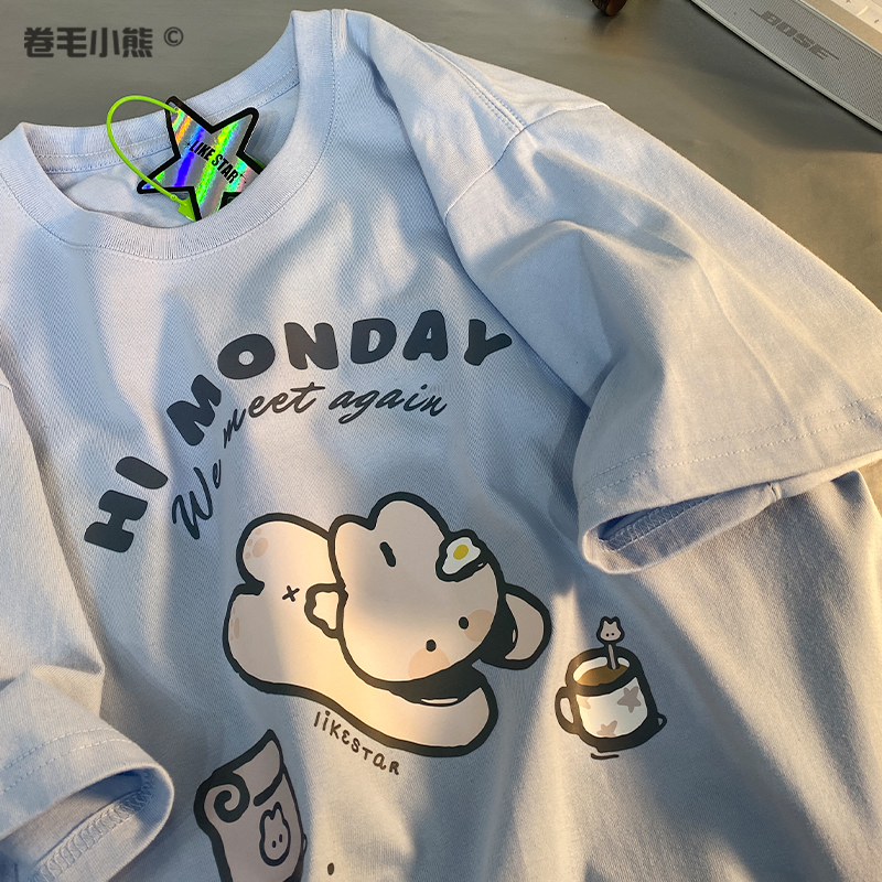 是兔兔啊~捲毛小熊重磅純棉短袖t恤女2023年新款寬鬆軟妹甜美上衣