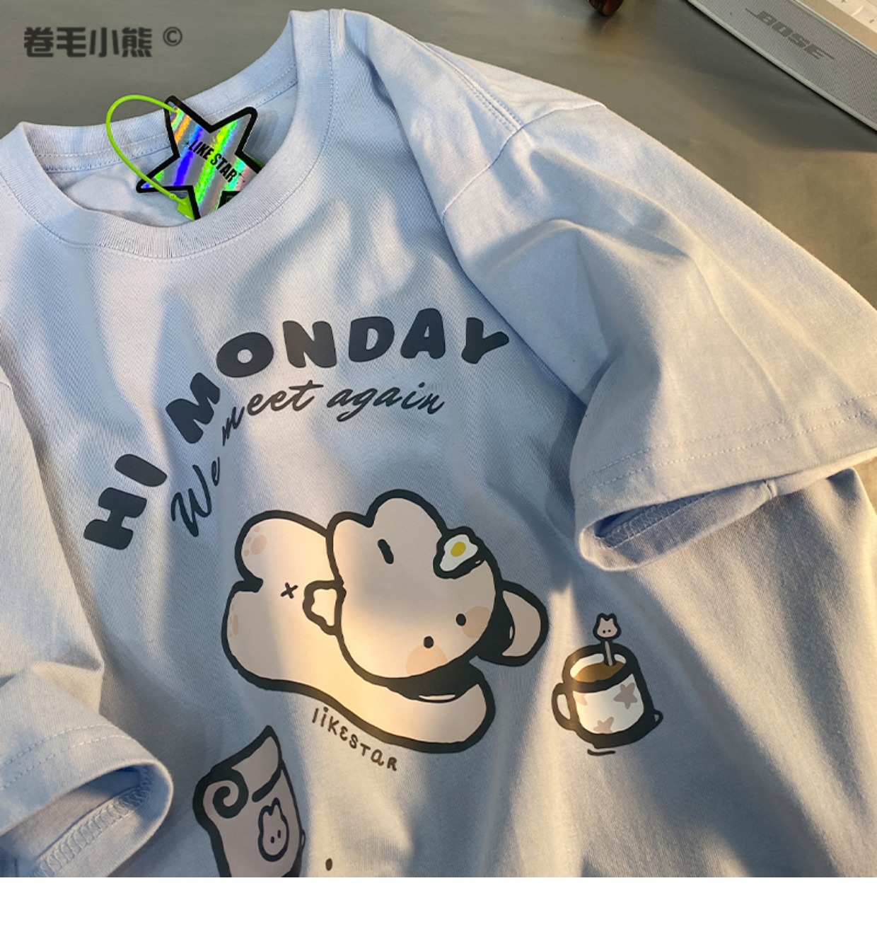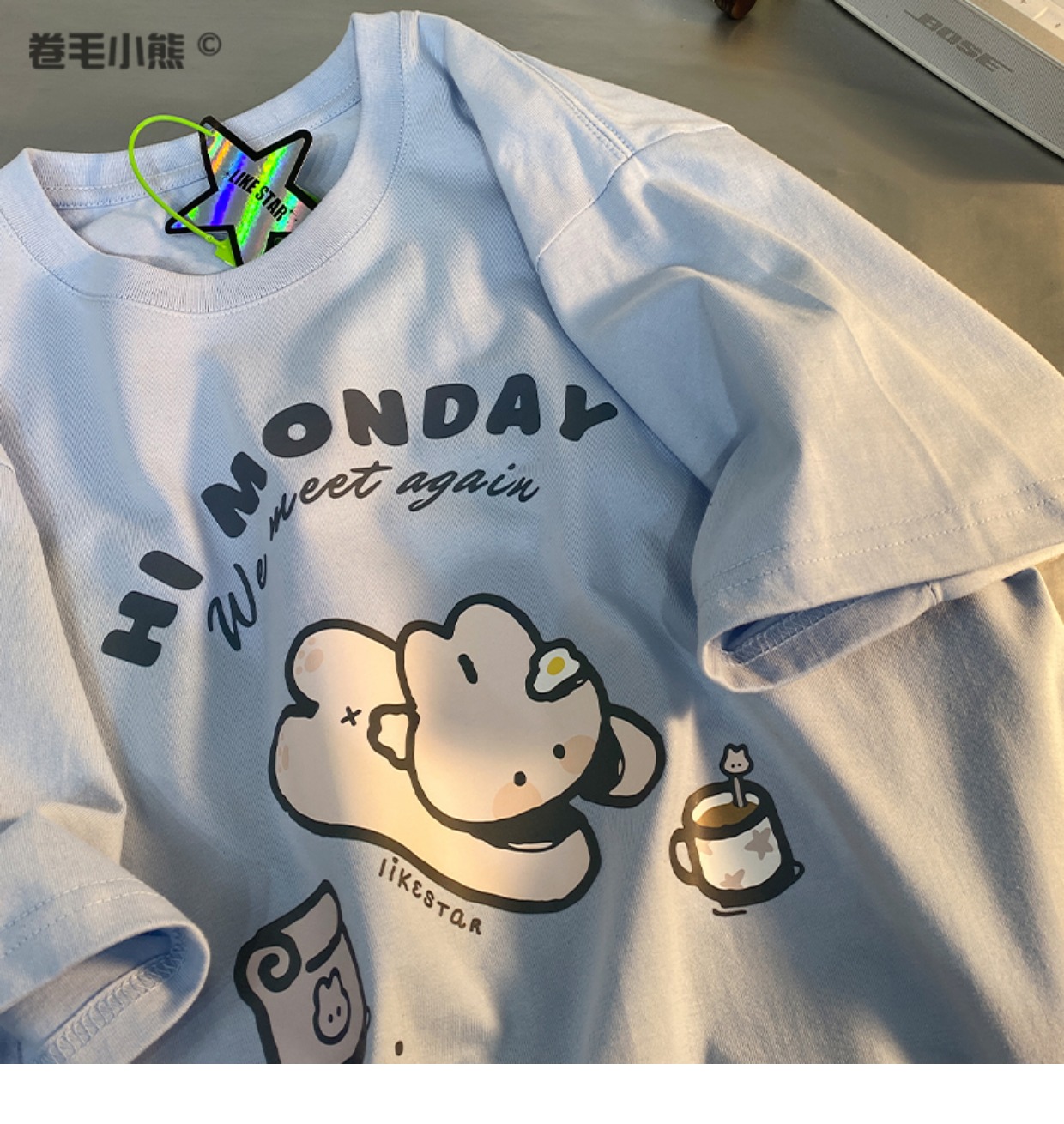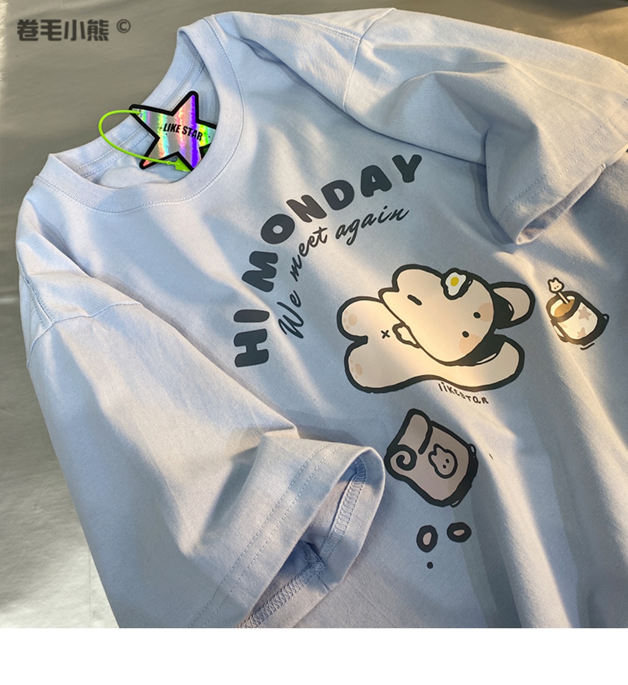 是兔兔啊~捲毛小熊重磅純棉短袖t恤女2023年新款寬鬆軟妹甜美上衣