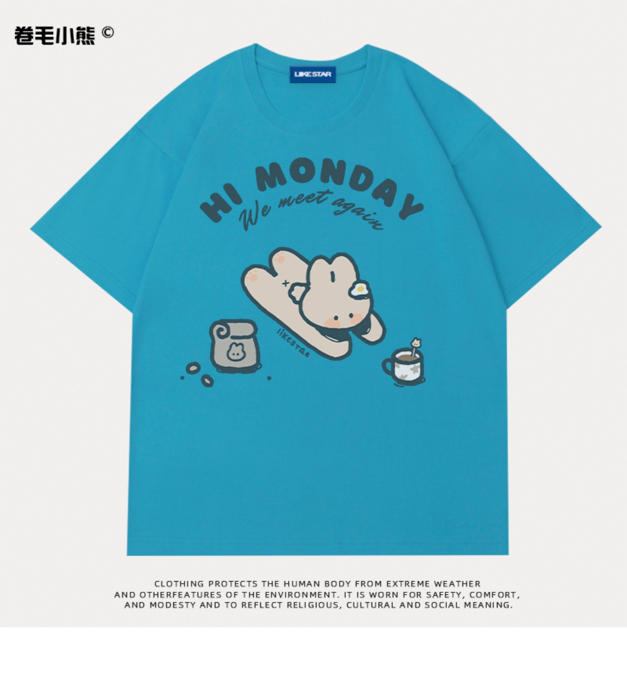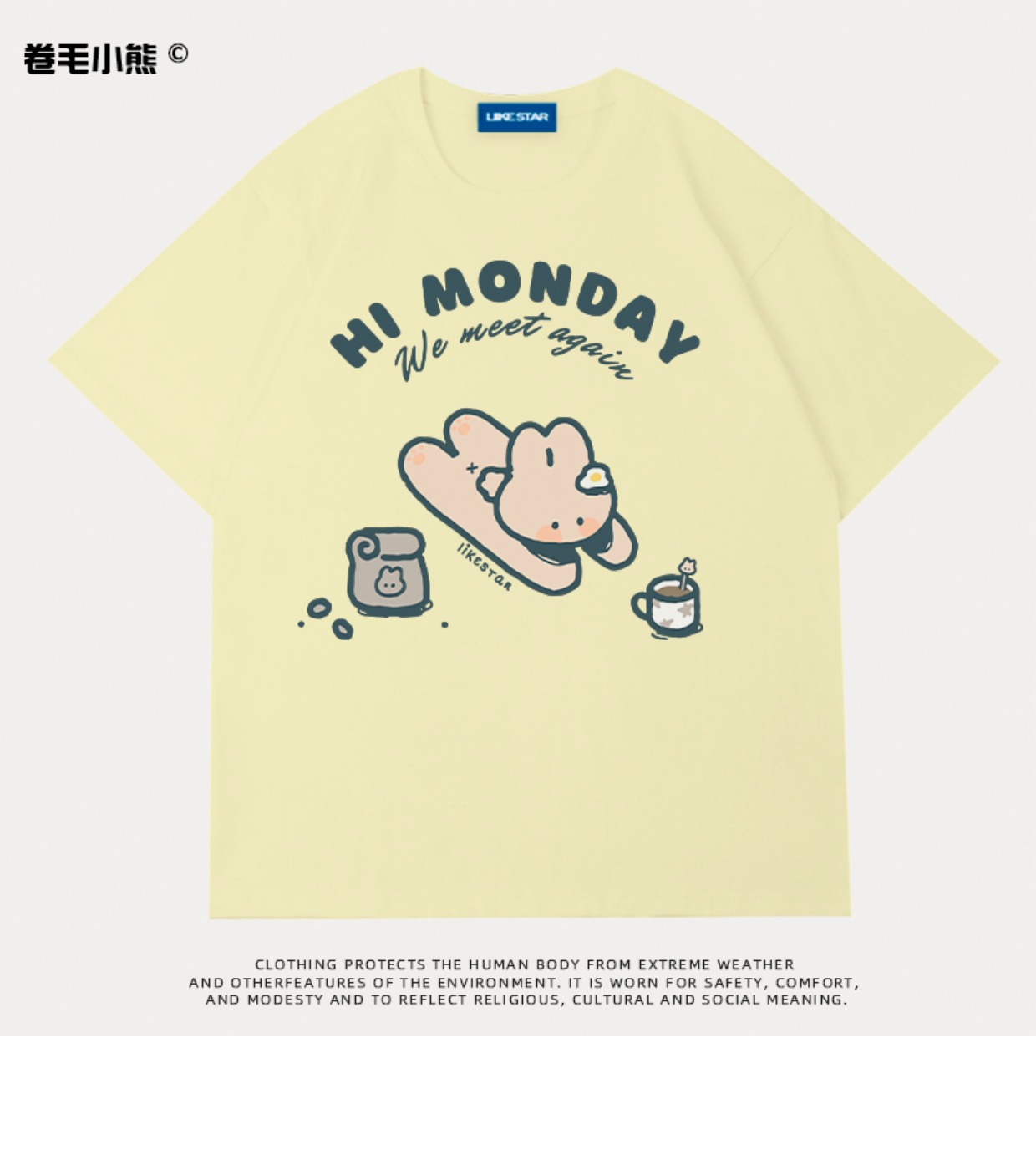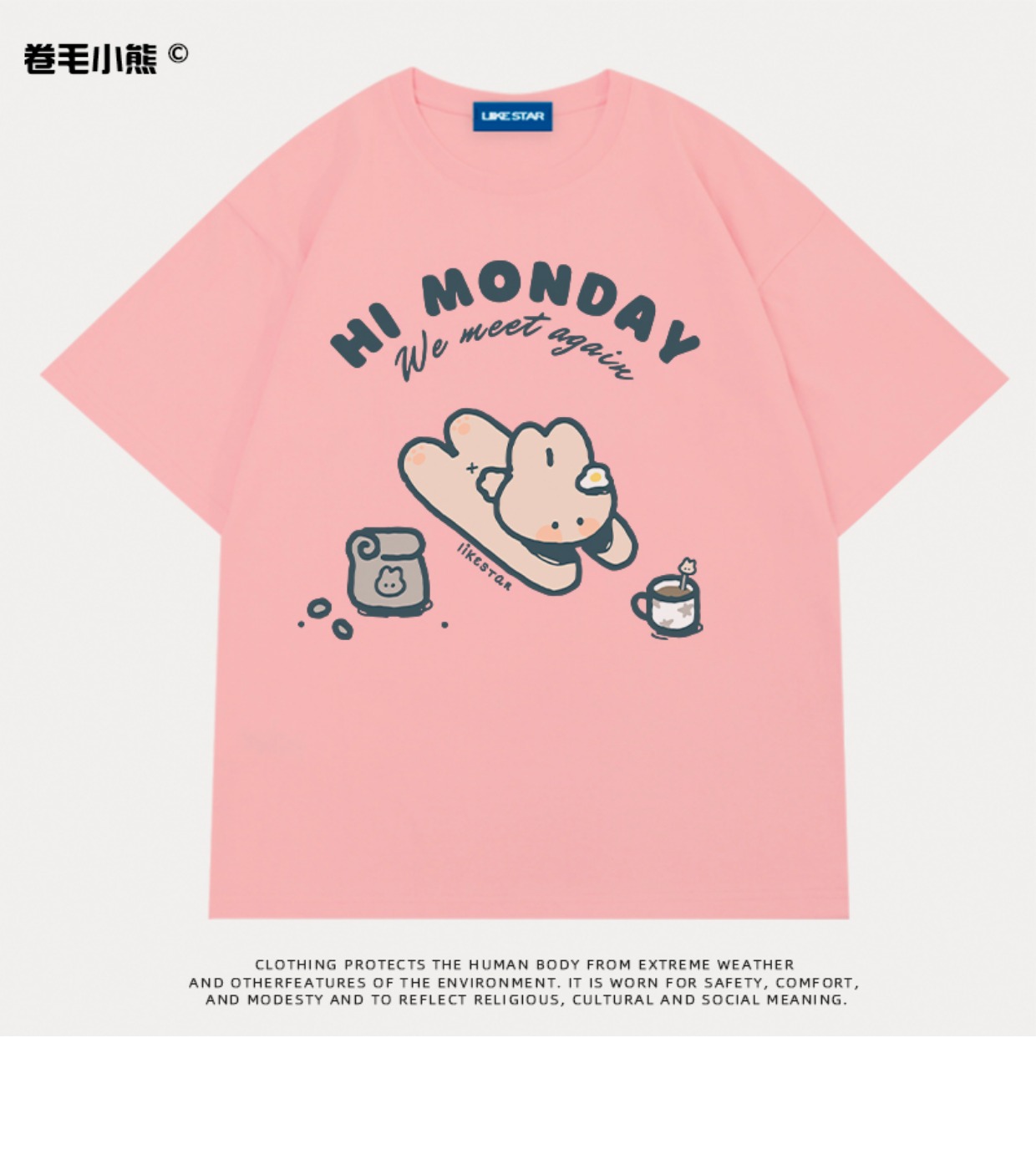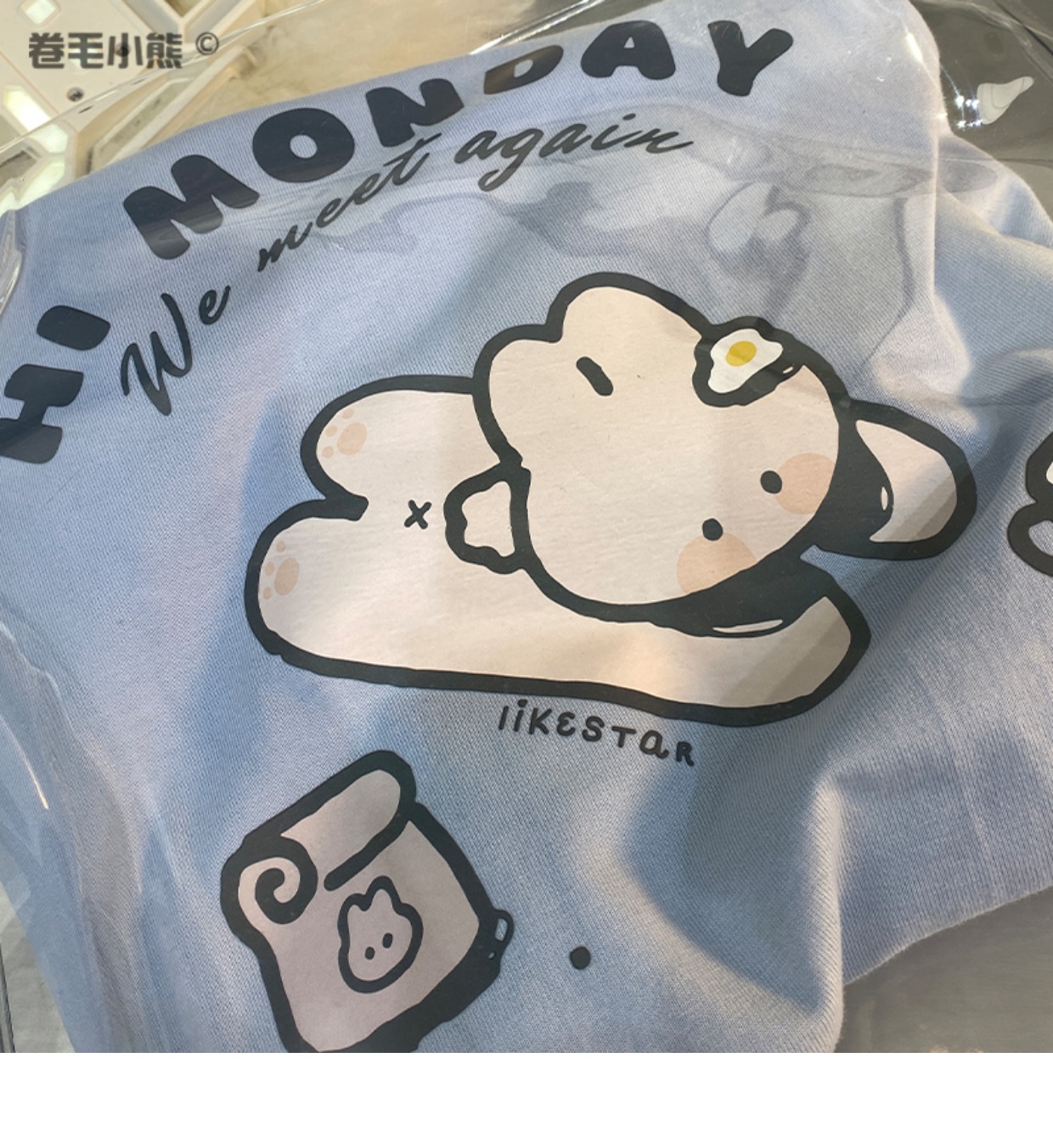 是兔兔啊~捲毛小熊重磅純棉短袖t恤女2023年新款寬鬆軟妹甜美上衣