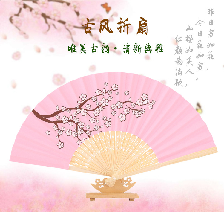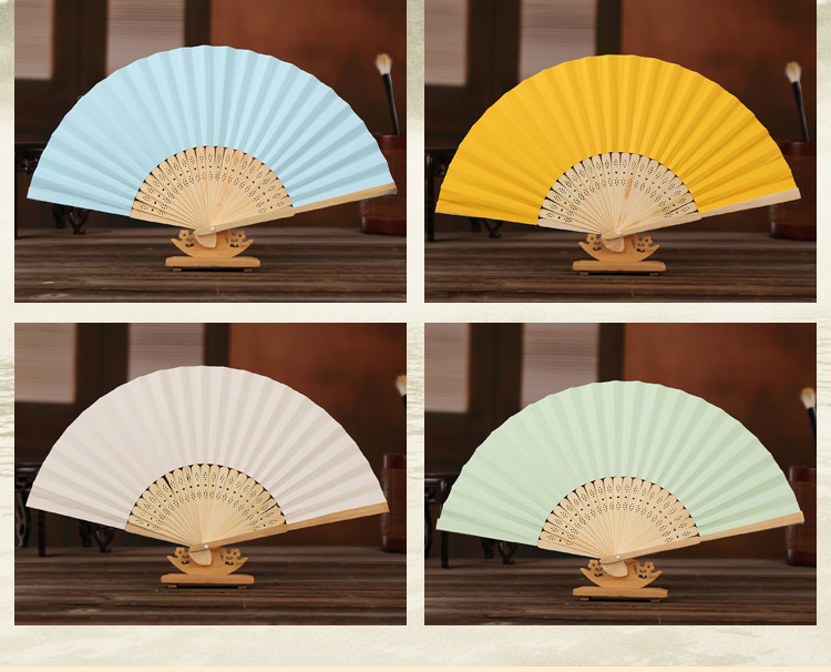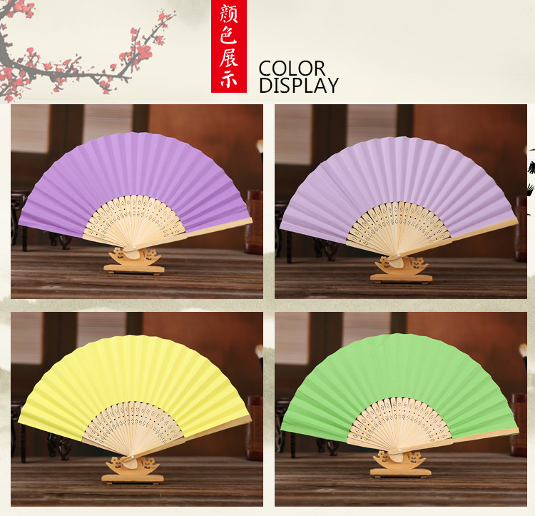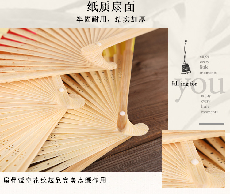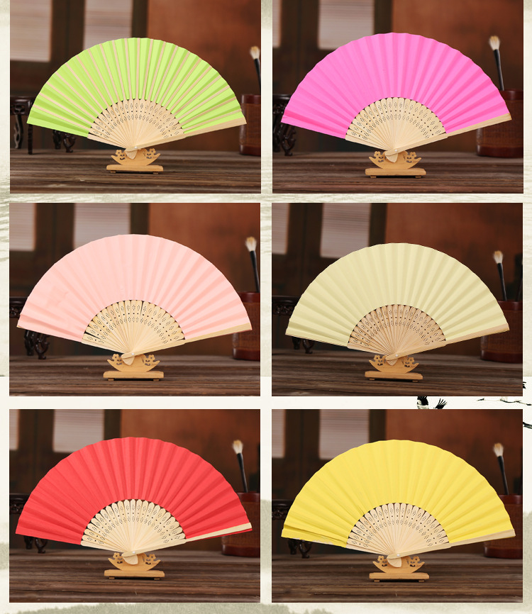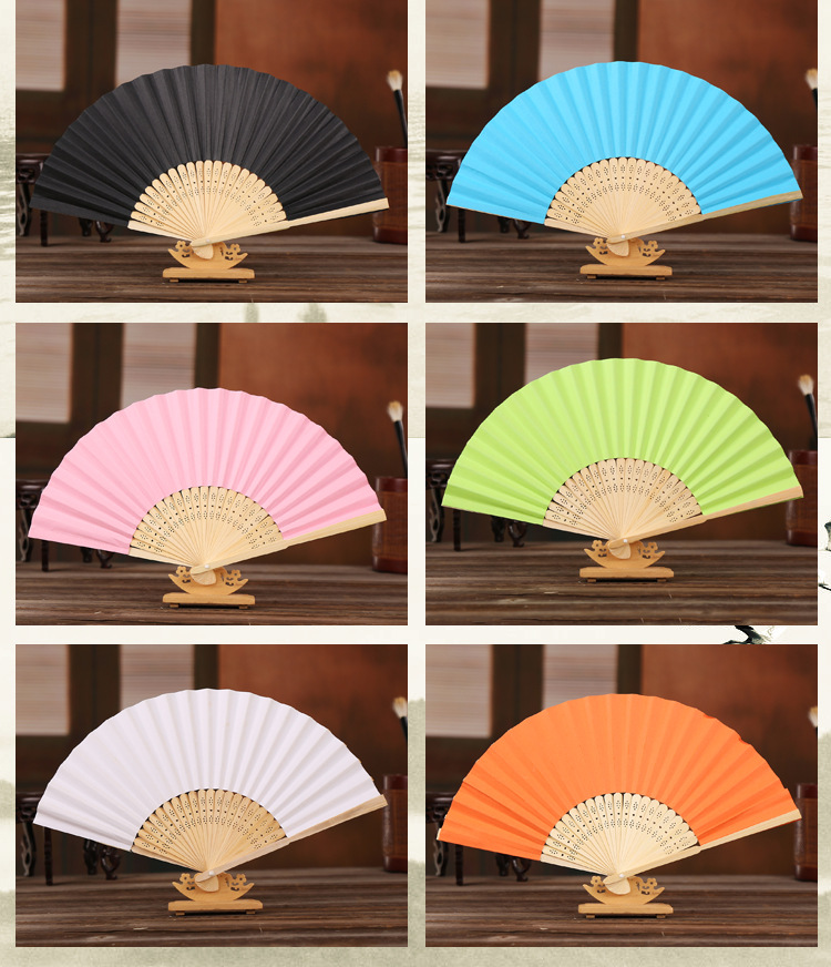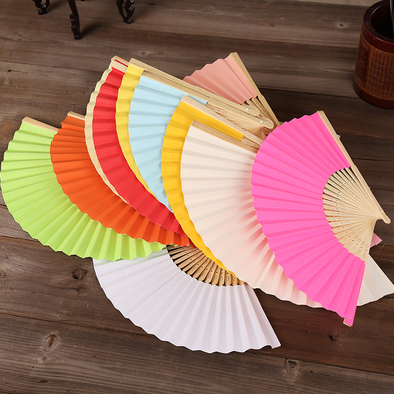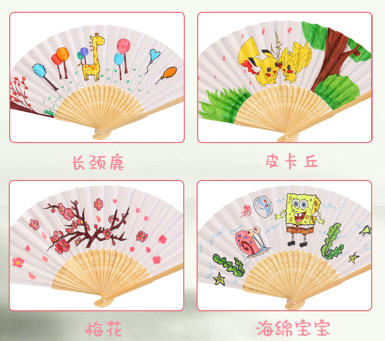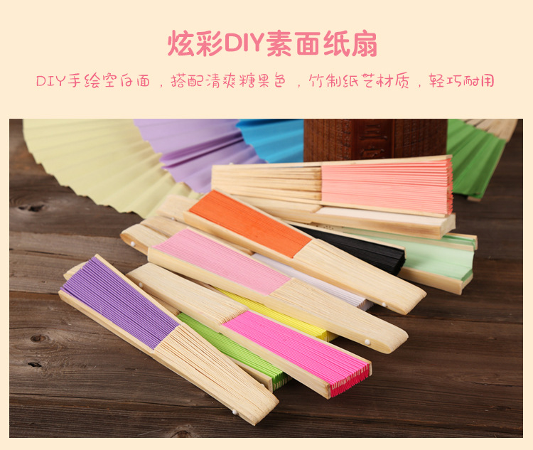 21cm空白小纸扇彩色绘画扇竹扇独立包装DIY折扇6.3寸素面印刷印刷