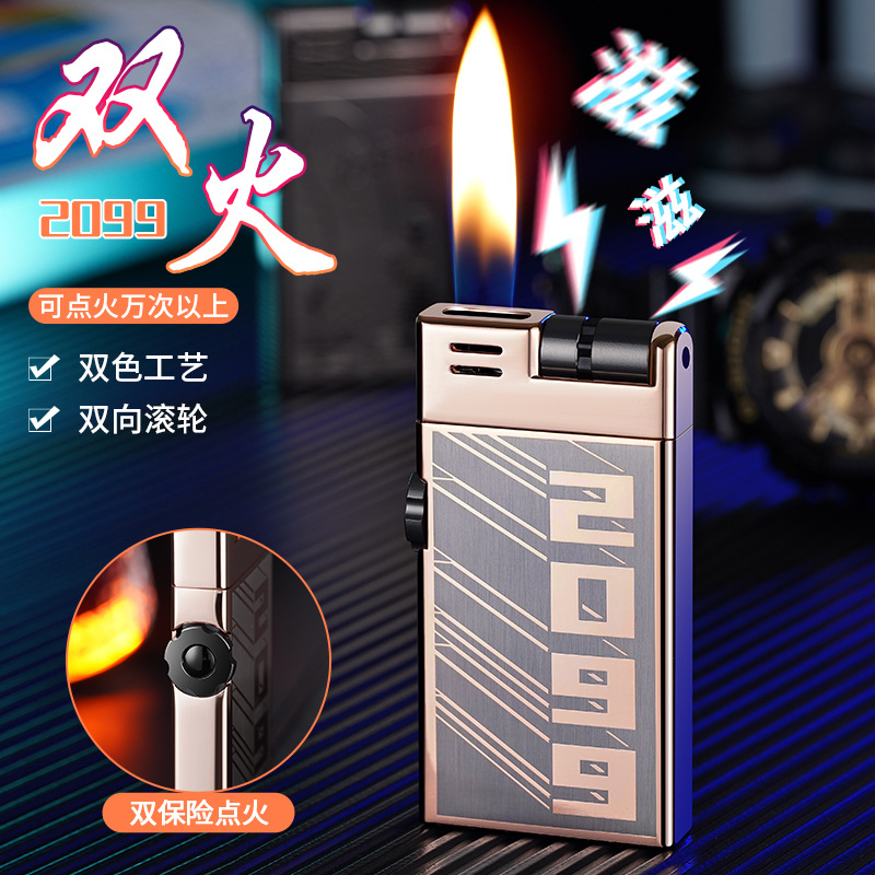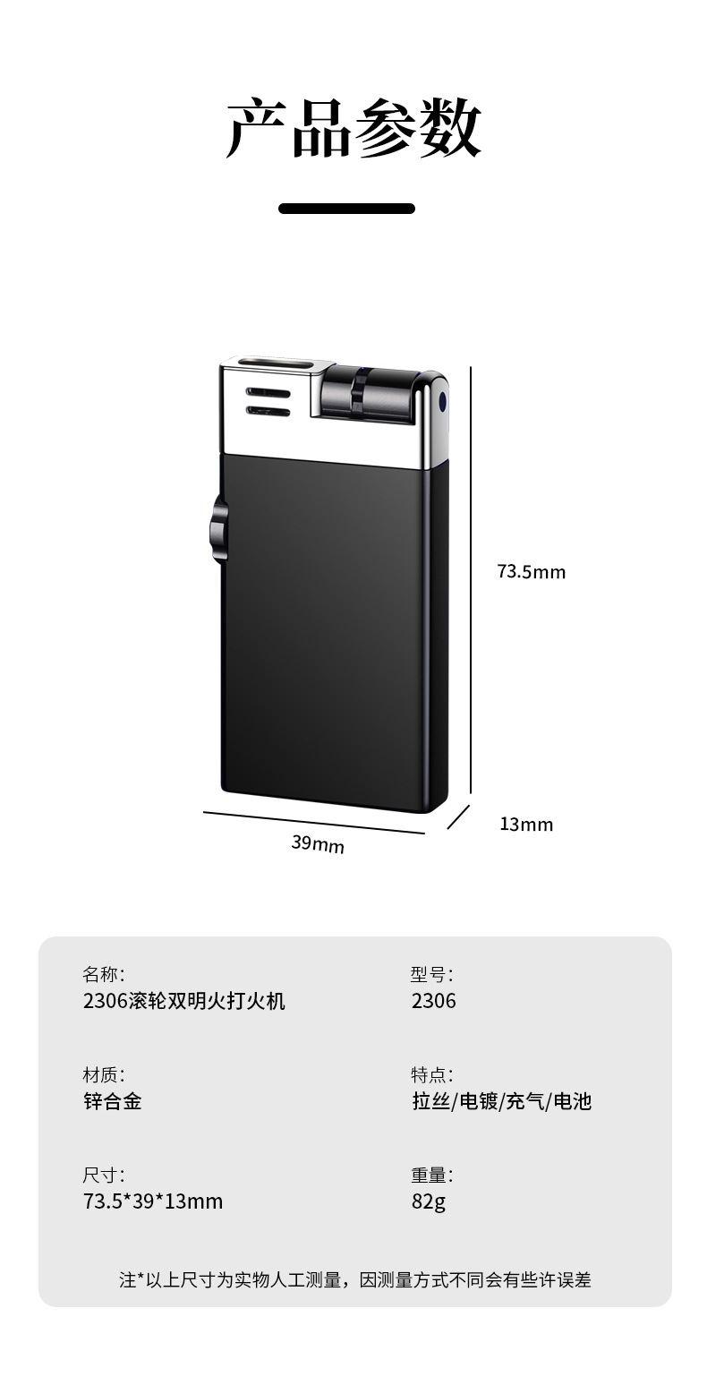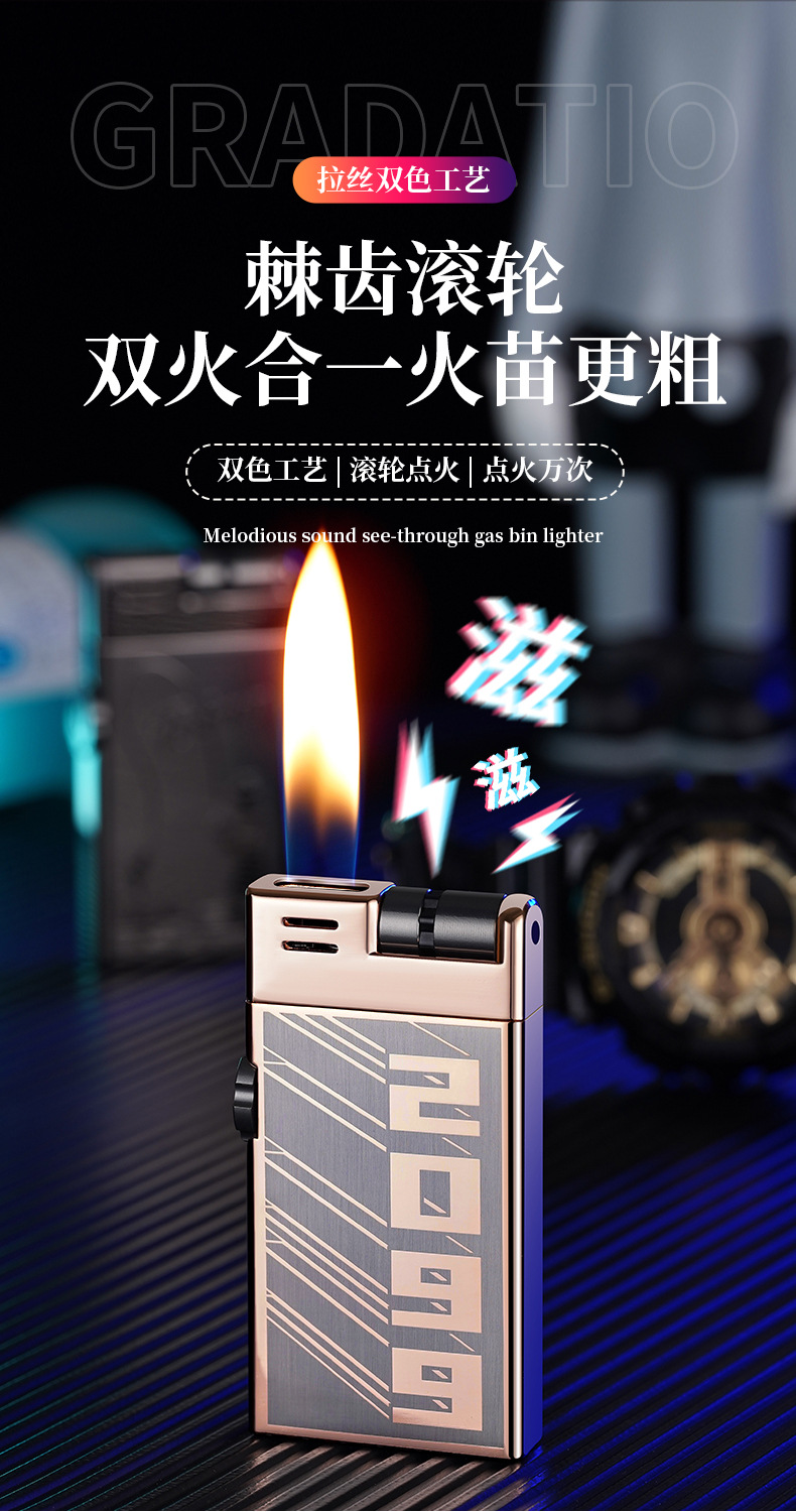 CL2306双明火创意滚轮点火充气打火机抖音快手爆款打火机货源