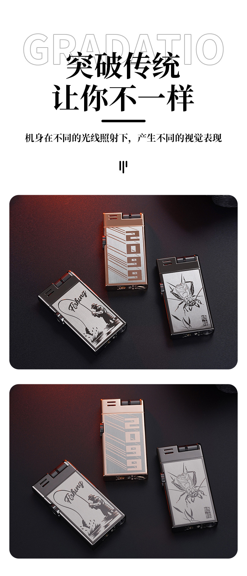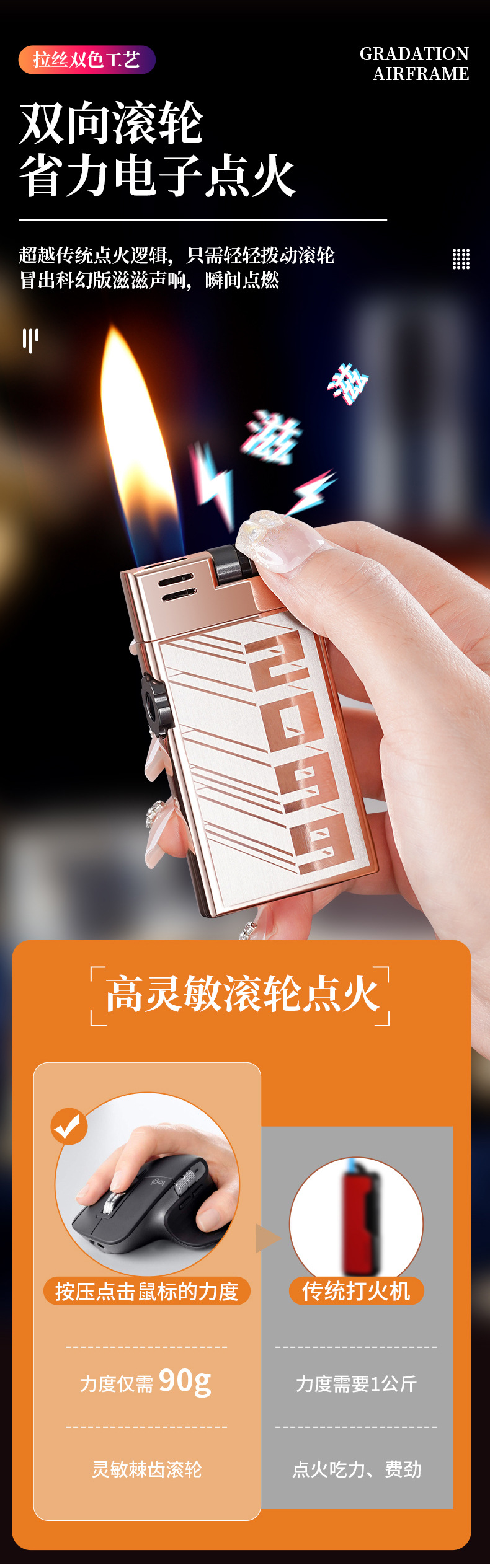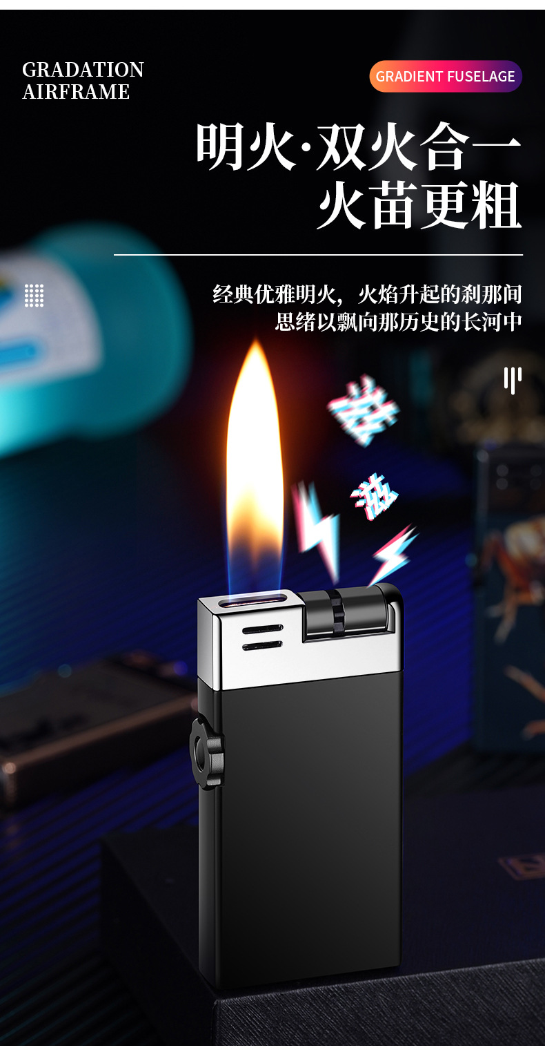 CL2306双明火创意滚轮点火充气打火机抖音快手爆款打火机货源