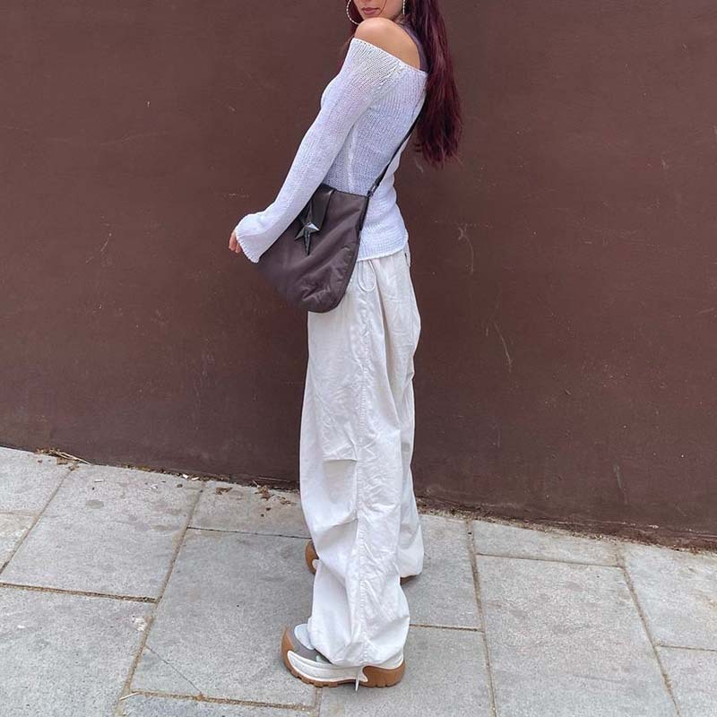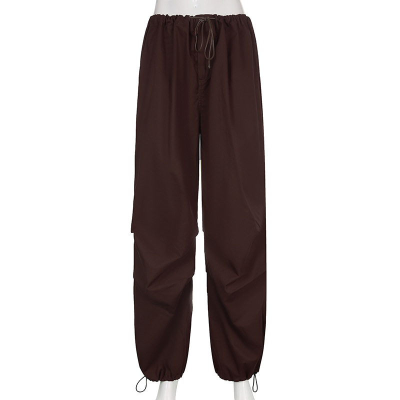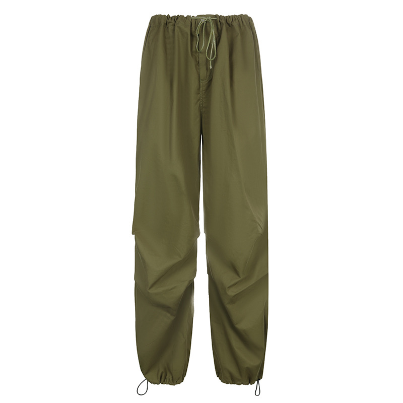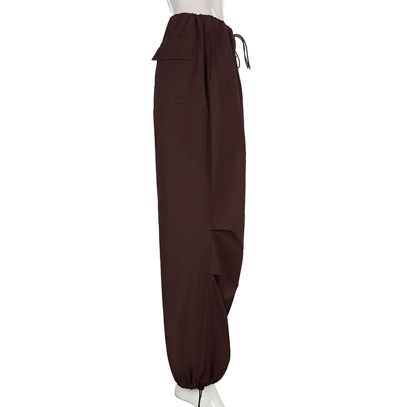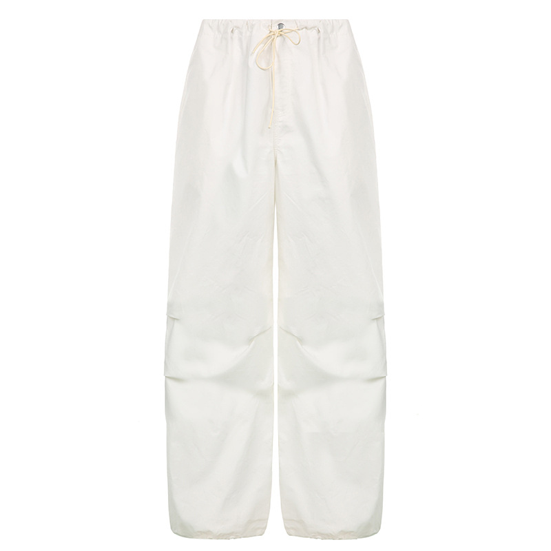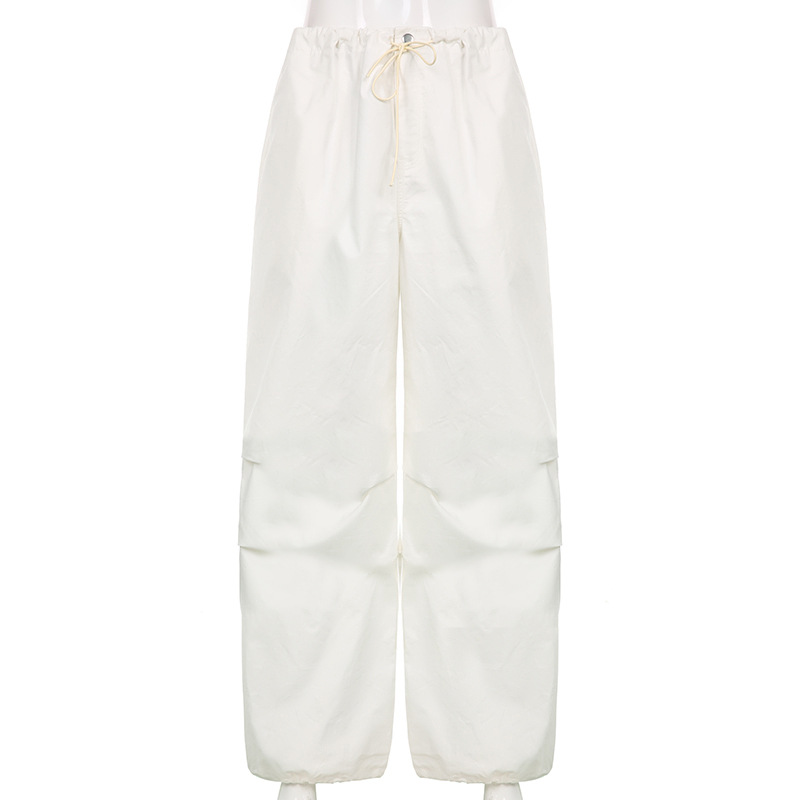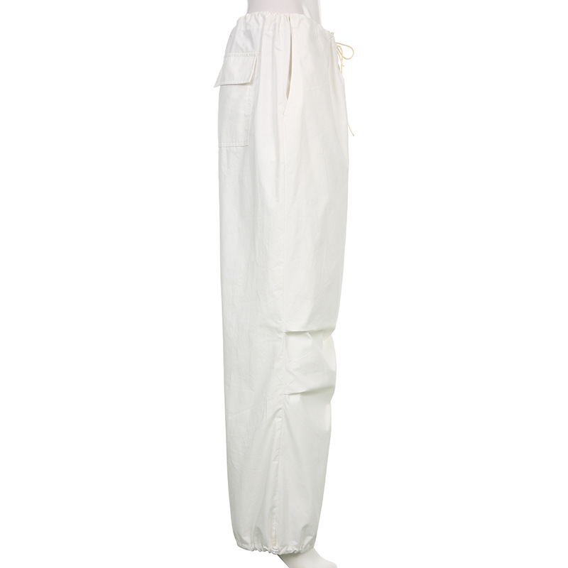 跨境外贸2022夏季新款欧美辣妹工装松紧带抽绳时尚低腰阔腿休闲裤