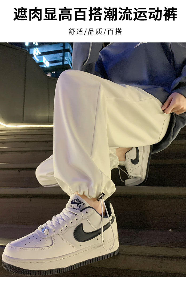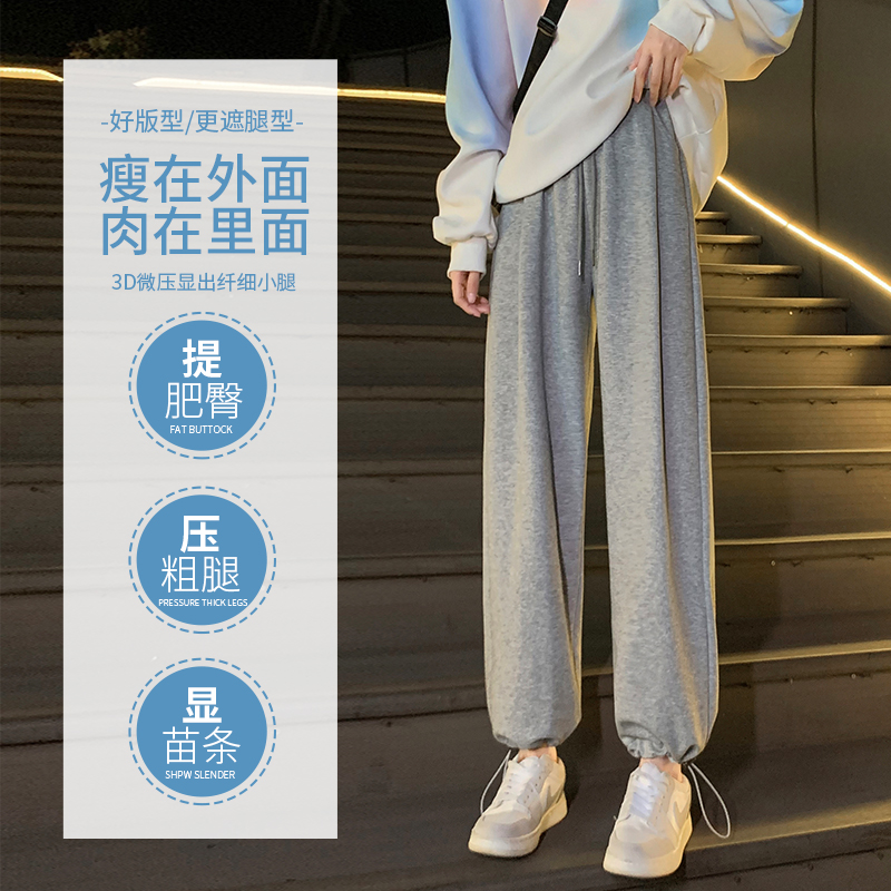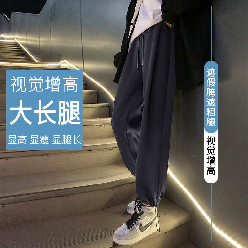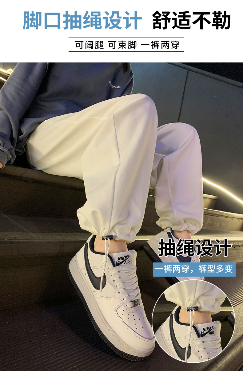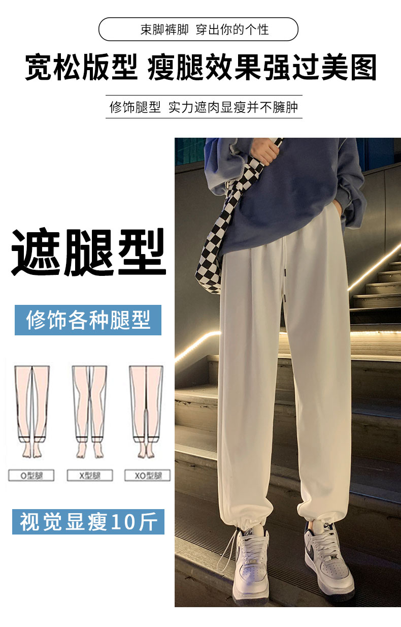 白色運動褲女春秋小個子抽繩燈籠褲冬季加絨寬鬆束腳衛褲2023新款