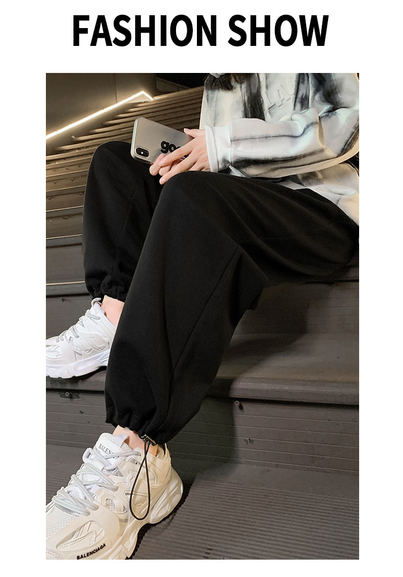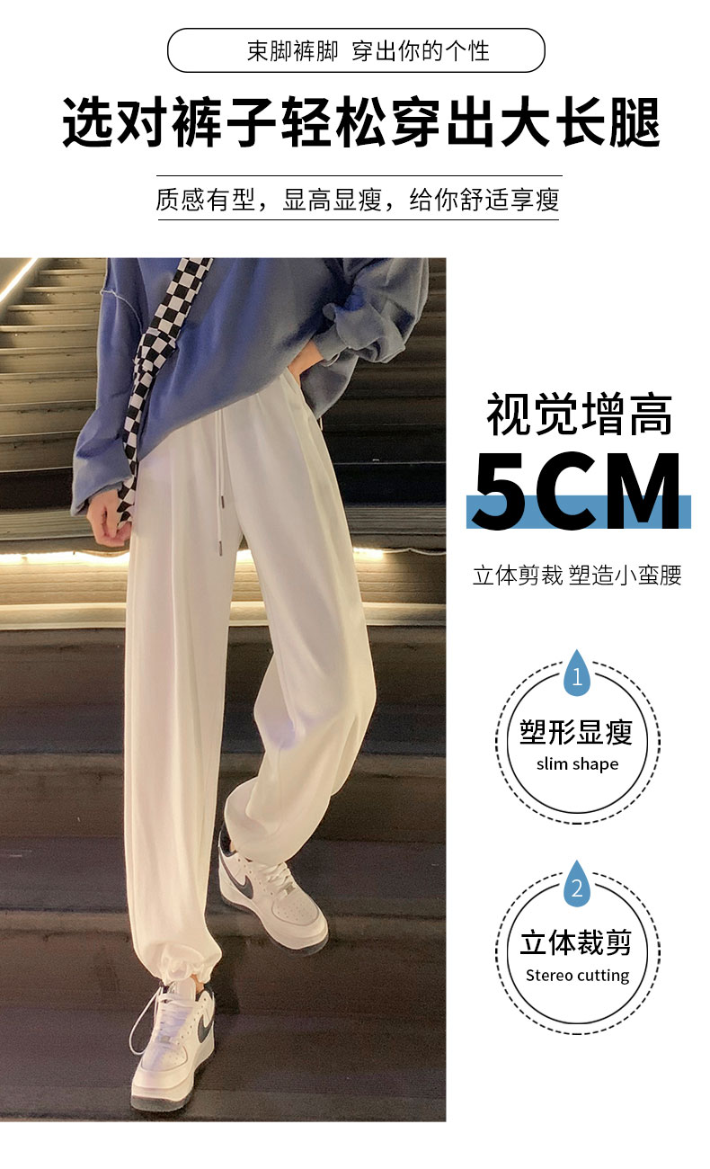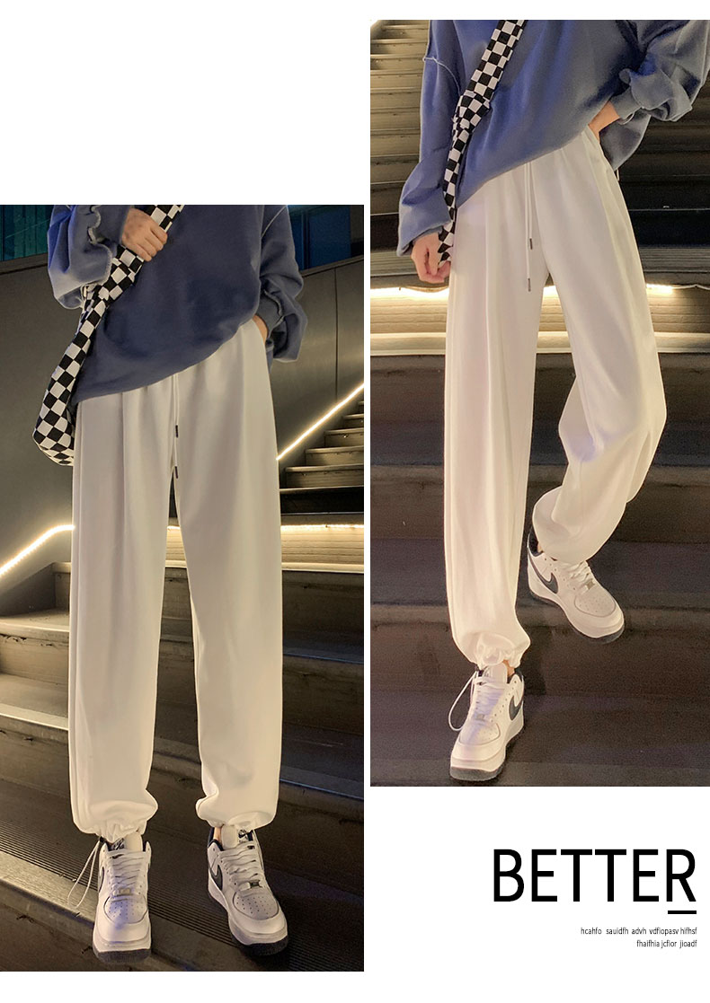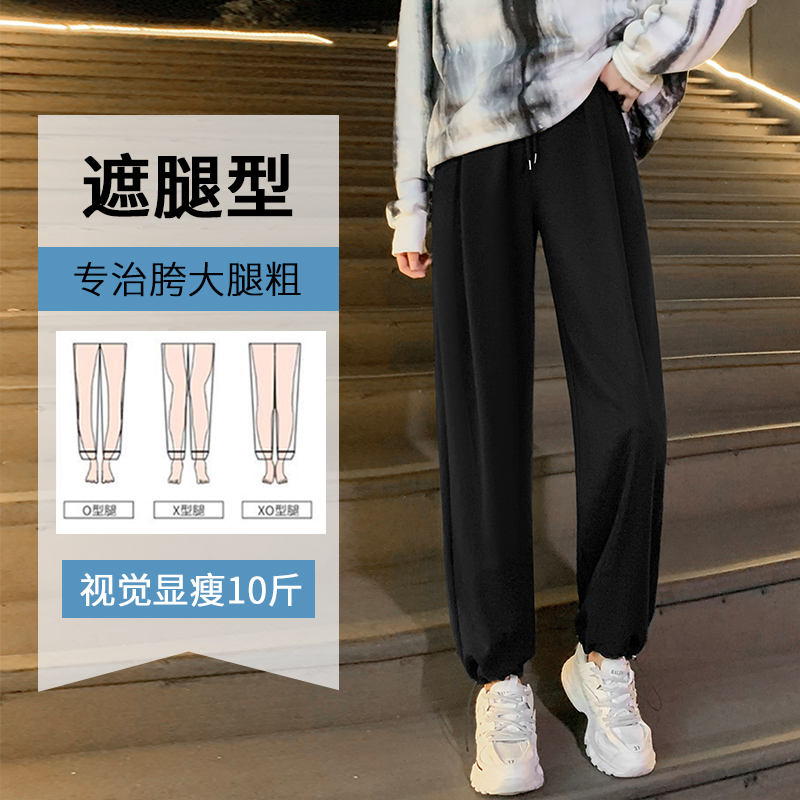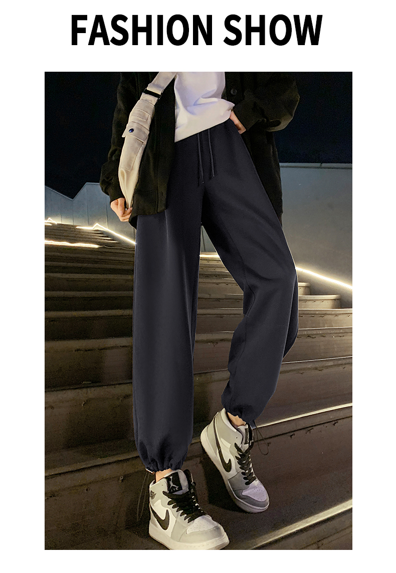 白色運動褲女春秋小個子抽繩燈籠褲冬季加絨寬鬆束腳衛褲2023新款