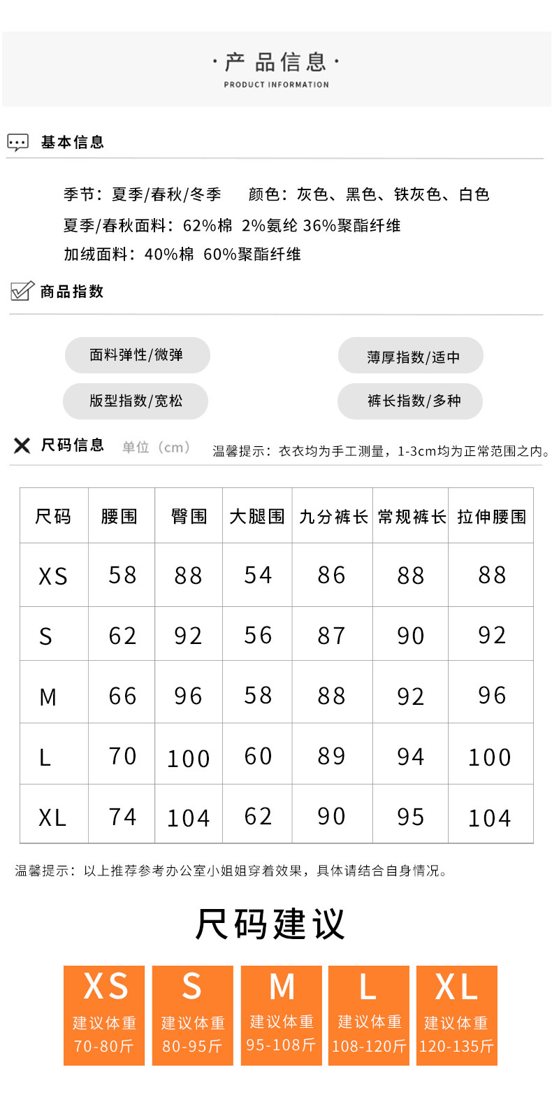 顏色分類 黑色夏季九分 黑色夏季常規 白色夏季九分 白色夏季常規 灰色夏季九分 灰色夏季常規 白色春秋九分 白色春秋常規 黑色春秋九分 黑色春秋常規 灰色春秋九分 灰色春秋常規 鐵灰色春秋九分 鐵灰色春秋常規 黑色加絨九分 黑色加絨常規 灰色加絨九分 灰色加絨常規 鐵灰色加絨九分 鐵灰色加絨常規