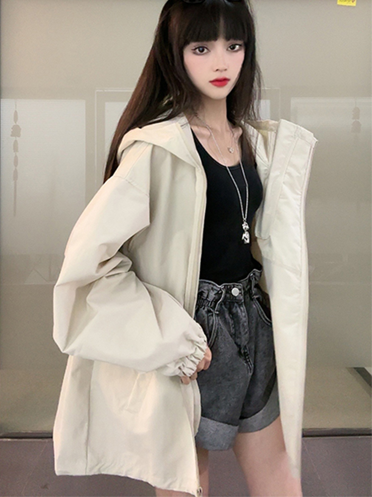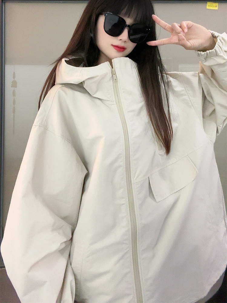 衝鋒衣外套女春秋新款2023年爆款歐貨休閒運動美式連帽小個子上衣