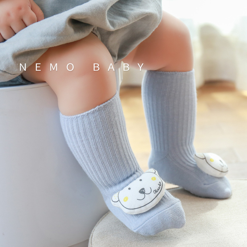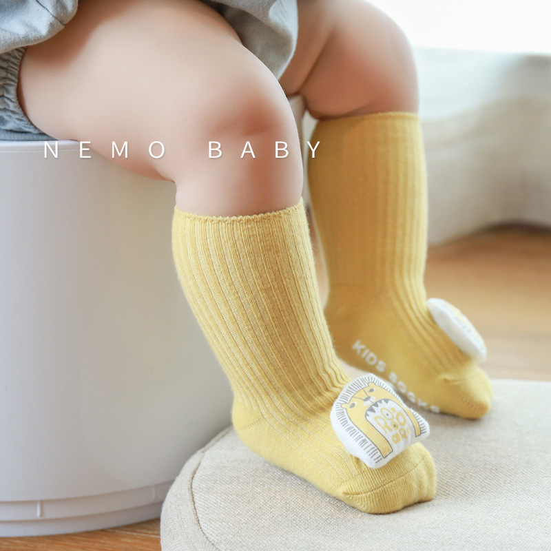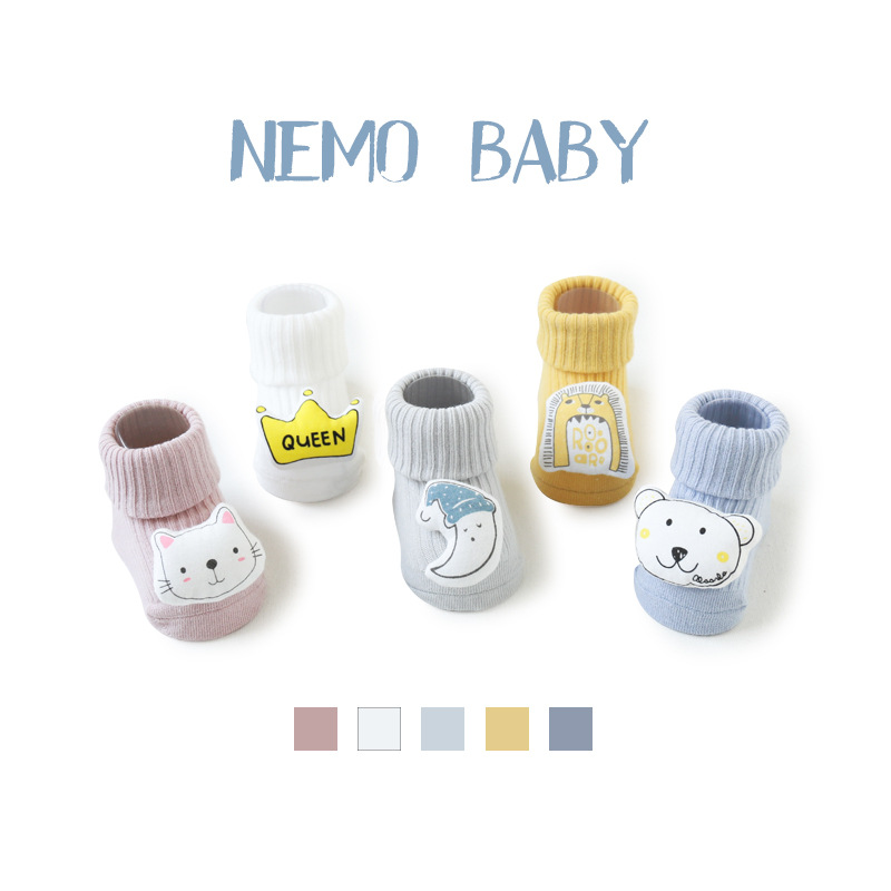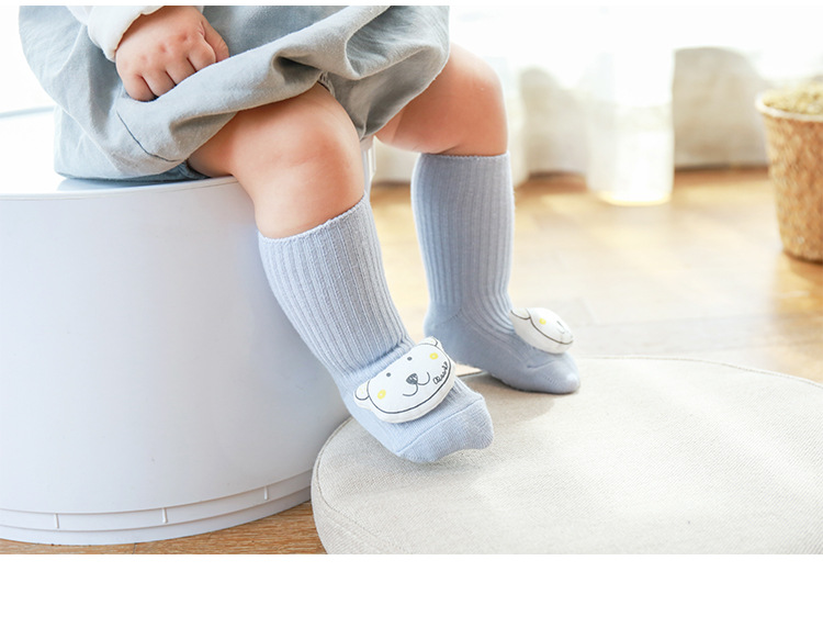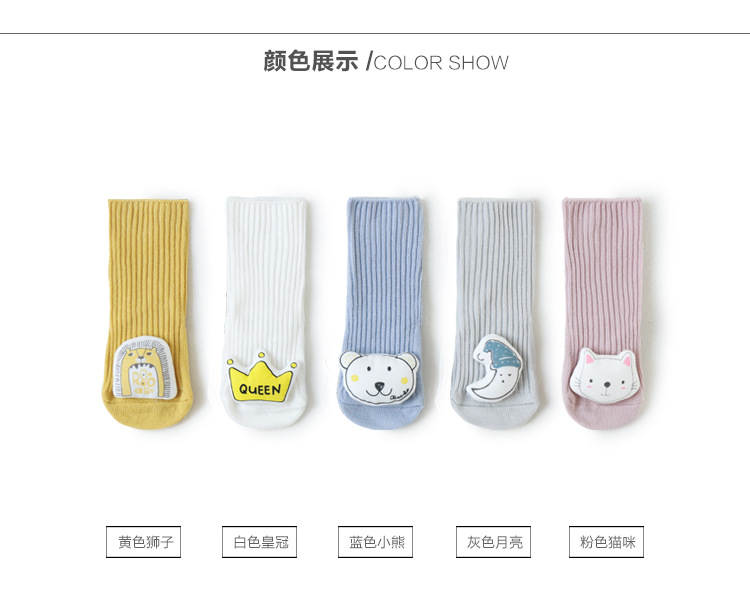 新生儿宝宝袜子春秋无骨松口婴儿袜子卡通公仔防滑点胶儿童学步袜