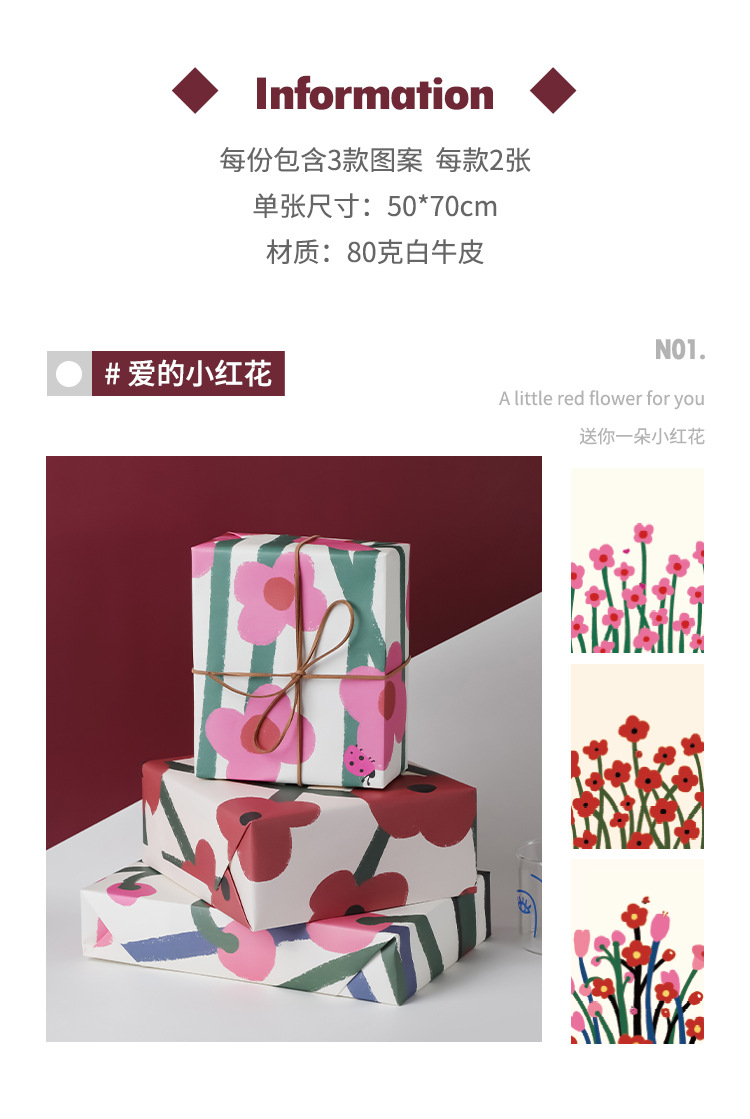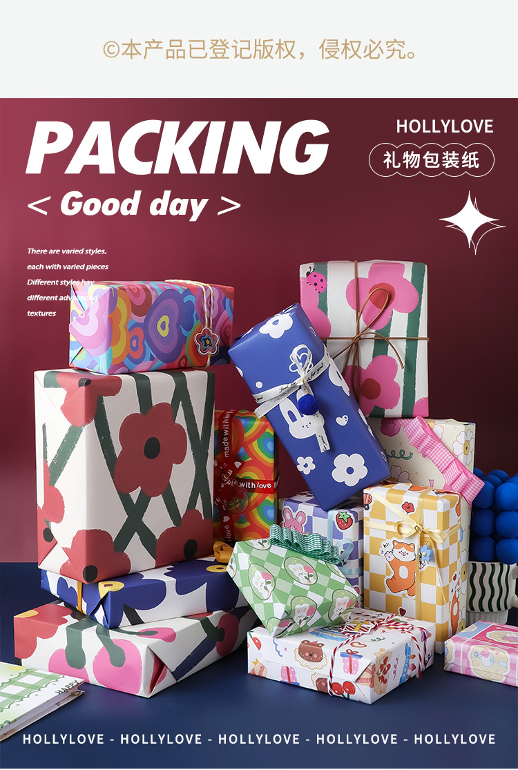贝祥特价6张包装纸礼物礼品纸包书皮纸ins风生日情人节包装花束