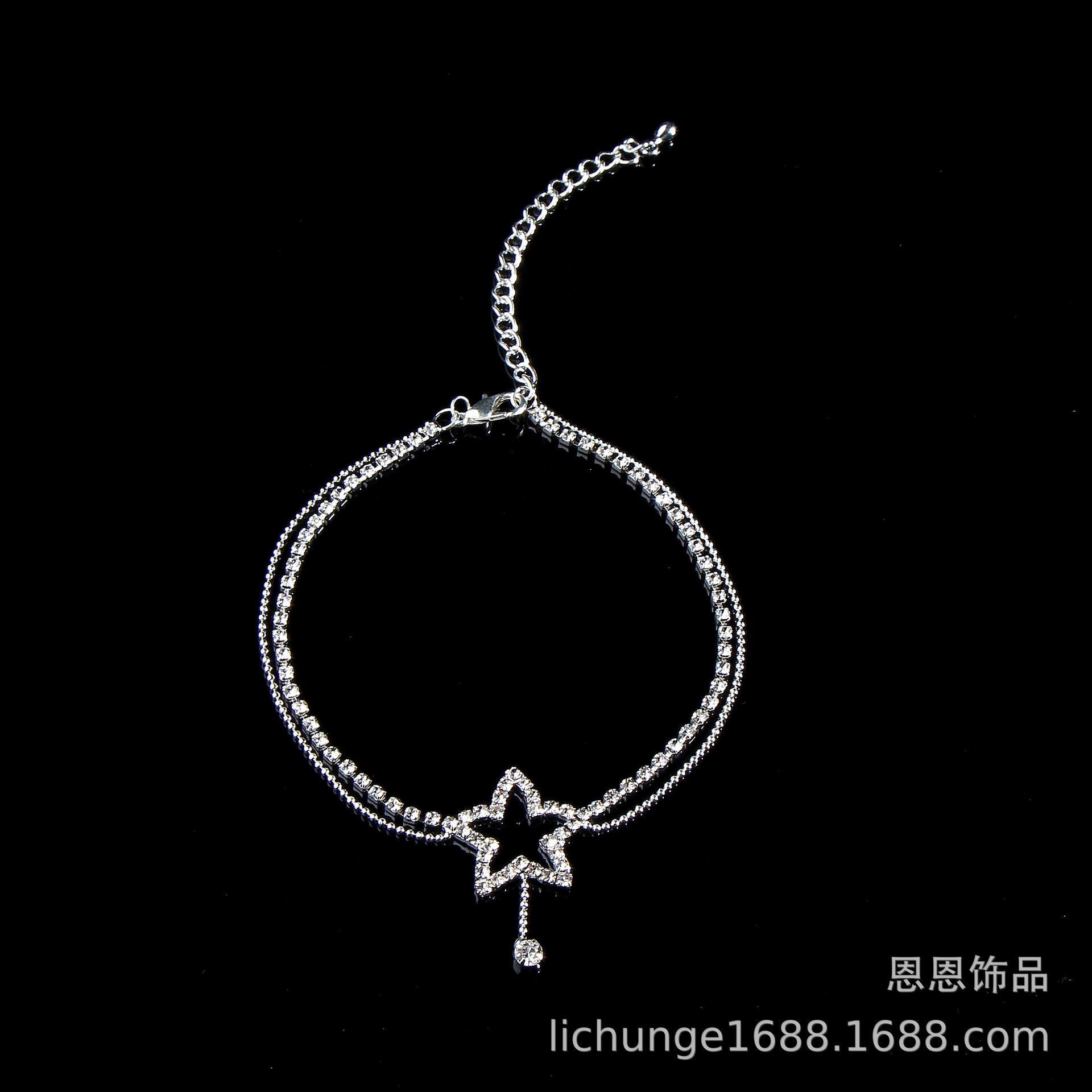 欧美时尚个性五角星爱心水钻脚链 女式i闪亮性感脚饰珠宝首饰