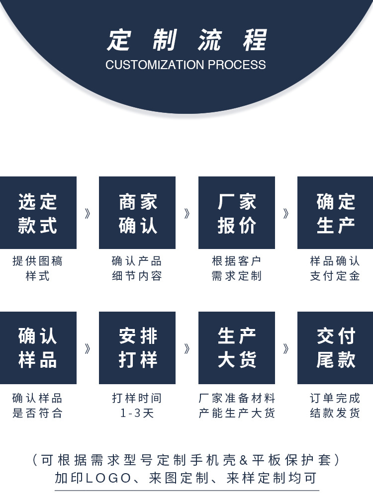 加工定制(OEM/ODM)可根据客户需求定制各种手机型号&平板保护套、