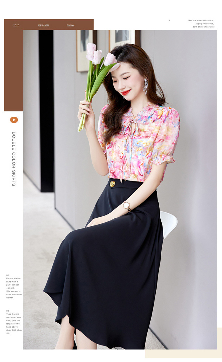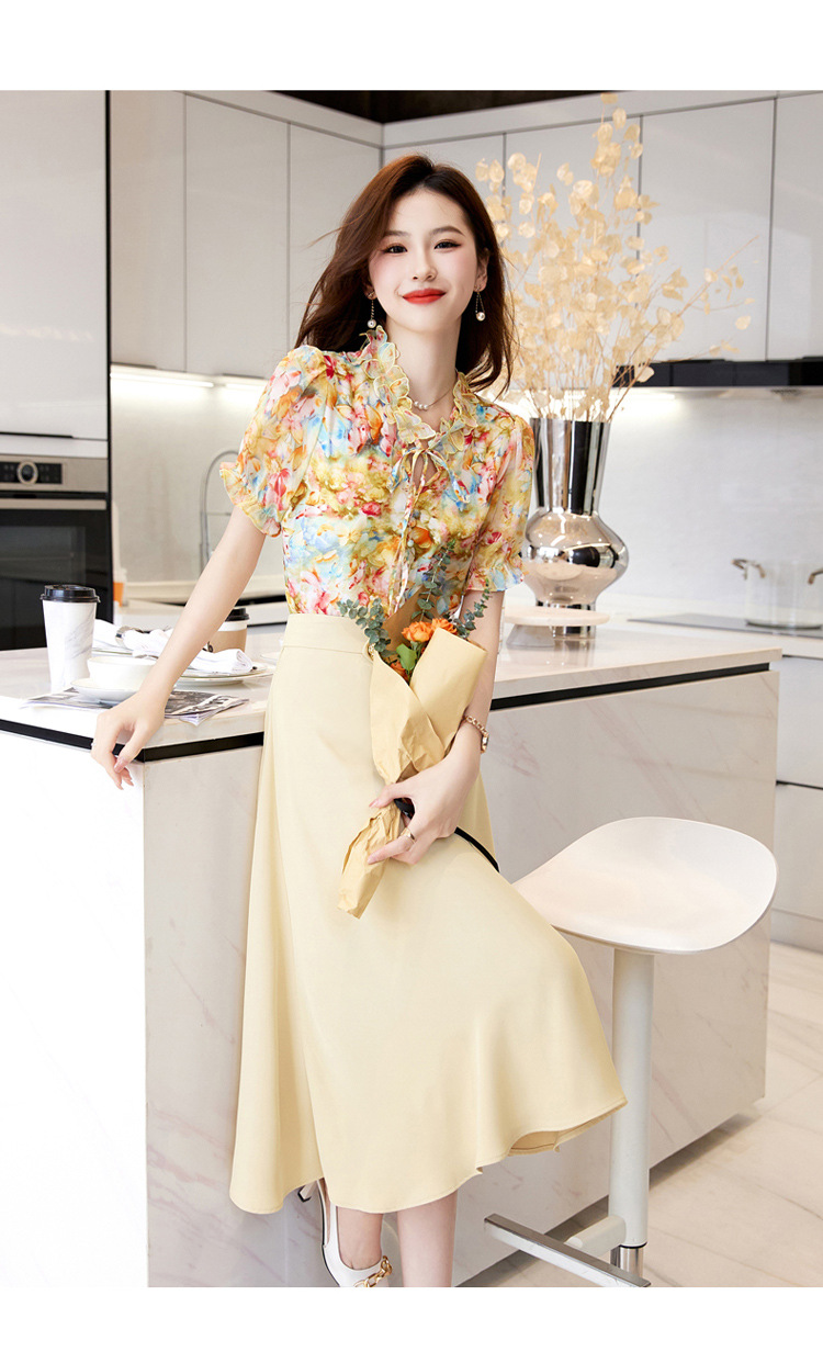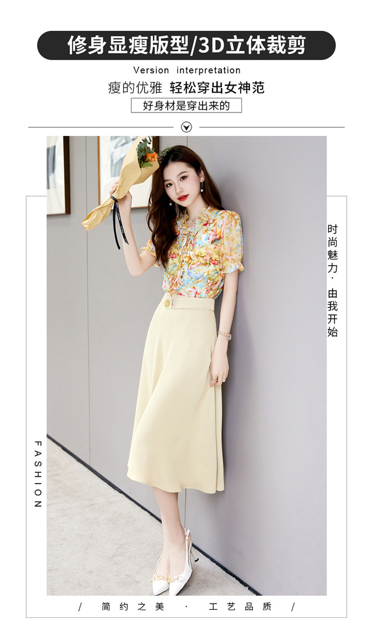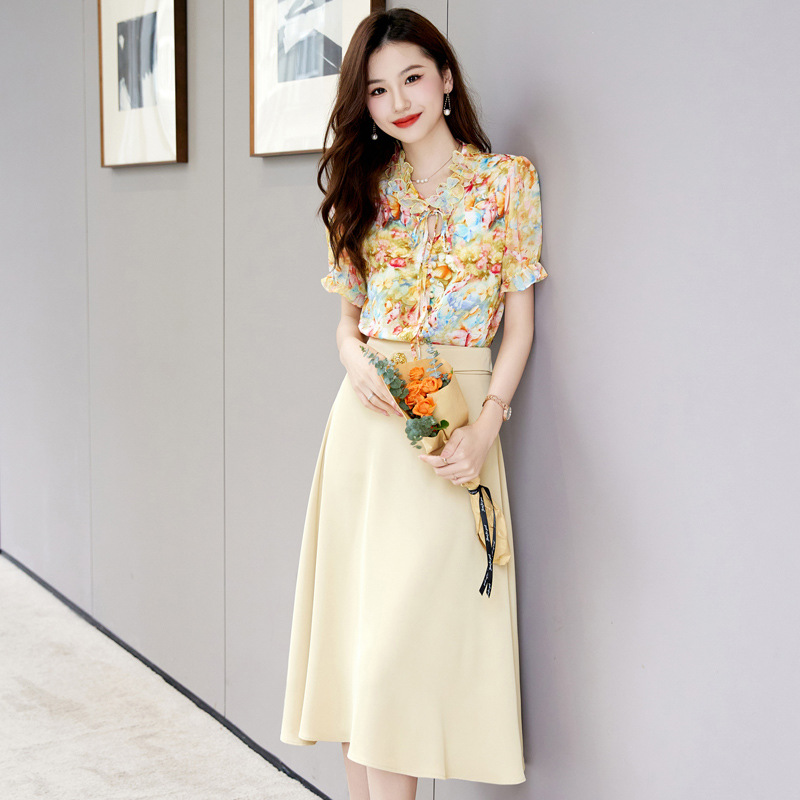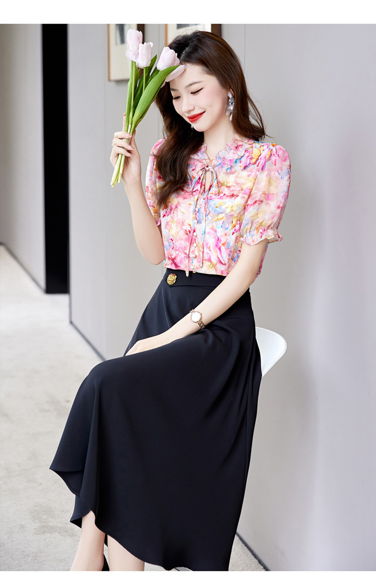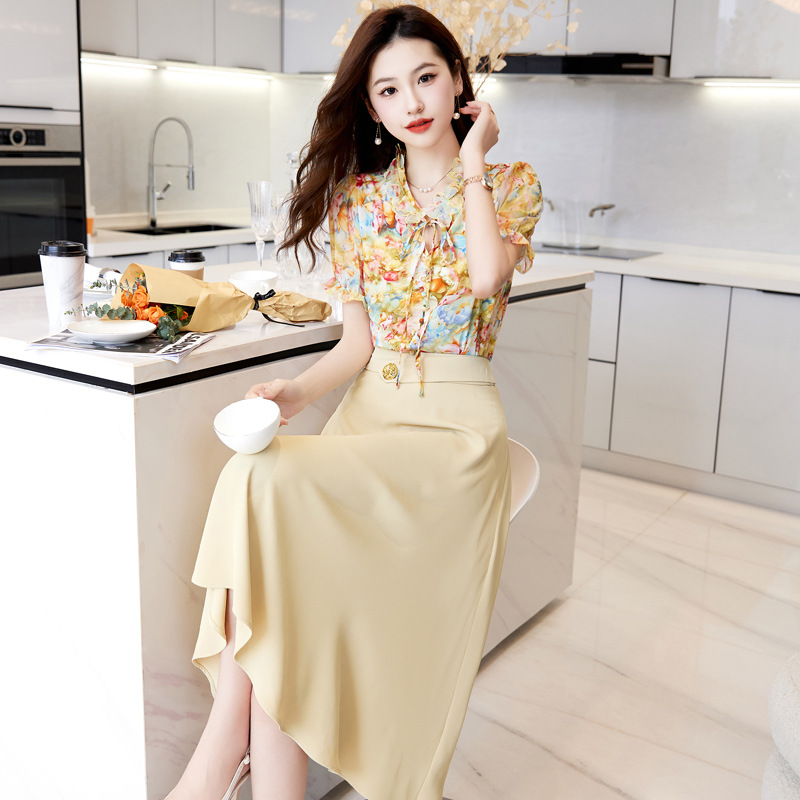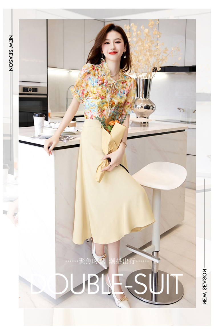 洋气套装裙两件套设计感2023半身裙减龄花边系带碎花衬衫上衣套装