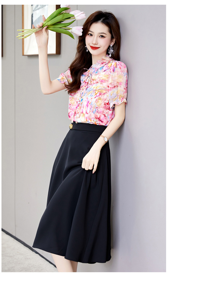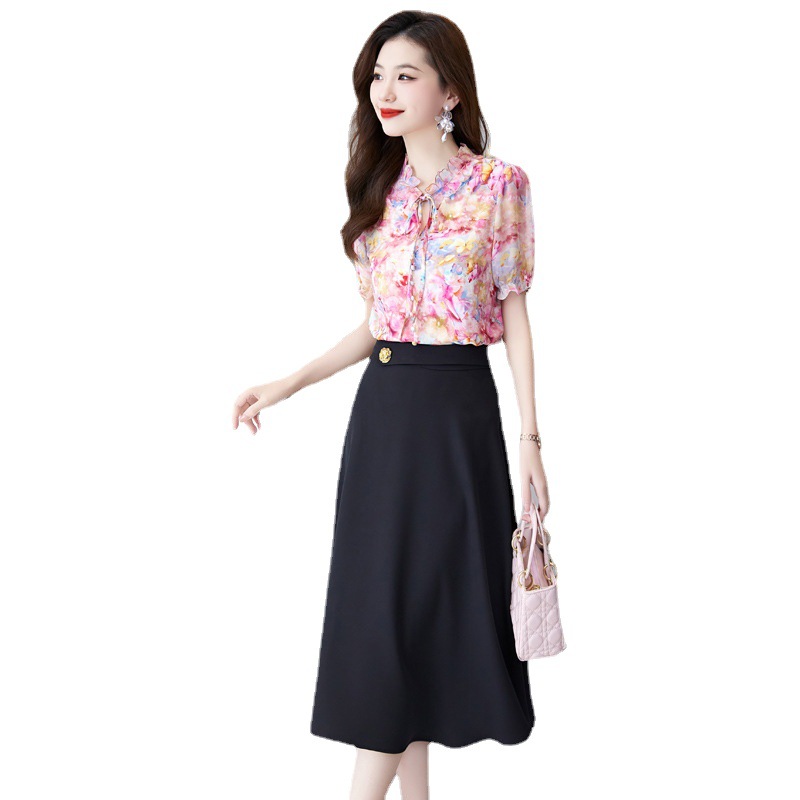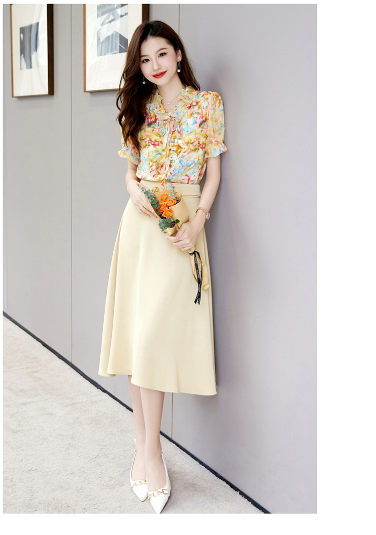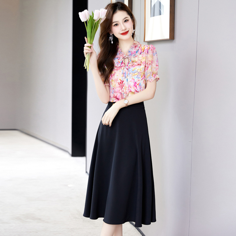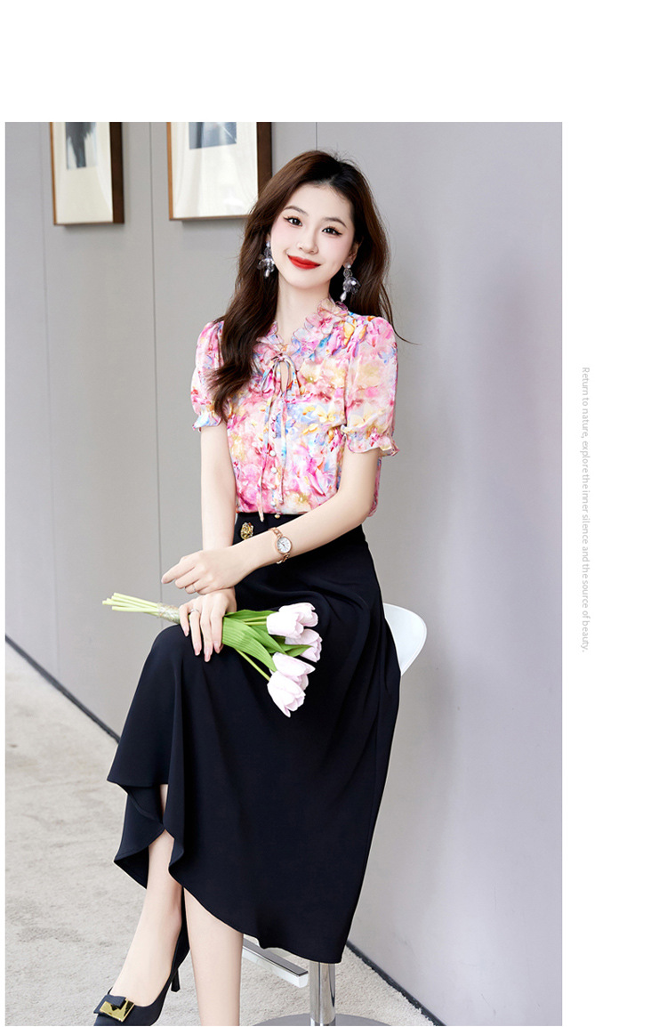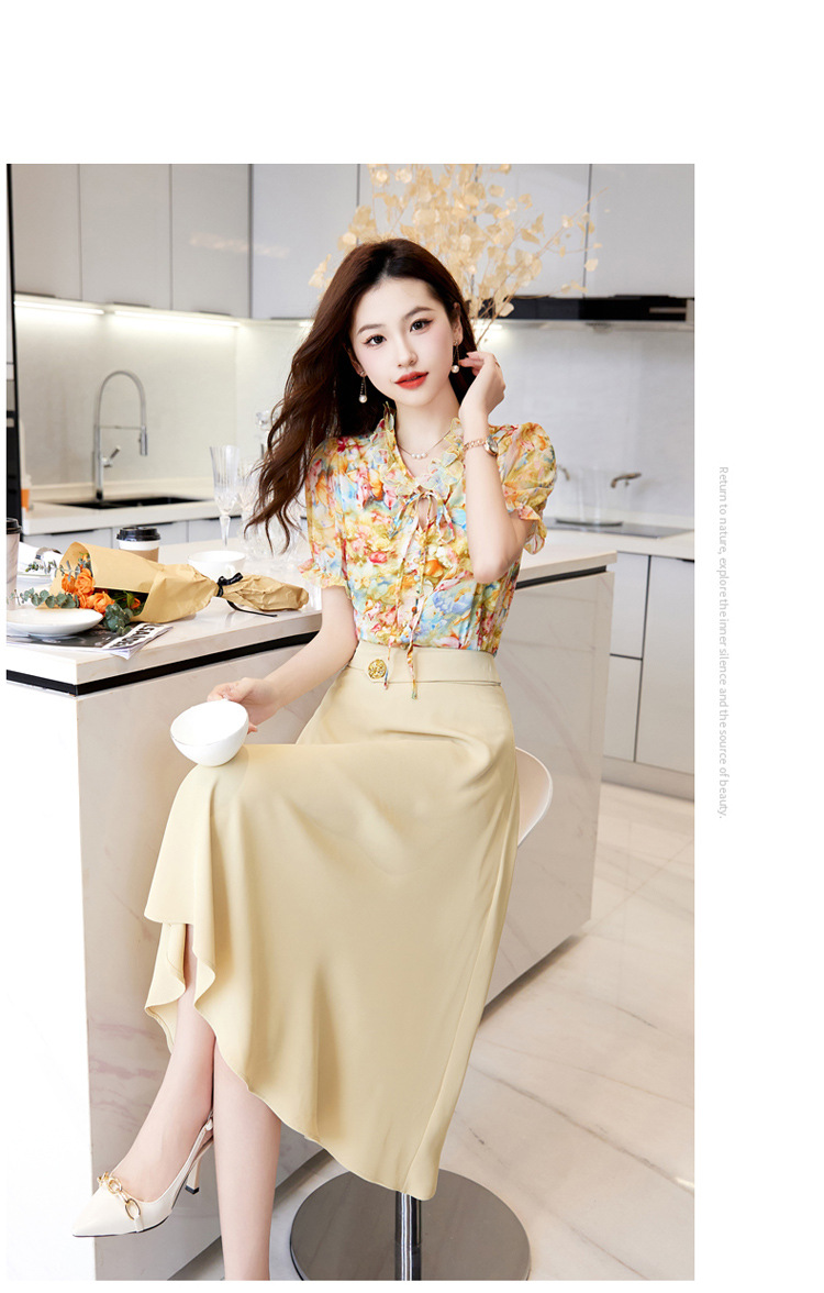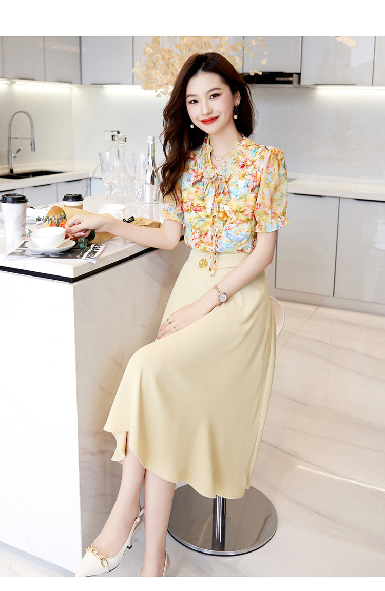 洋气套装裙两件套设计感2023半身裙减龄花边系带碎花衬衫上衣套装