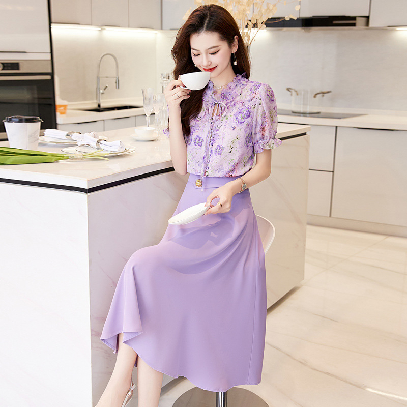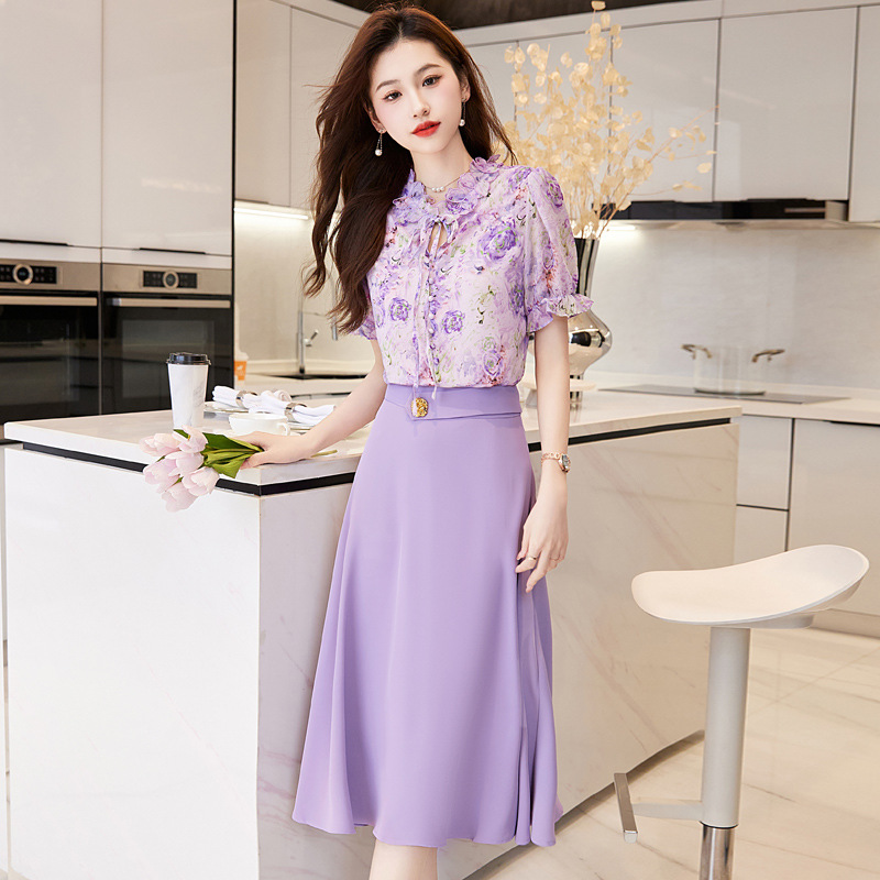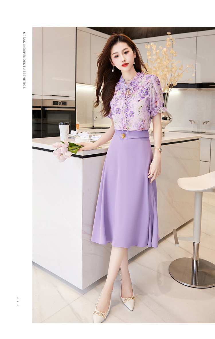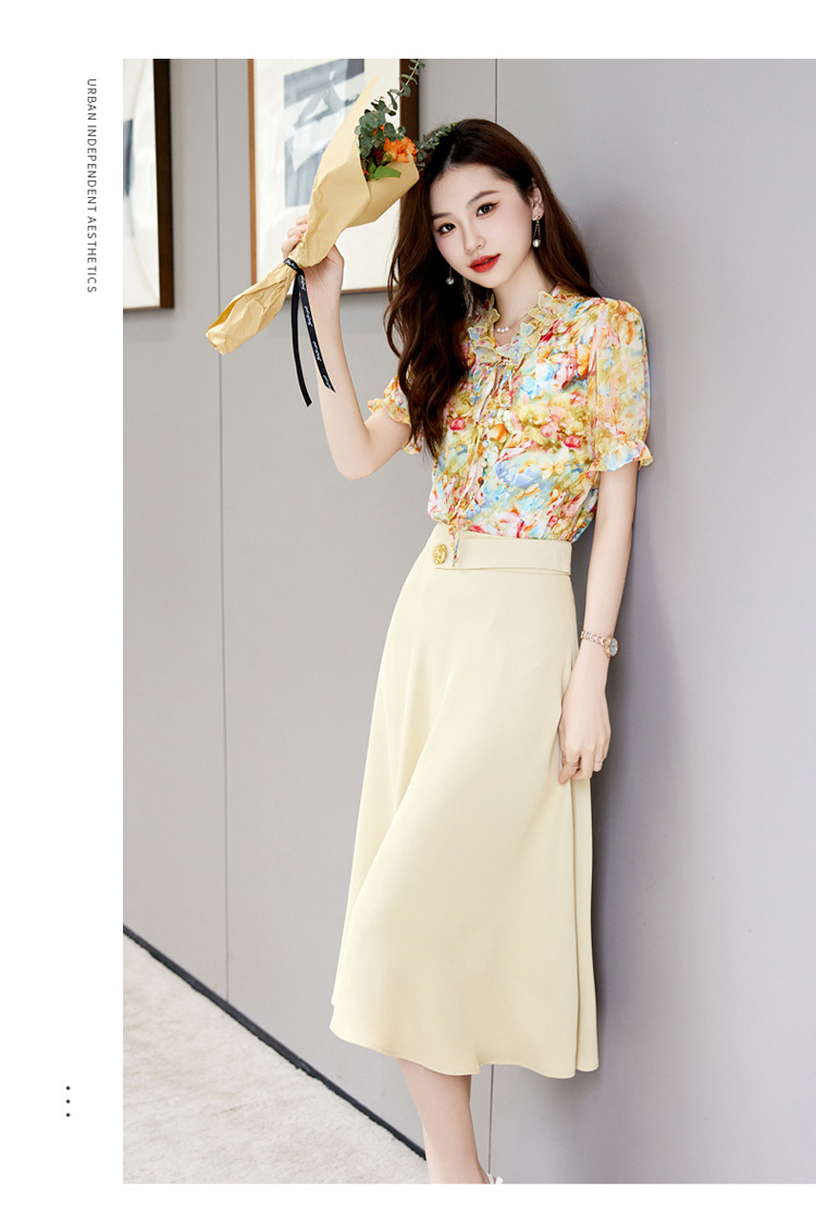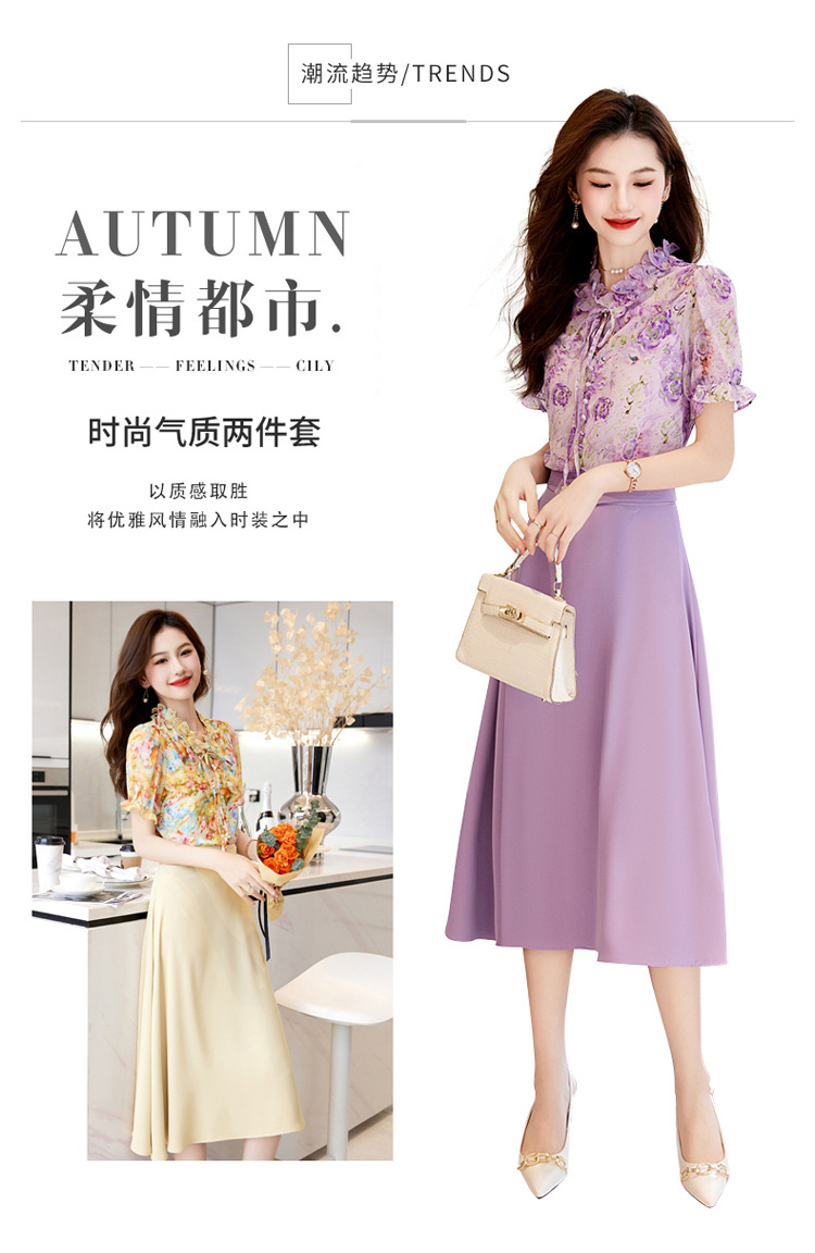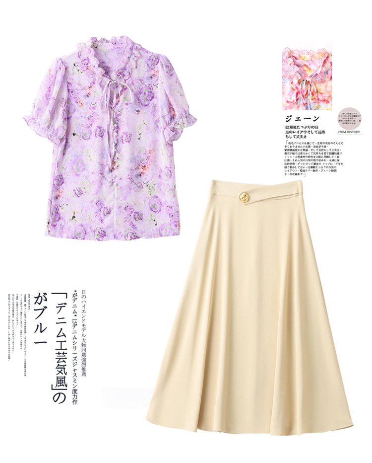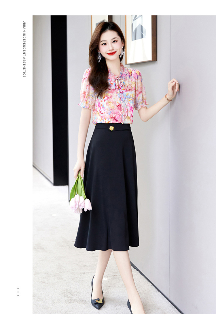 洋气套装裙两件套设计感2023半身裙减龄花边系带碎花衬衫上衣套装