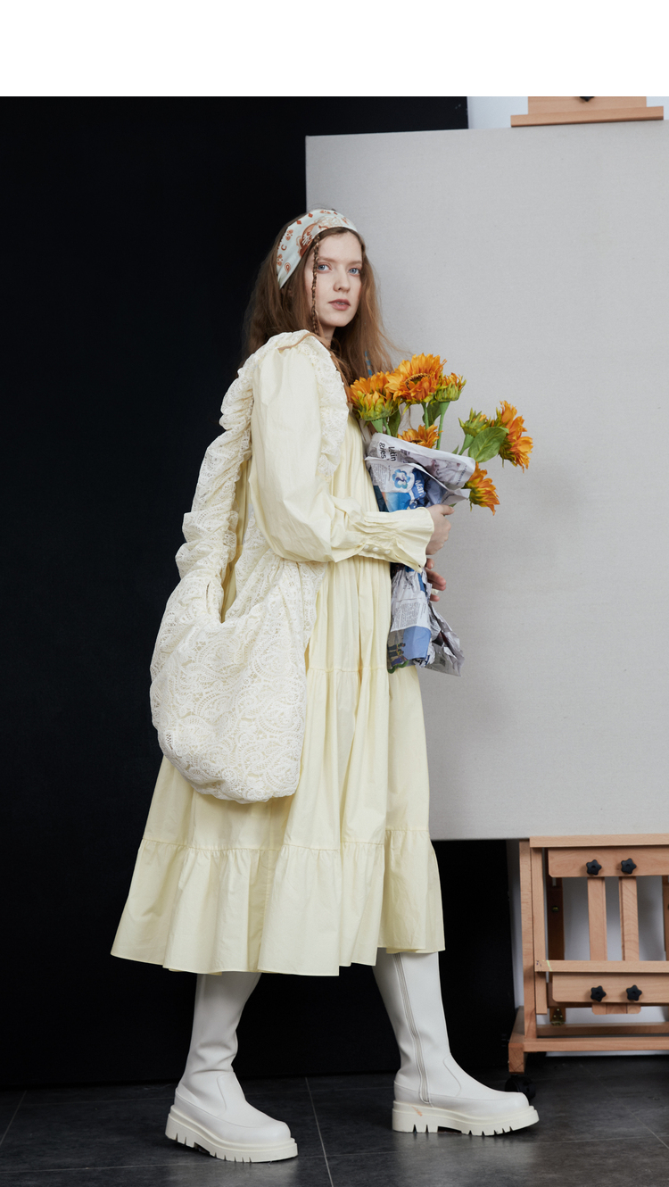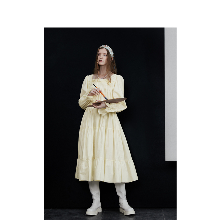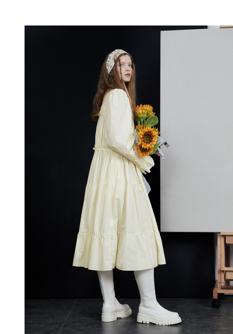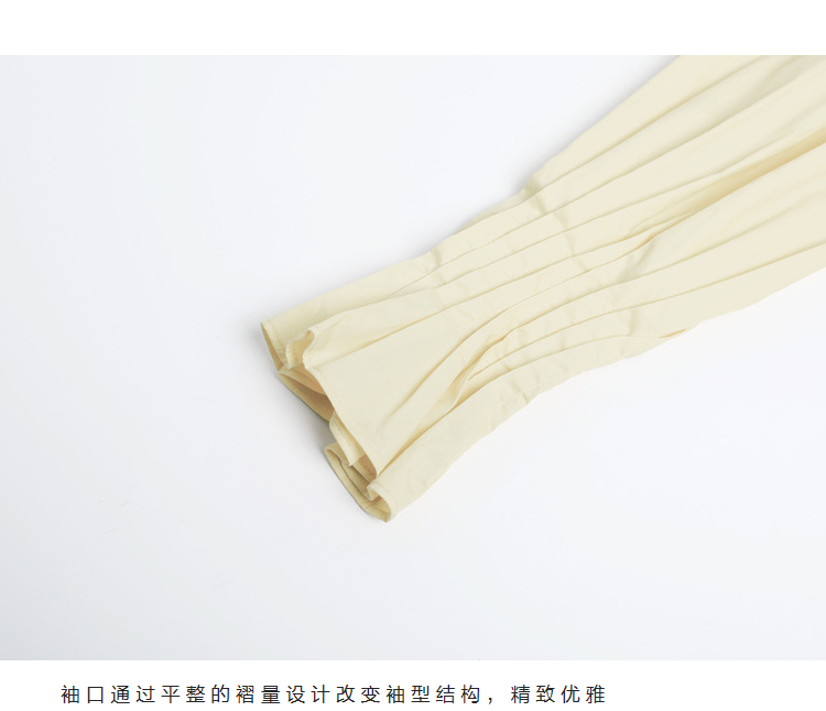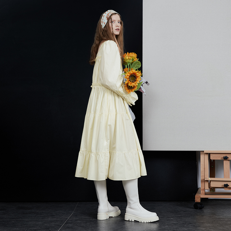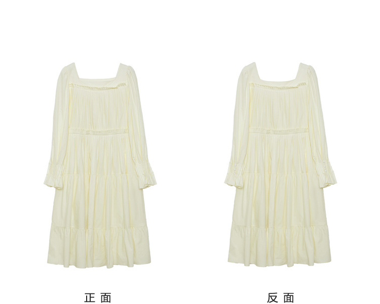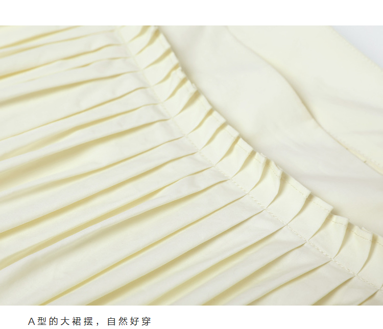 半圓原創設計2023春秋季新款泡泡袖裙子壓褶簡約長版洋裝小眾女