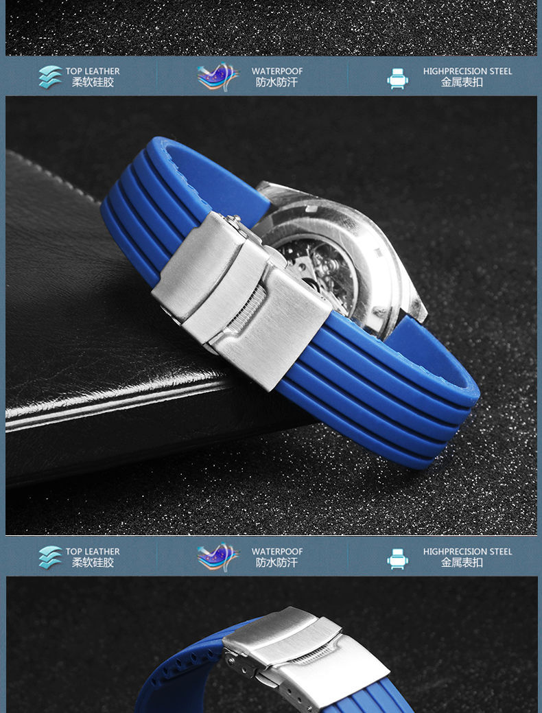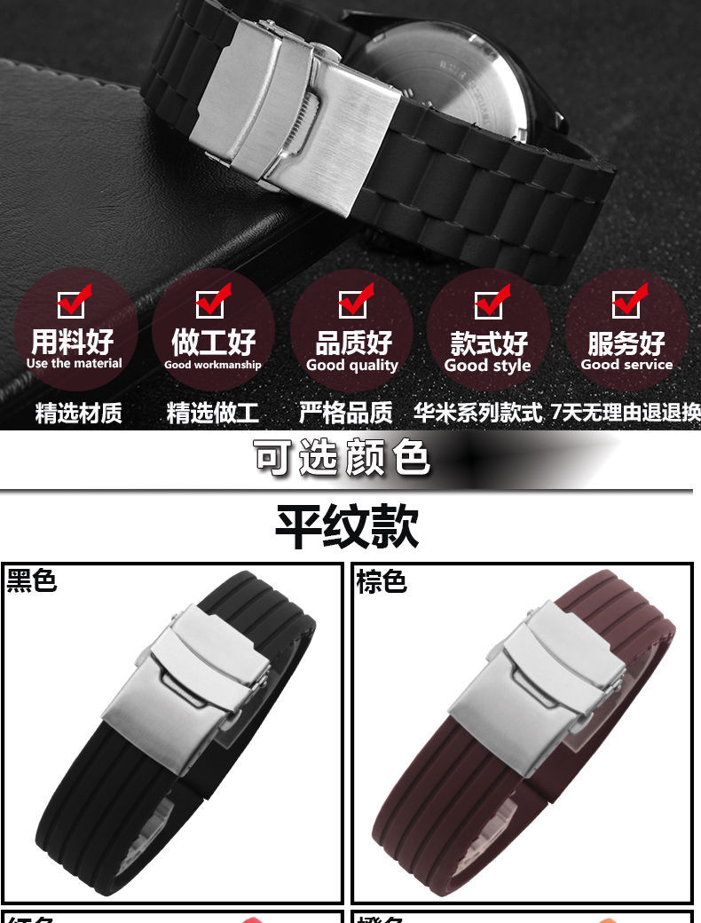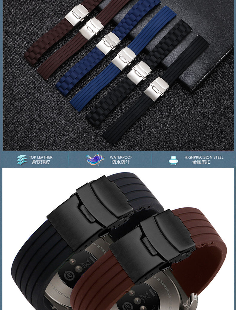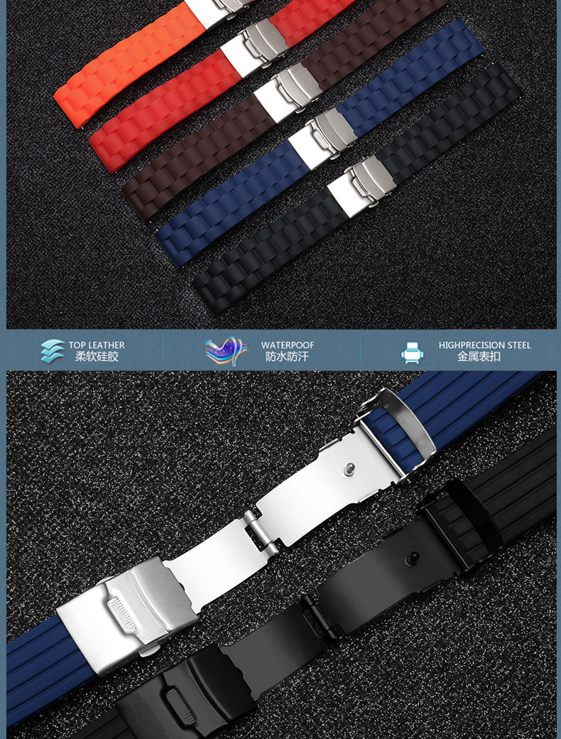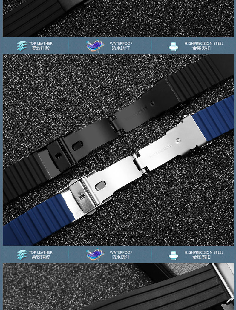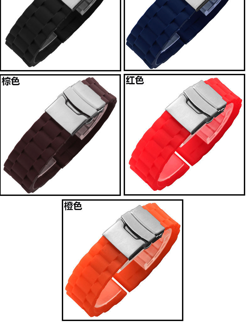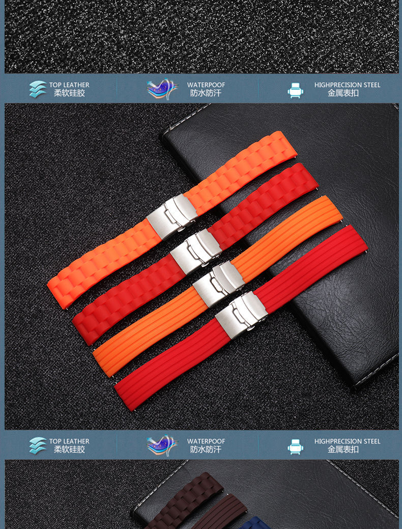 户外防水防汗运动硅胶表带男女通用款平口橡胶16 18 20 22 2324MM