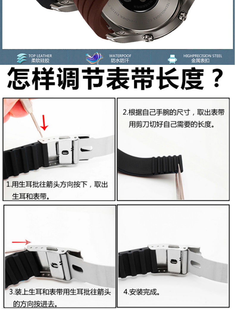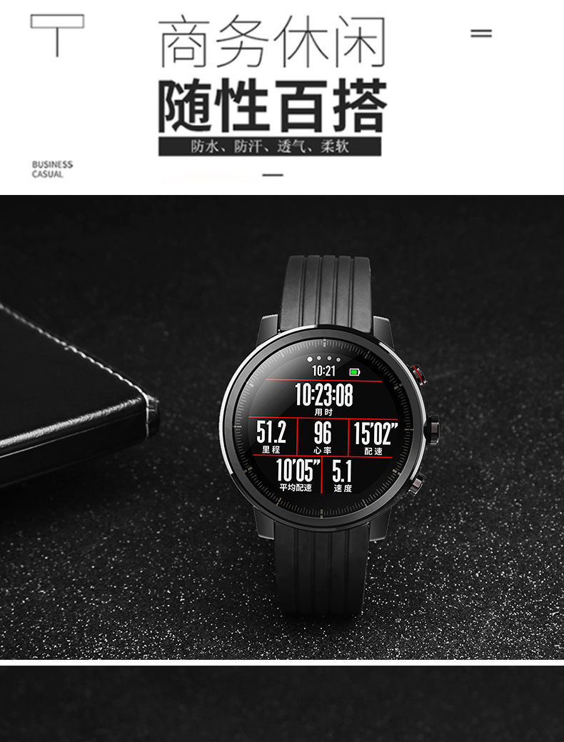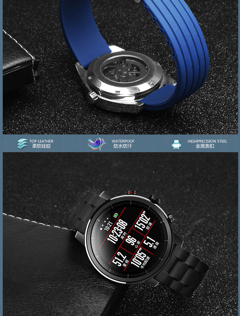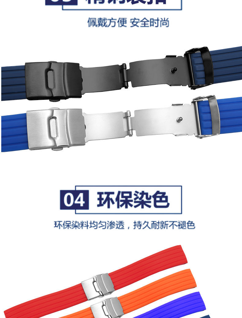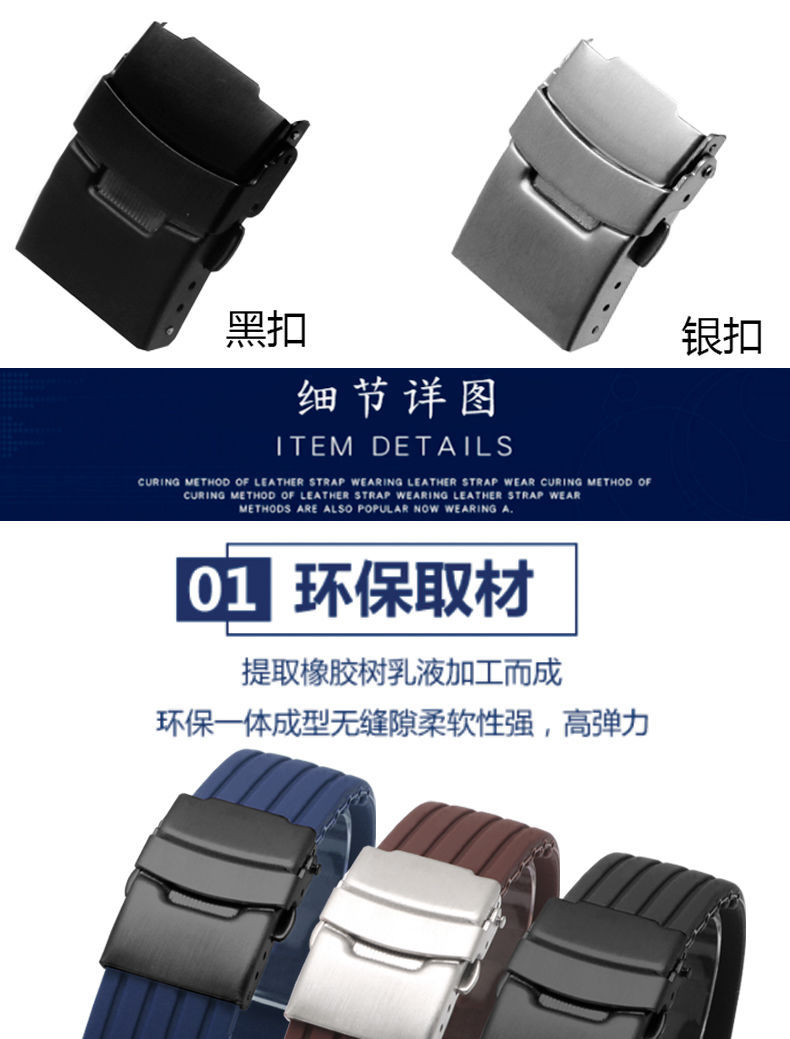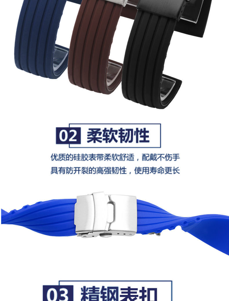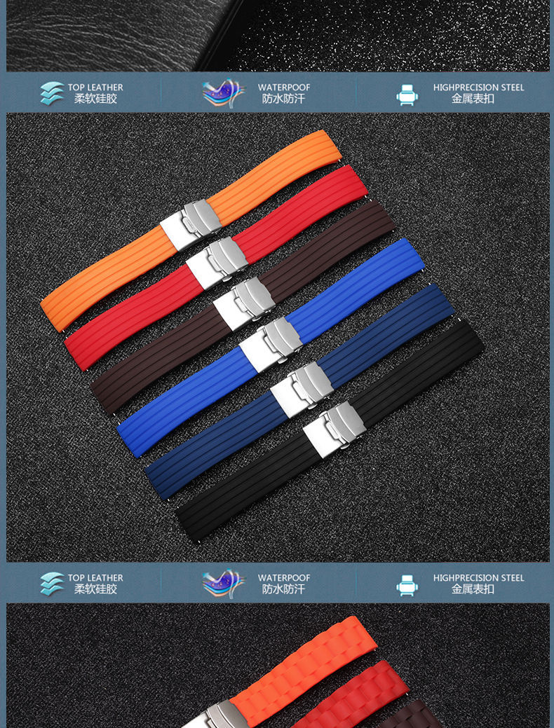 户外防水防汗运动硅胶表带男女通用款平口橡胶16 18 20 22 2324MM