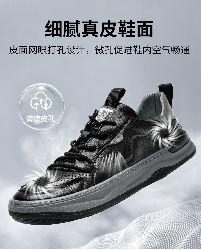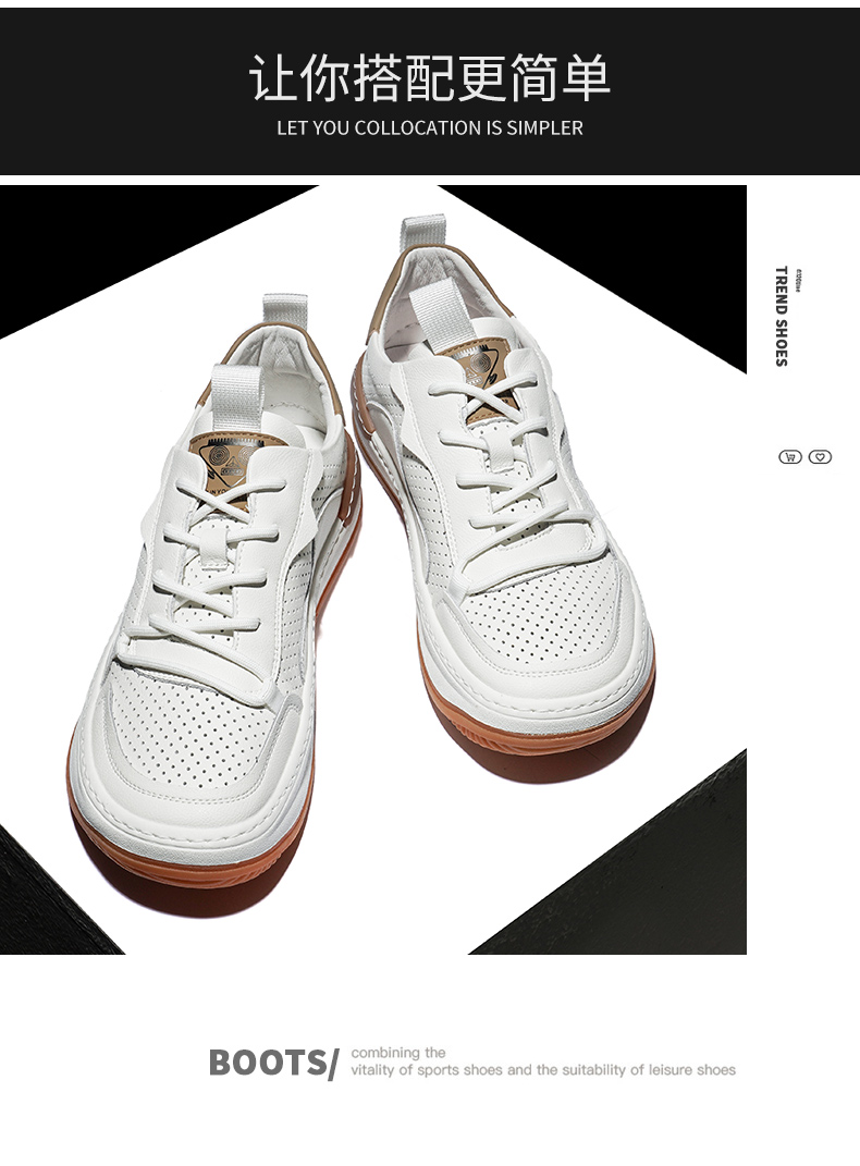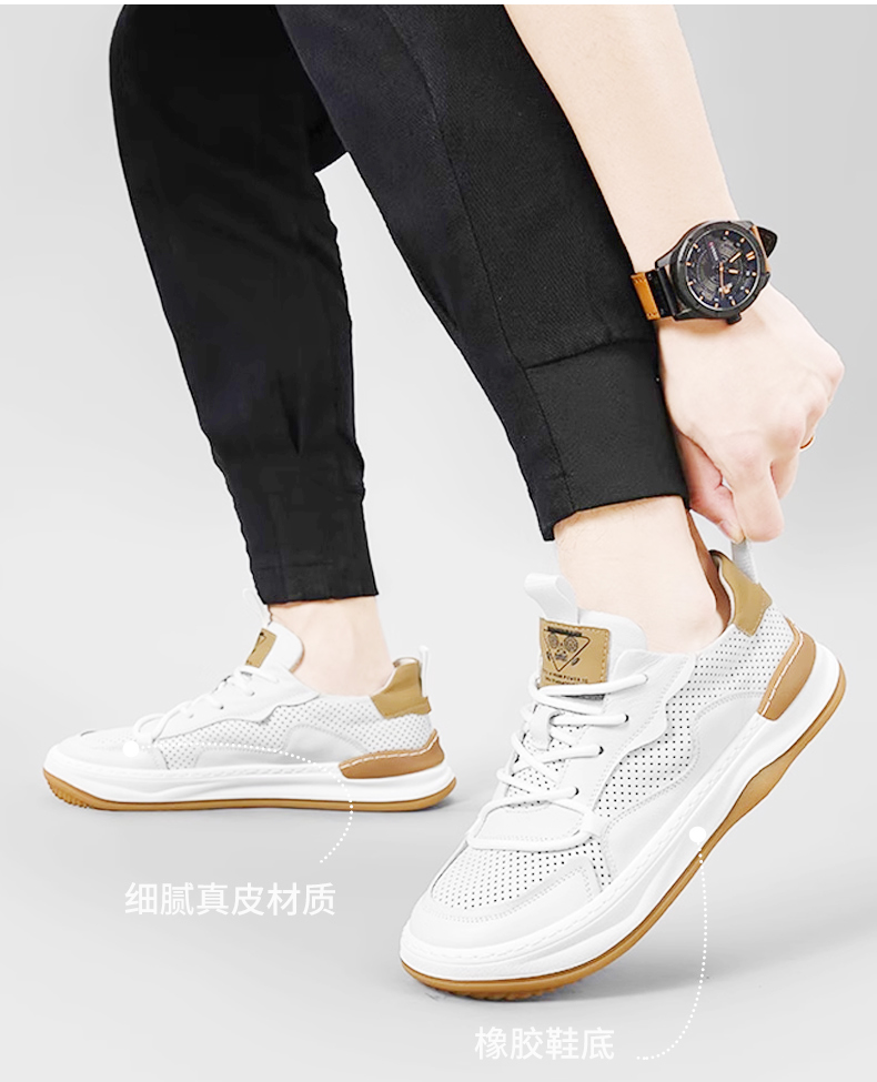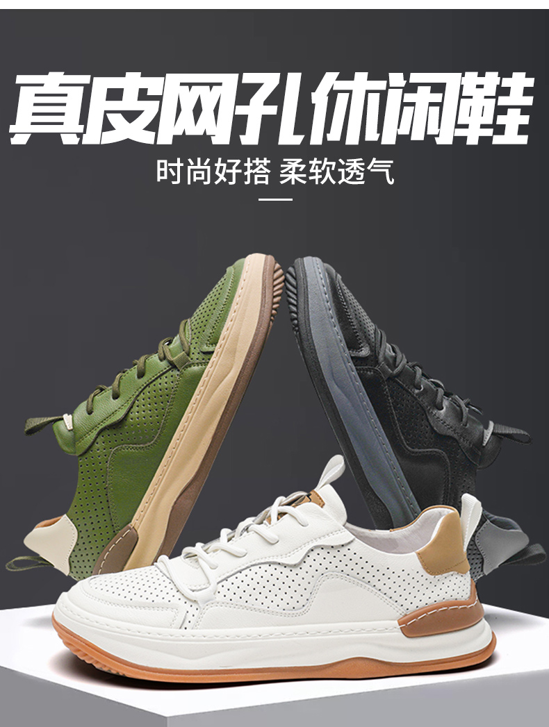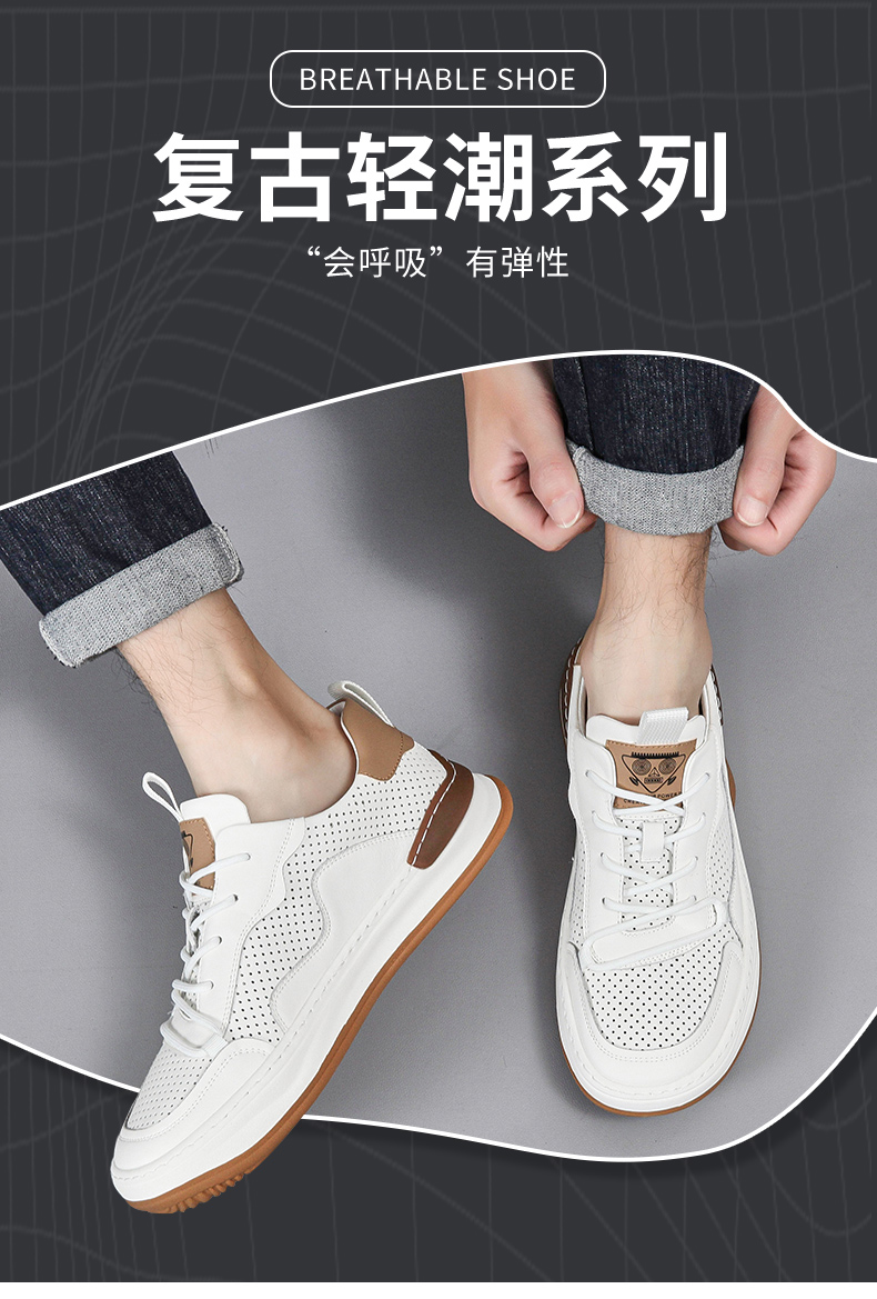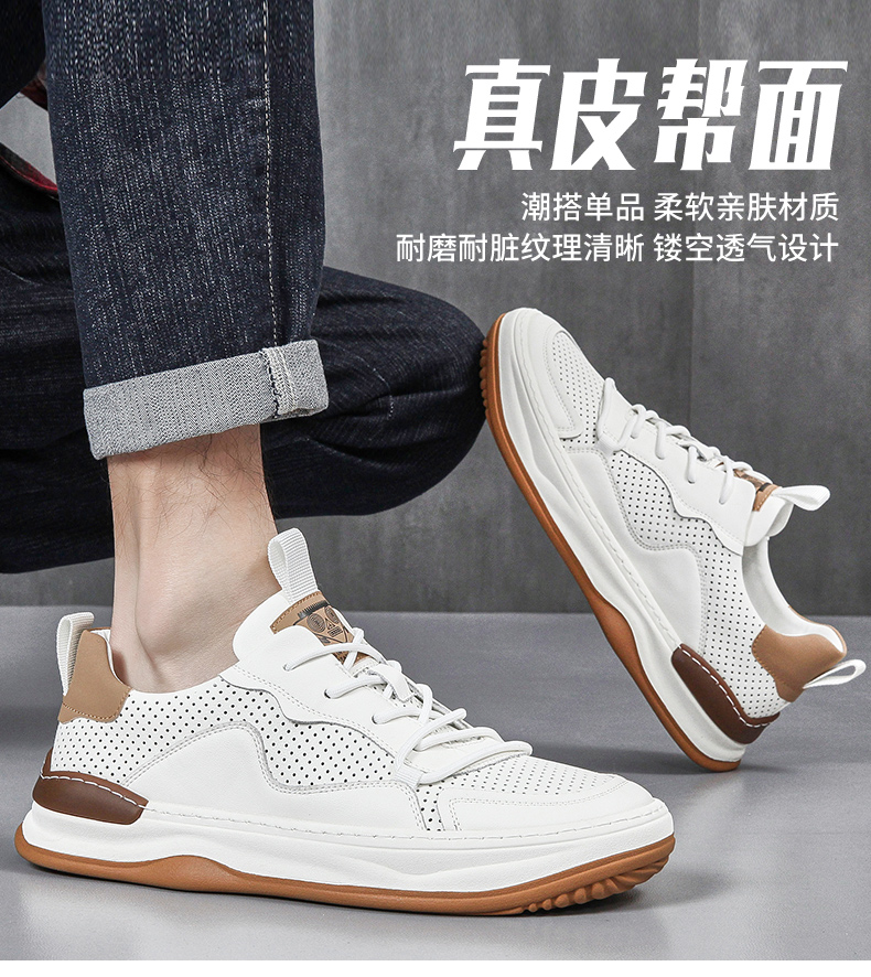 男鞋夏季2023新款潮透氣真皮休閒鞋鏤空小醜鞋小白鞋男士鞋子板鞋
