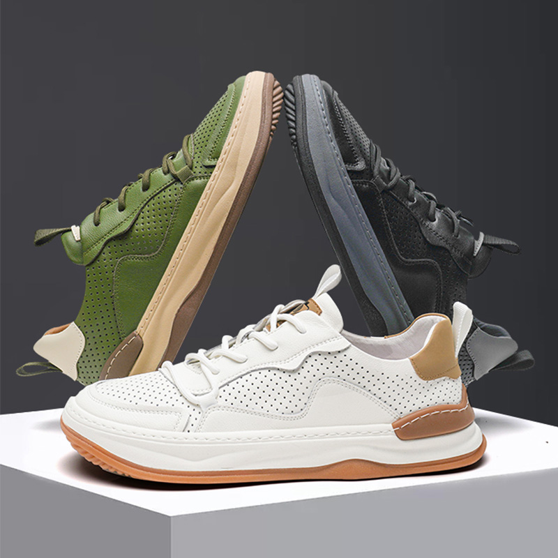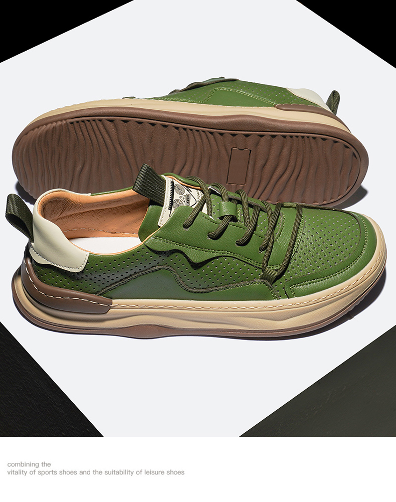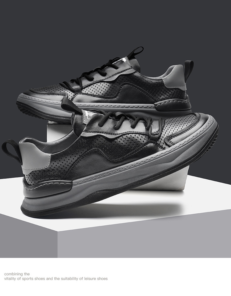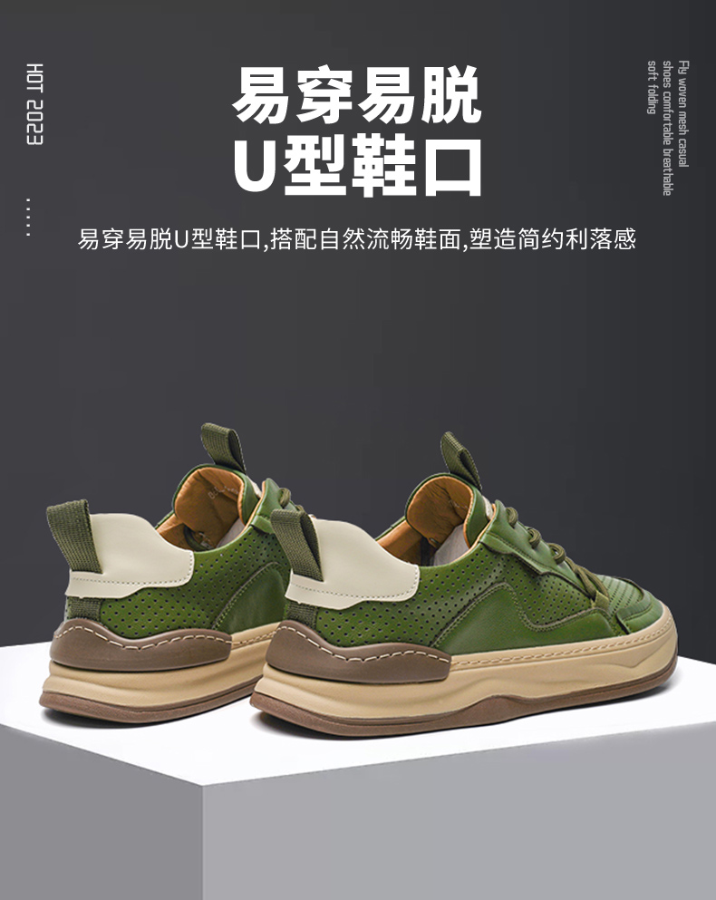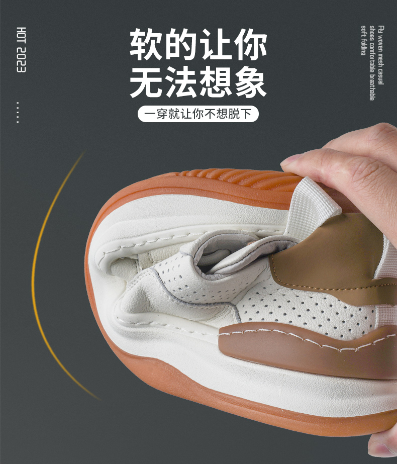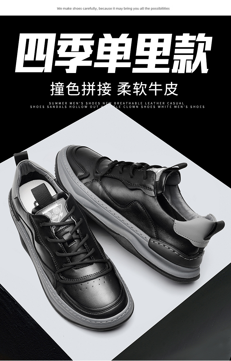 男鞋夏季2023新款潮透氣真皮休閒鞋鏤空小醜鞋小白鞋男士鞋子板鞋