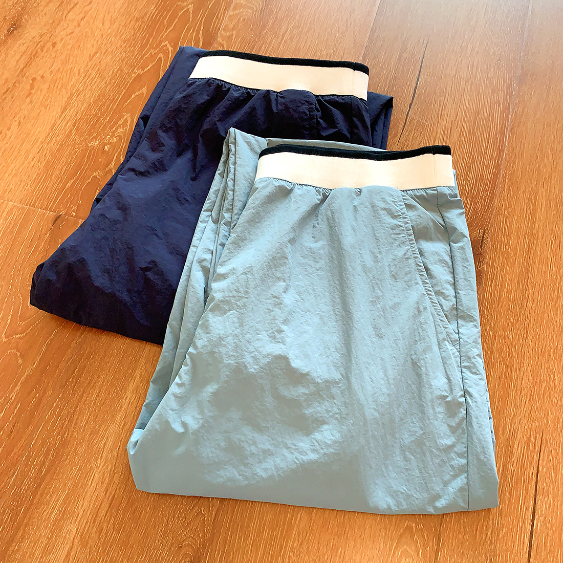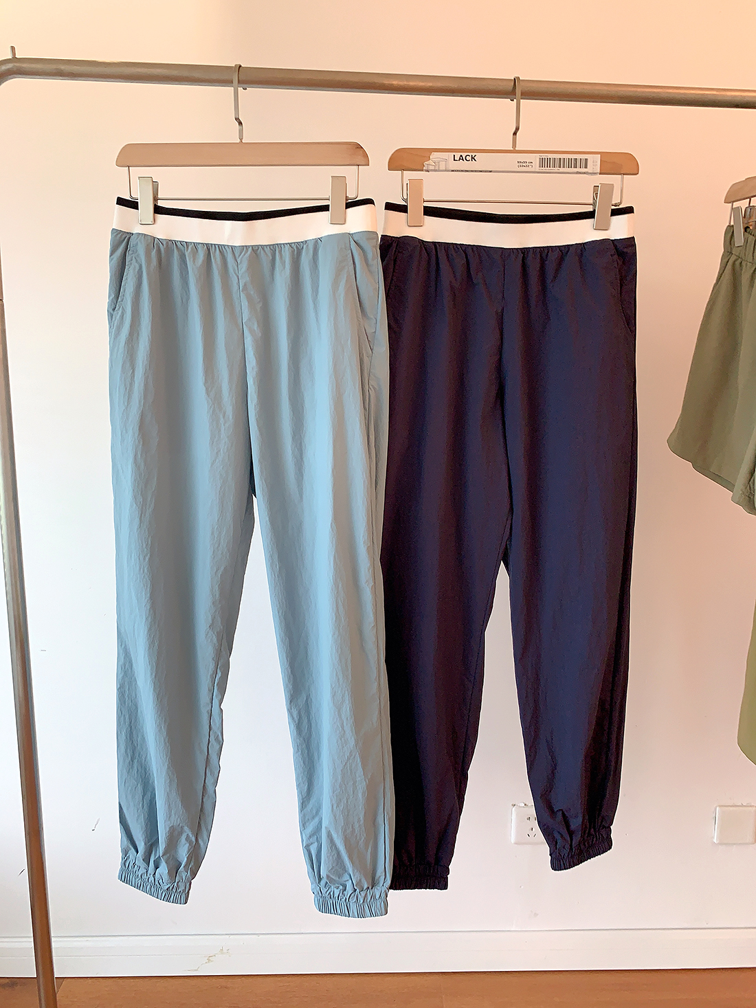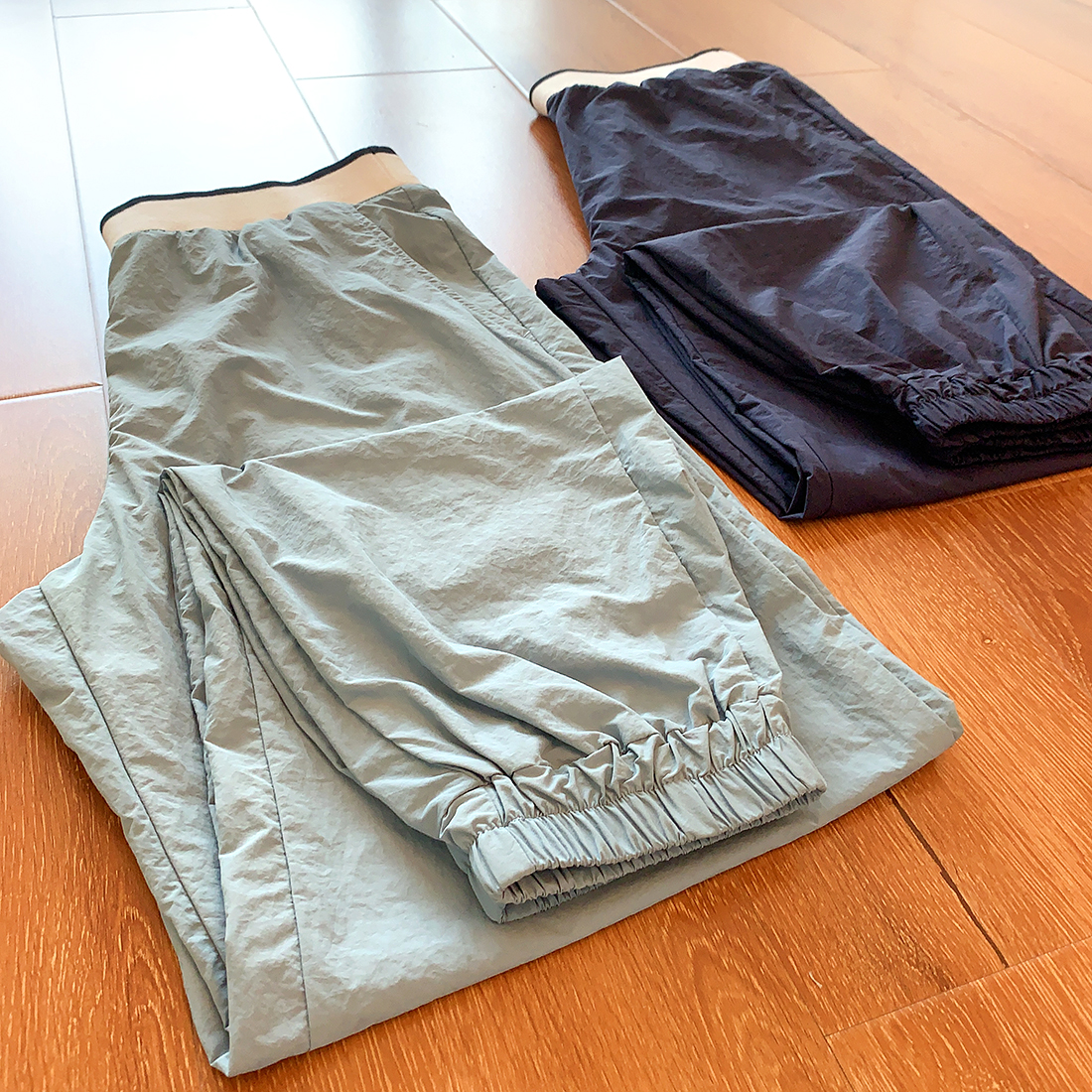 老工廠直銷~尼龍束口褲!內抽繩鬆緊腰顯瘦利落直筒運動休閒褲女