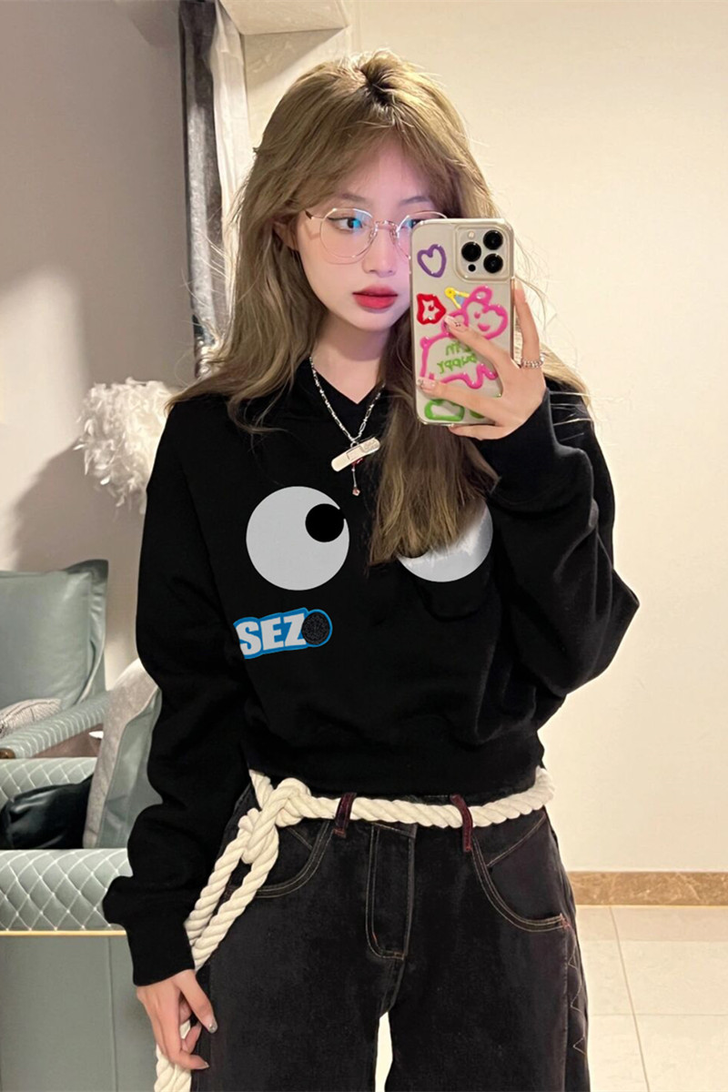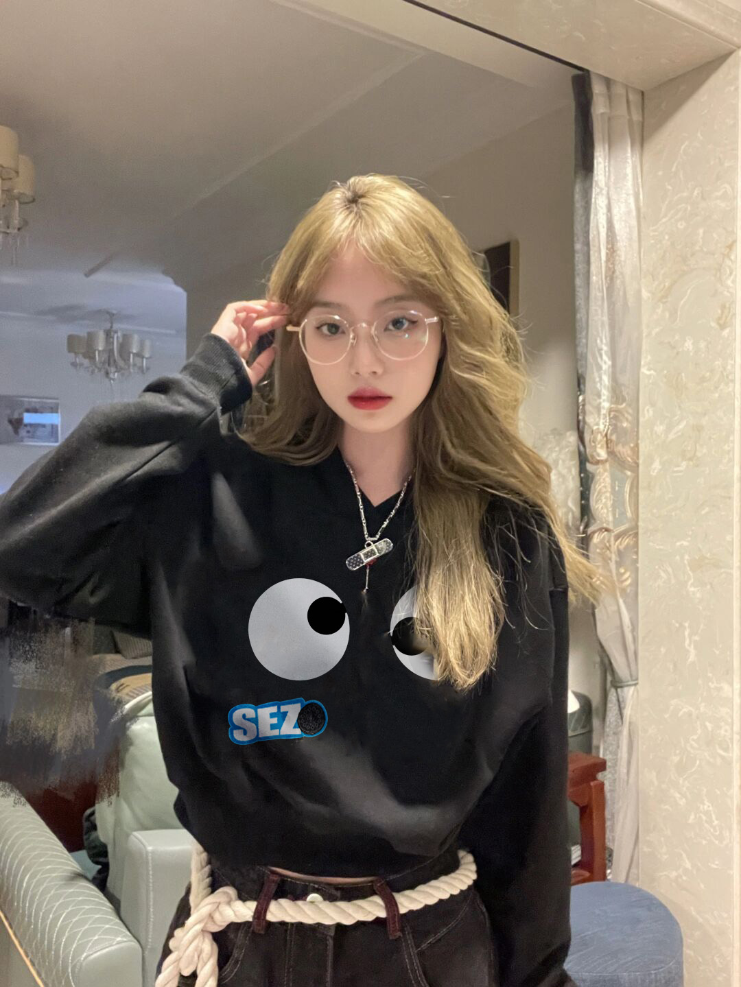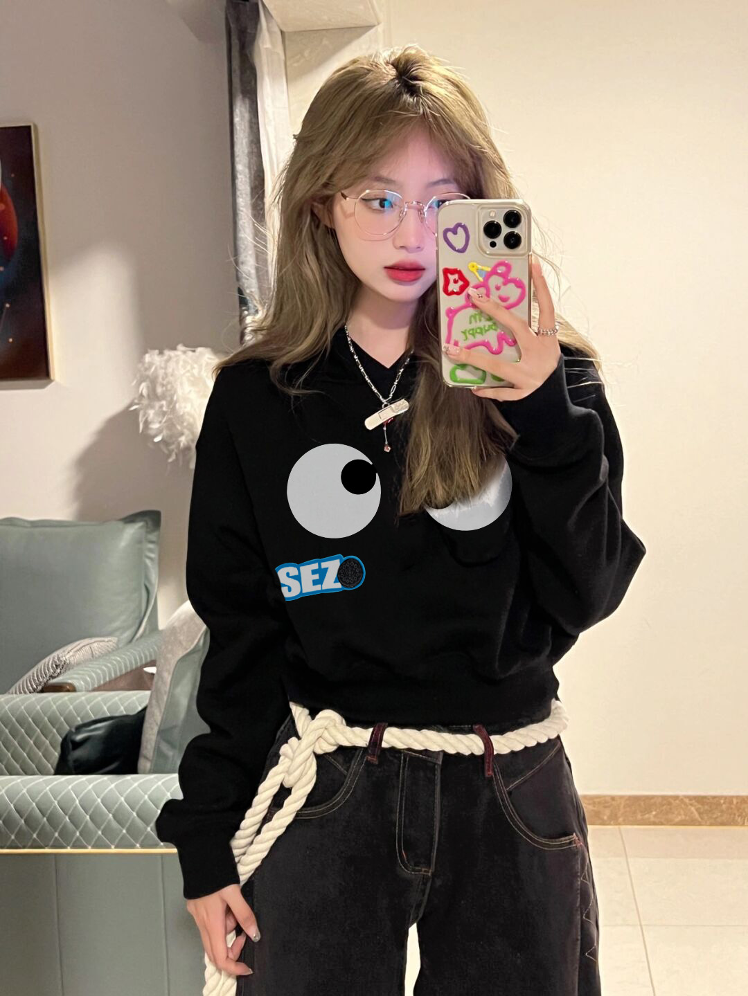 美式高街hiphop短款黑色厚棉T女早秋小眾設計感今年流行的漂亮上衣