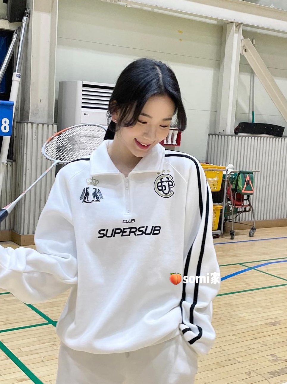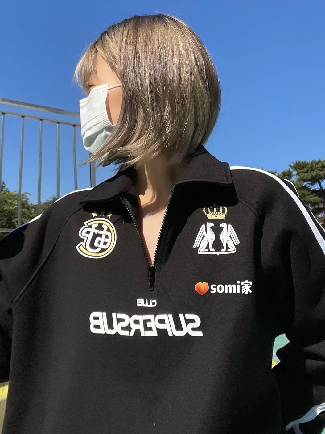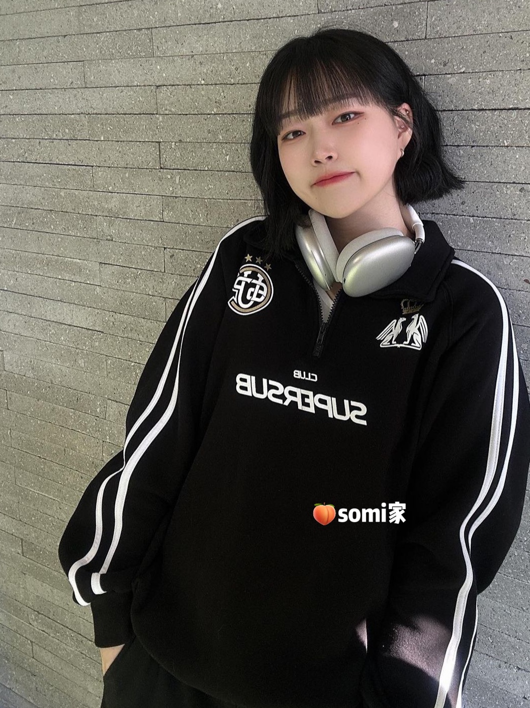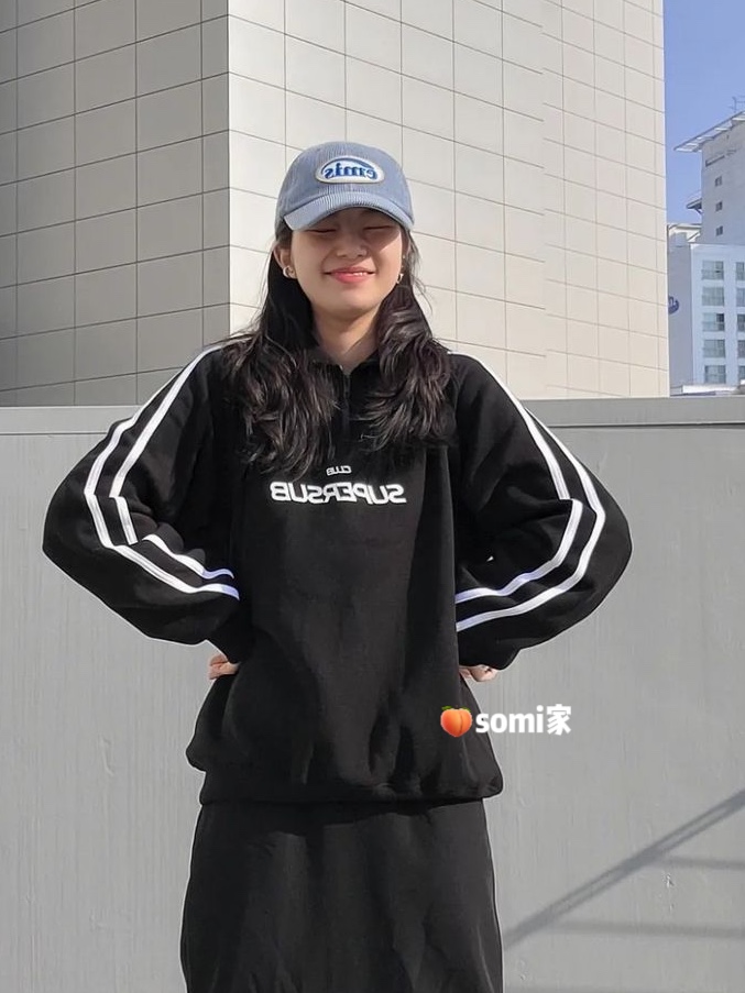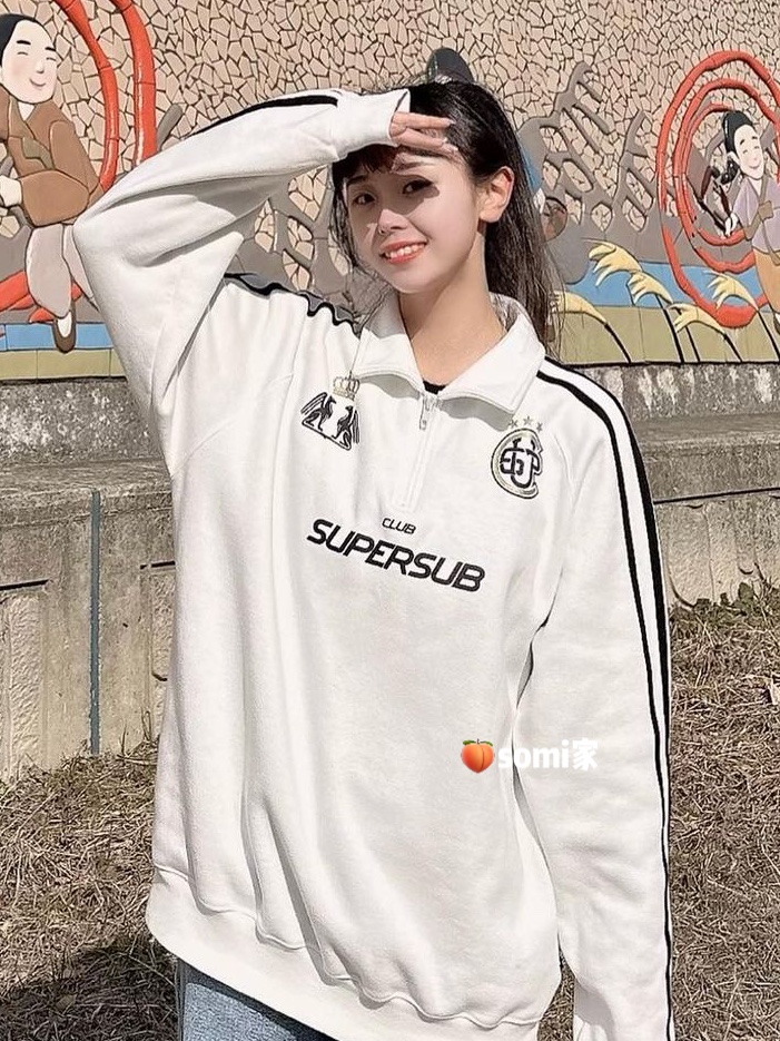 somi家 韓國直郵supersub美式球衣風半拉鍊衛衣 崔秀彬同款不加絨