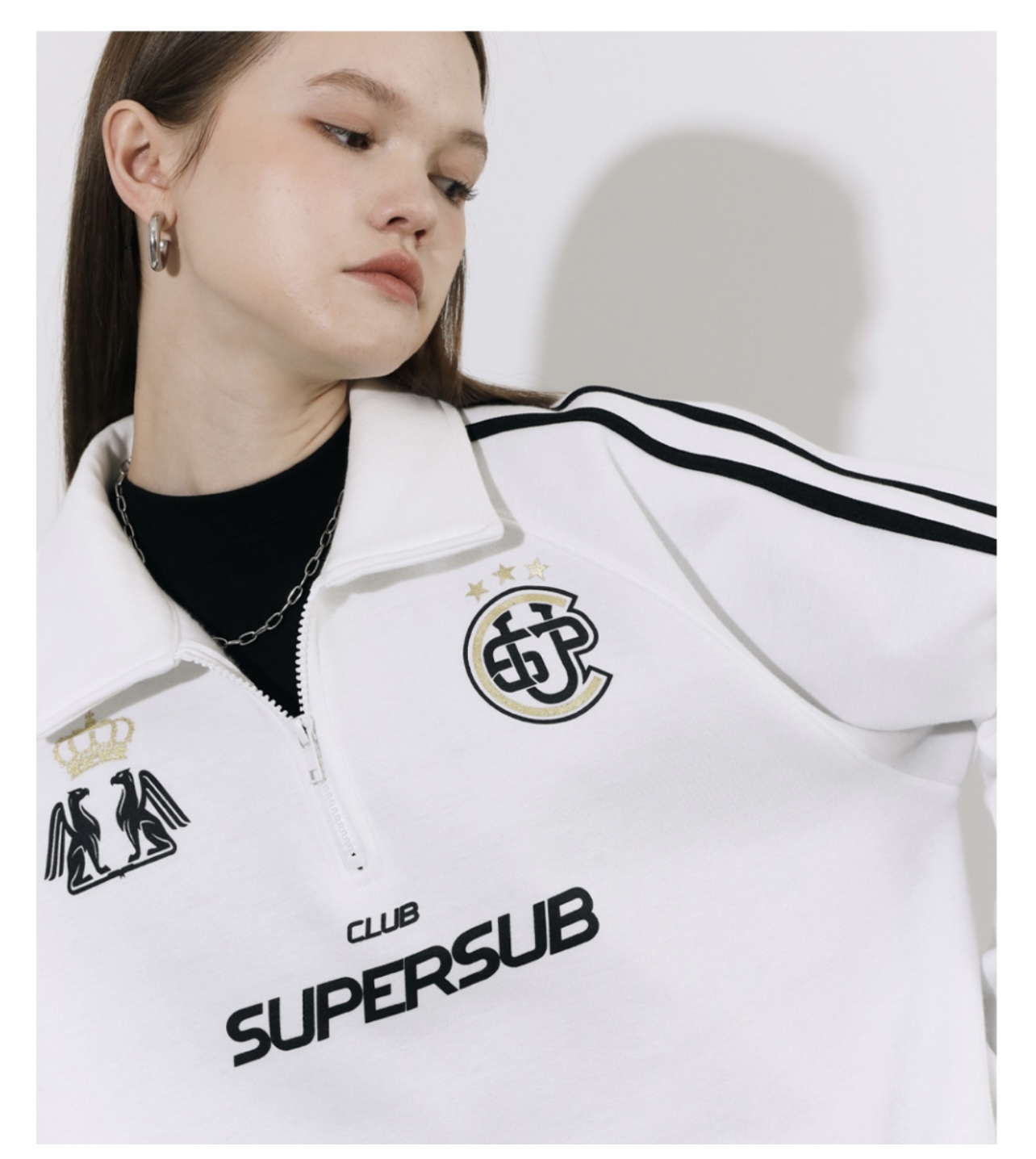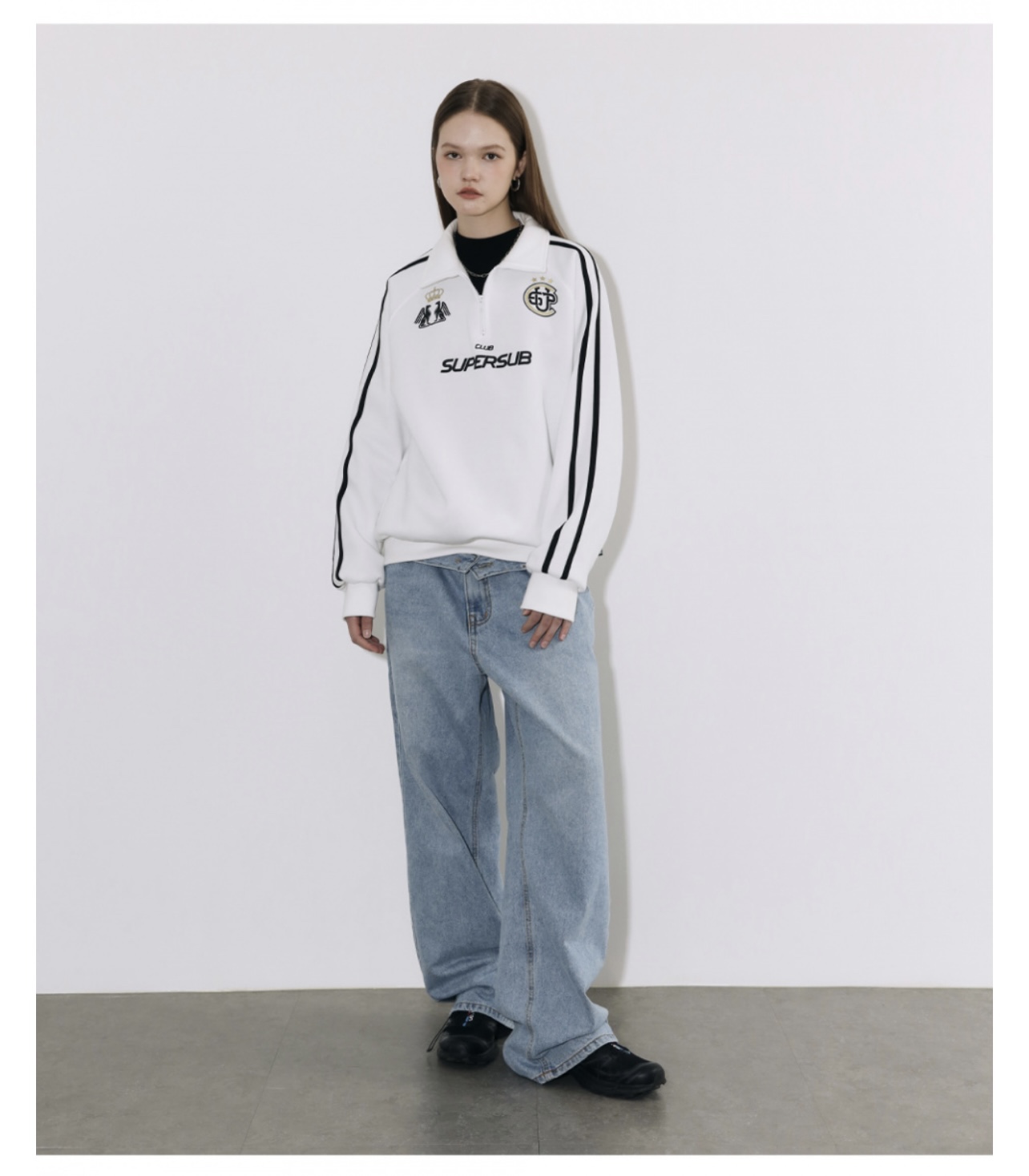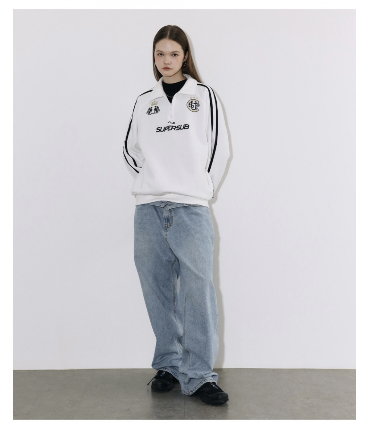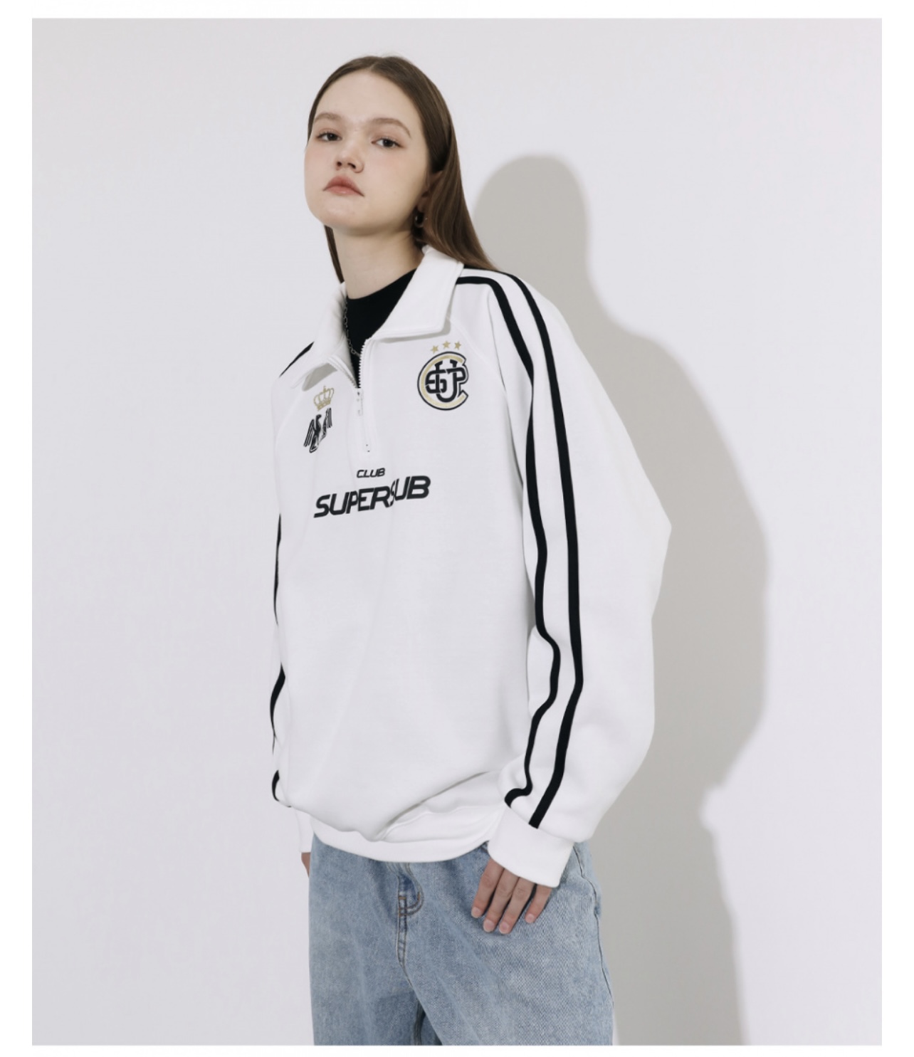 somi家 韓國直郵supersub美式球衣風半拉鍊衛衣 崔秀彬同款不加絨