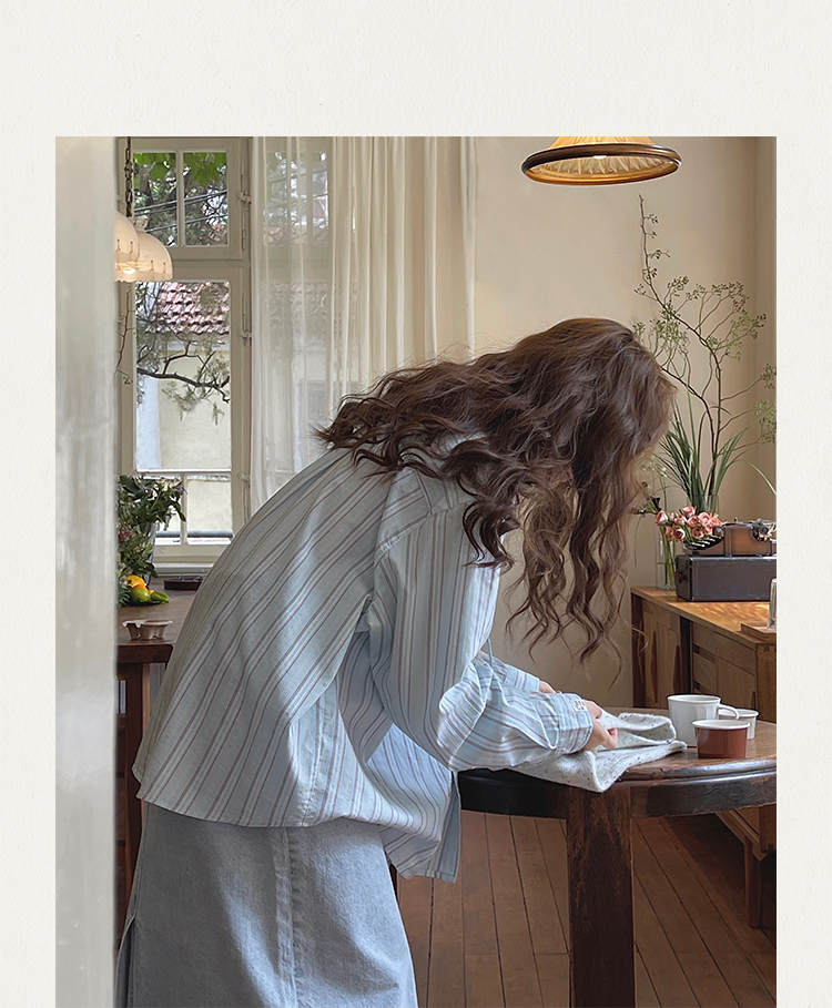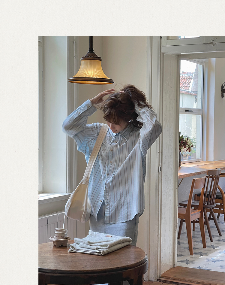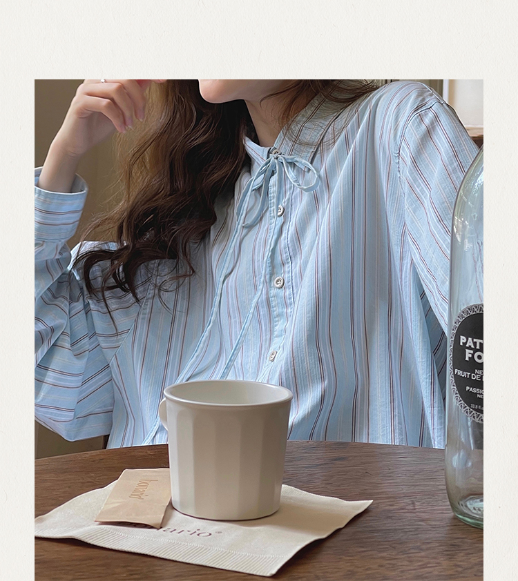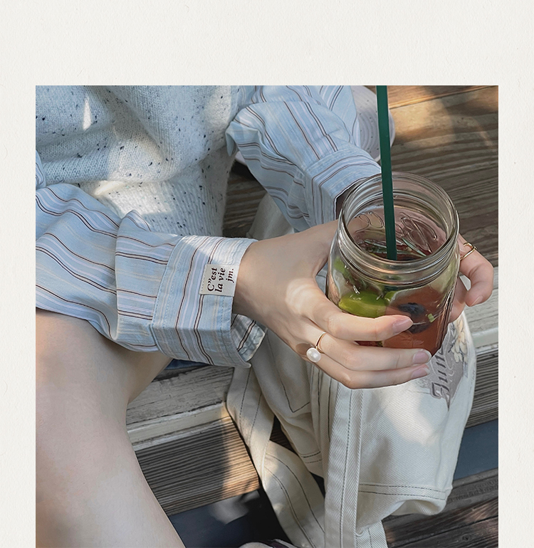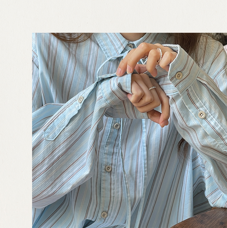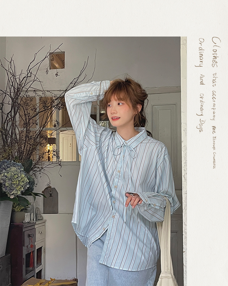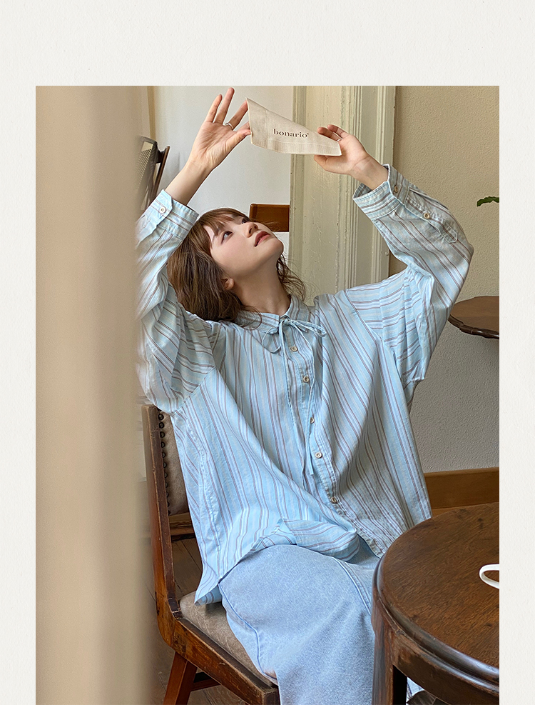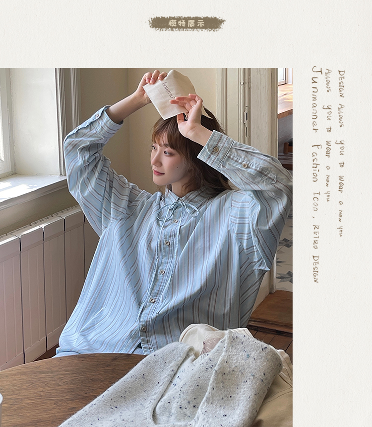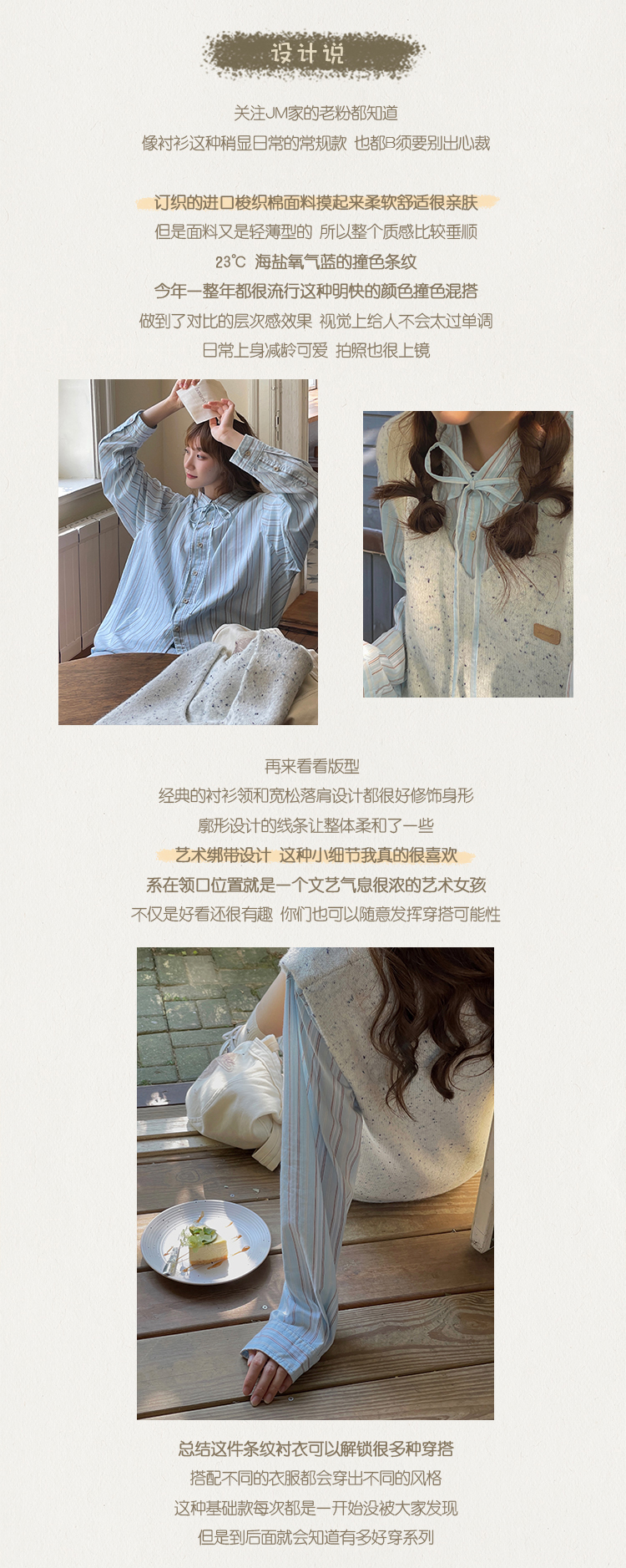 jmwomen 海鹽藍色條紋襯衫女設計感小眾襯衫韓系chic別致秋裝上衣