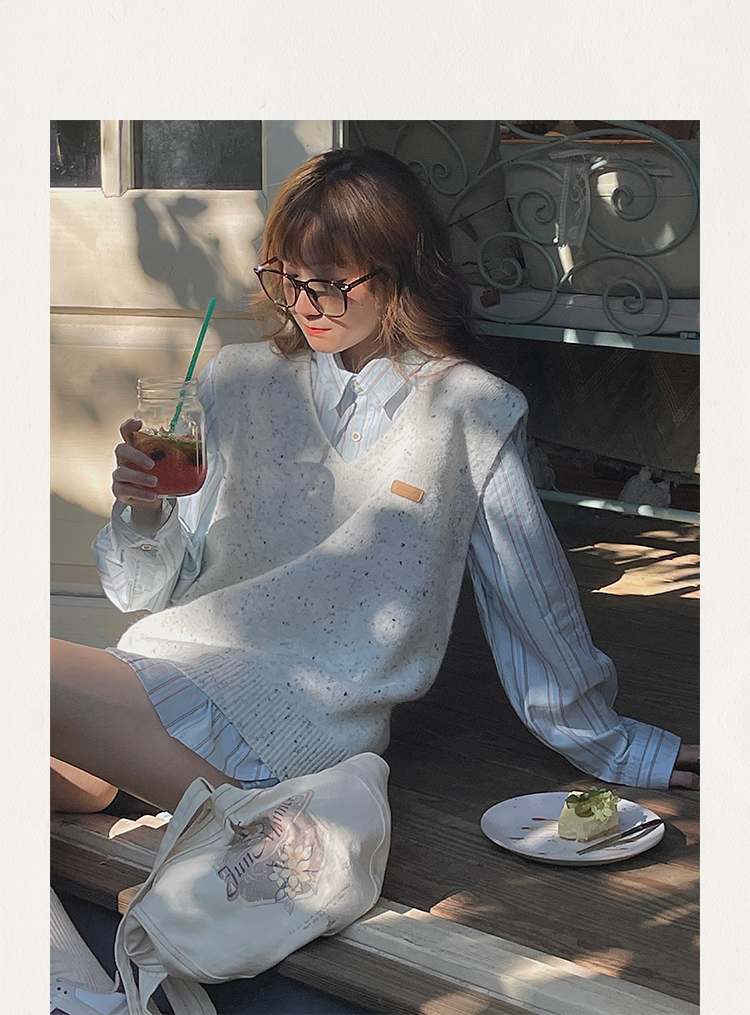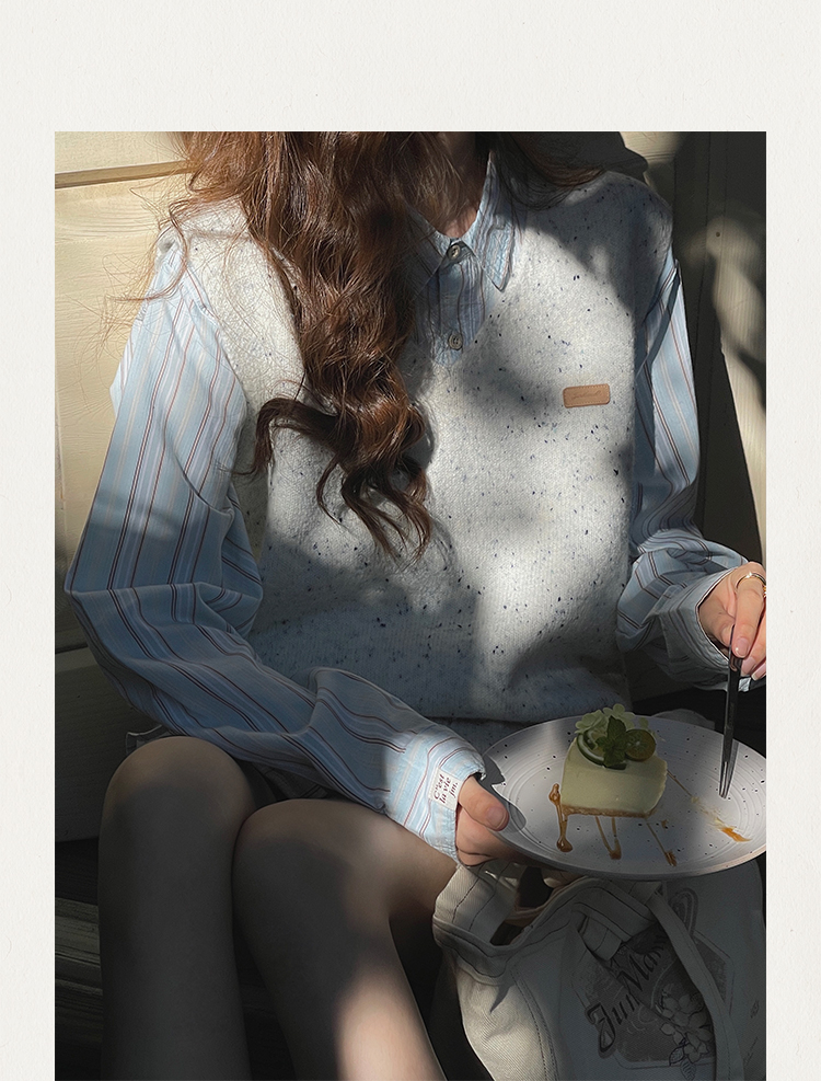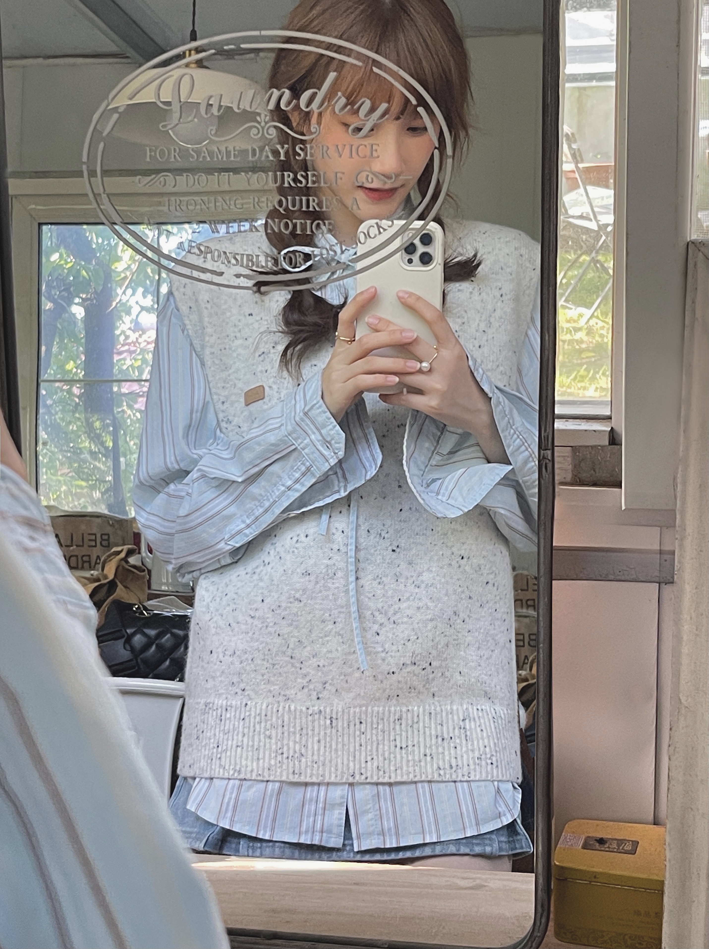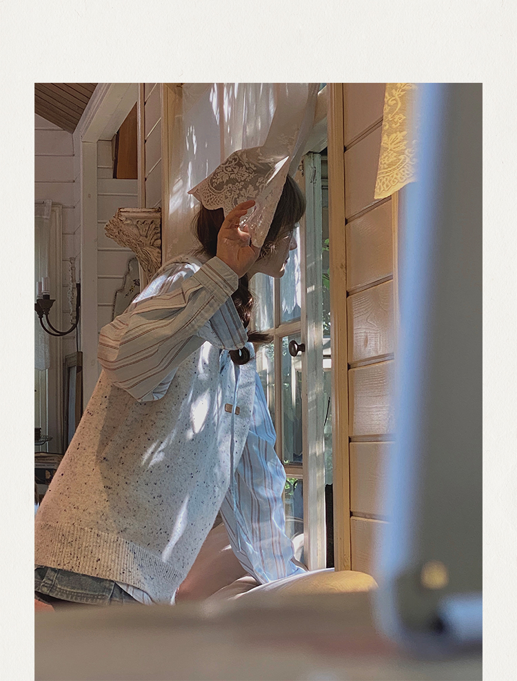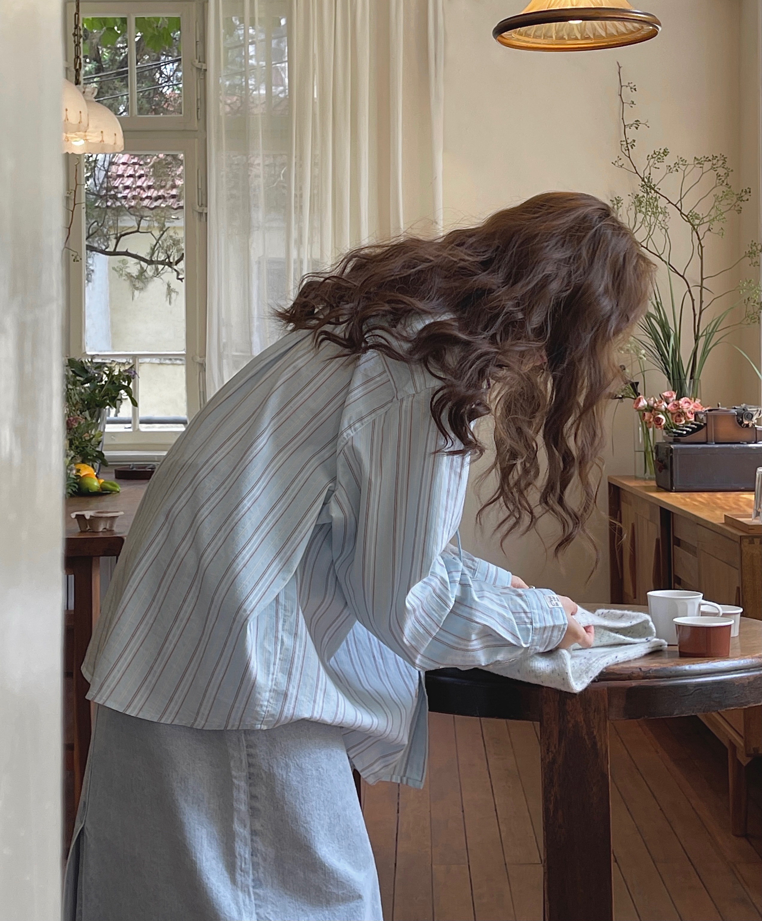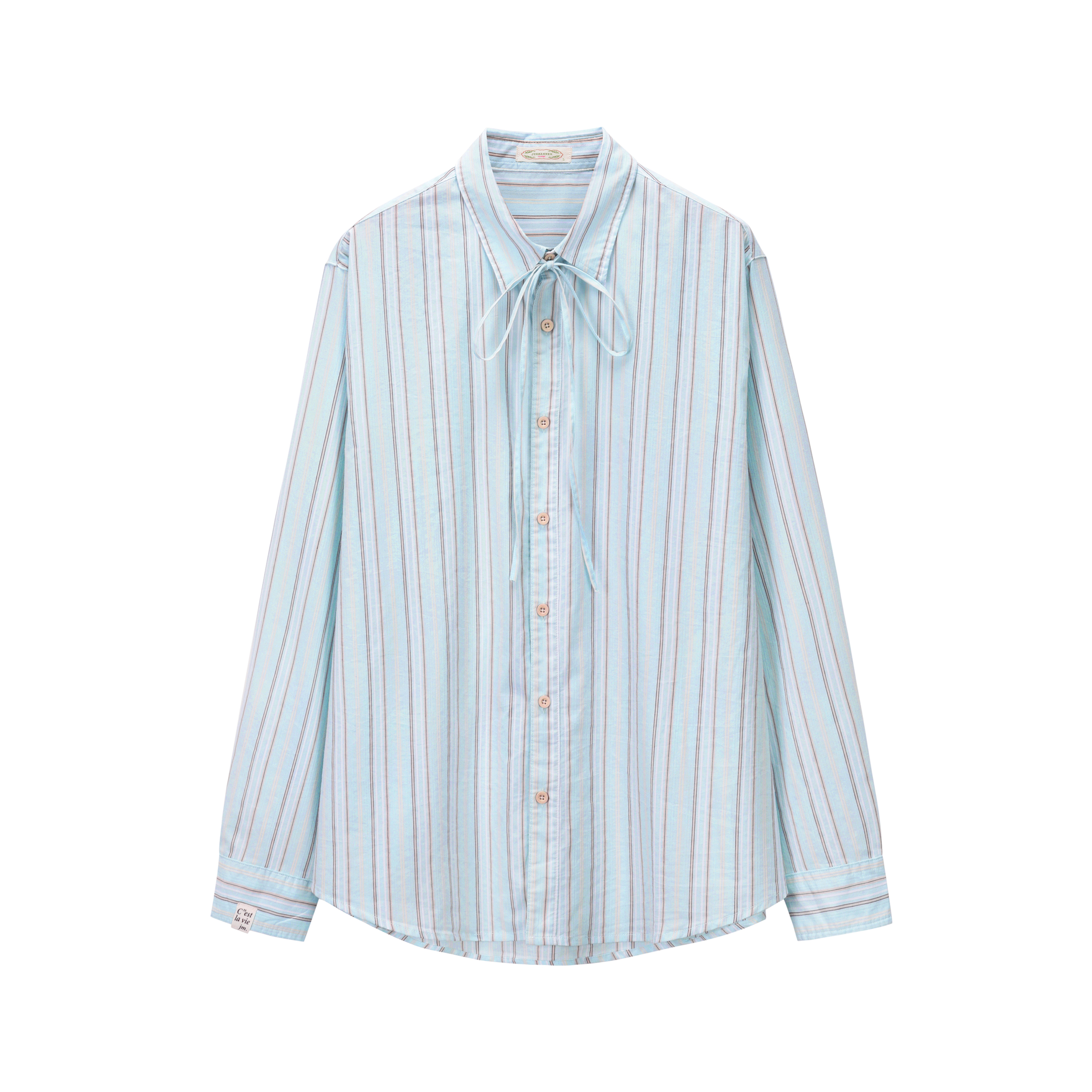 jmwomen 海鹽藍色條紋襯衫女設計感小眾襯衫韓系chic別致秋裝上衣